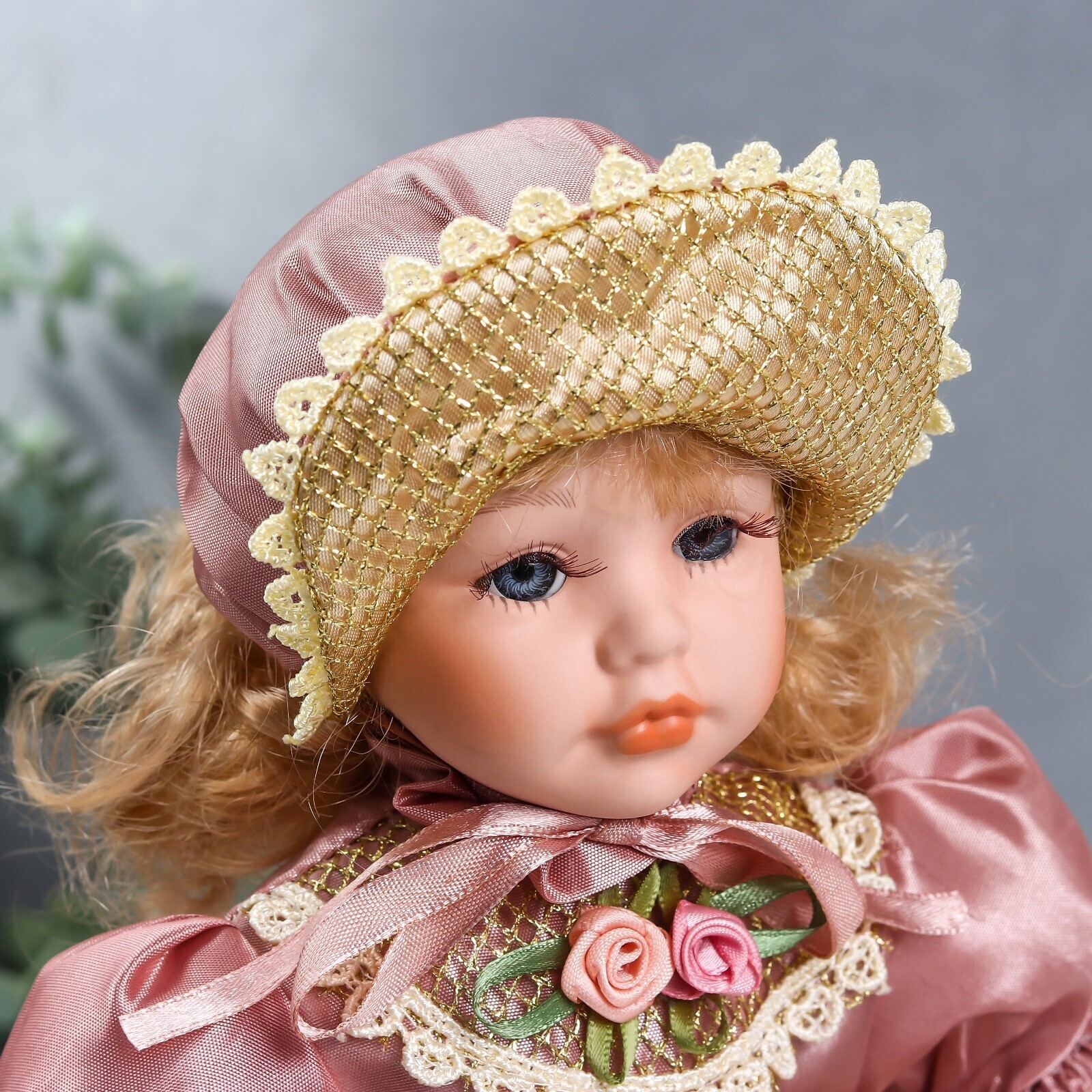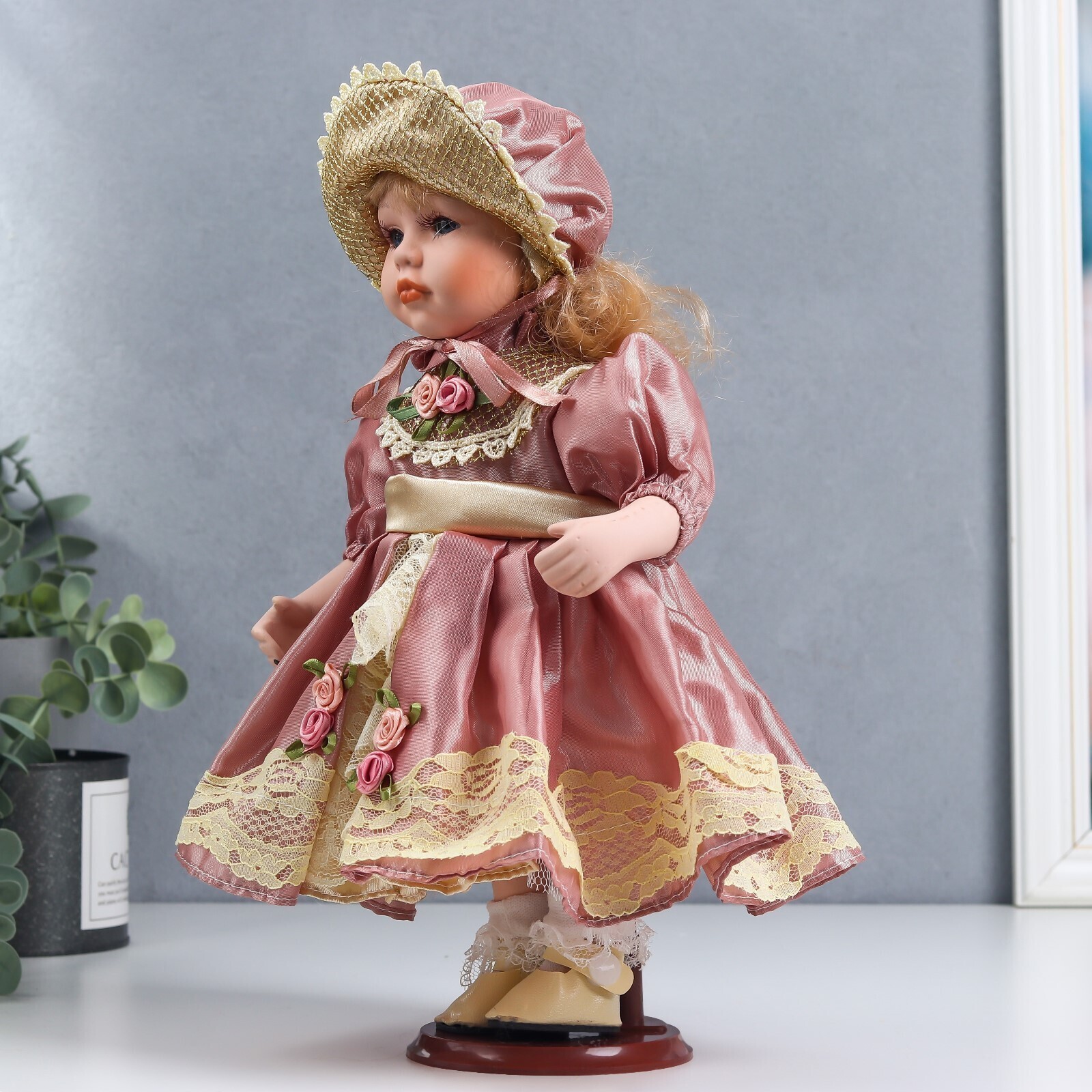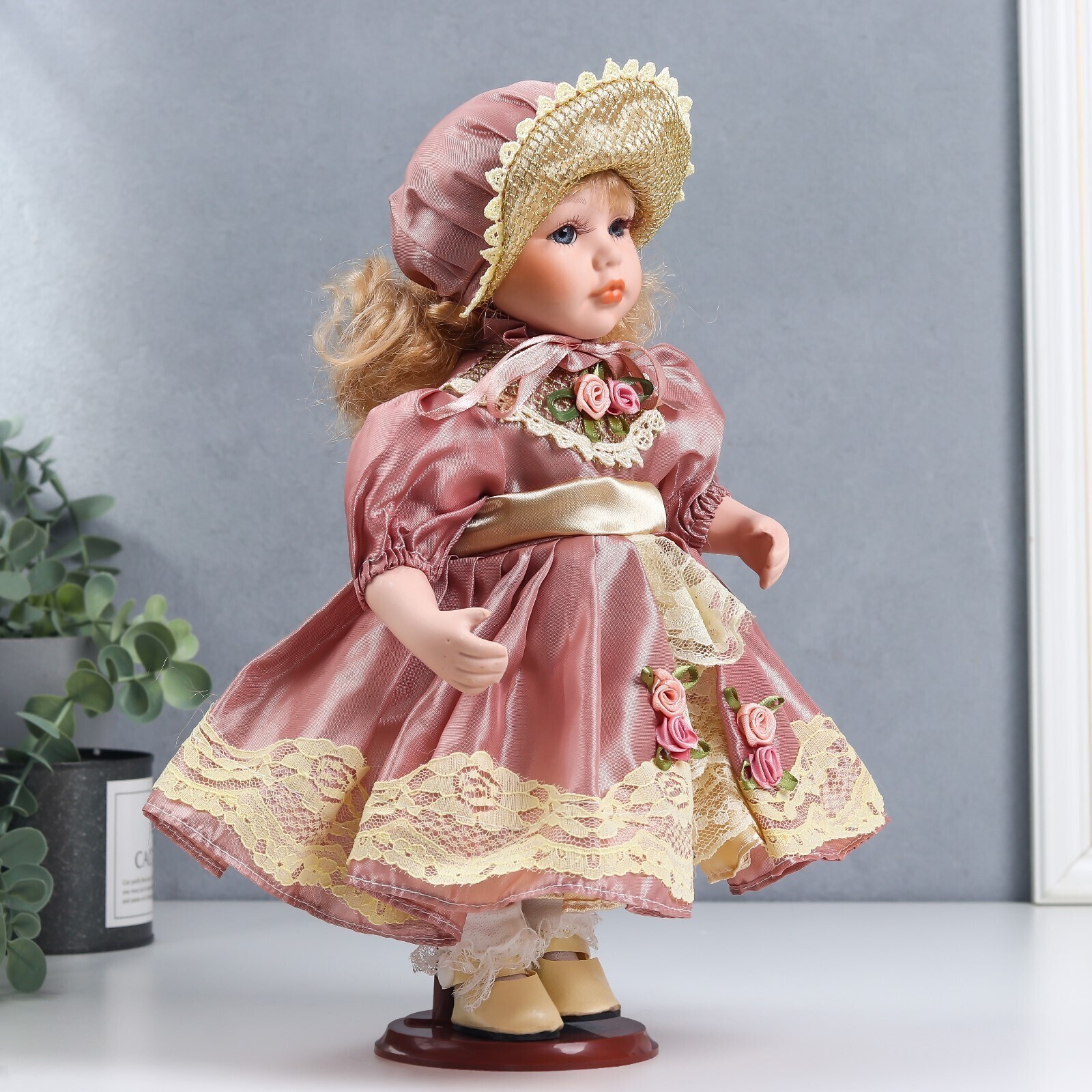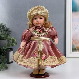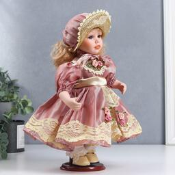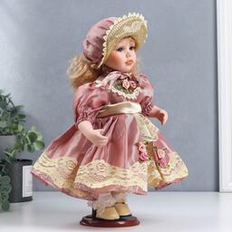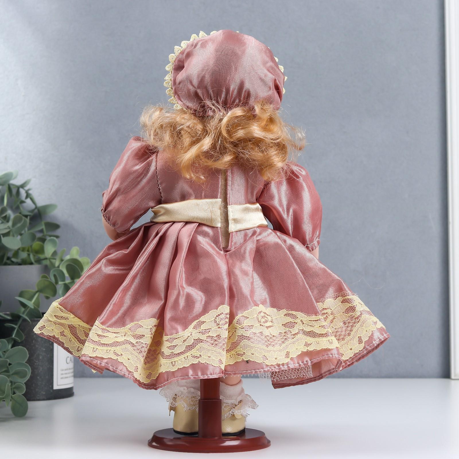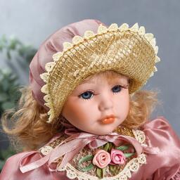 Кукла коллекционная керамика "Ася в розовом платье и чепчике" 30 см