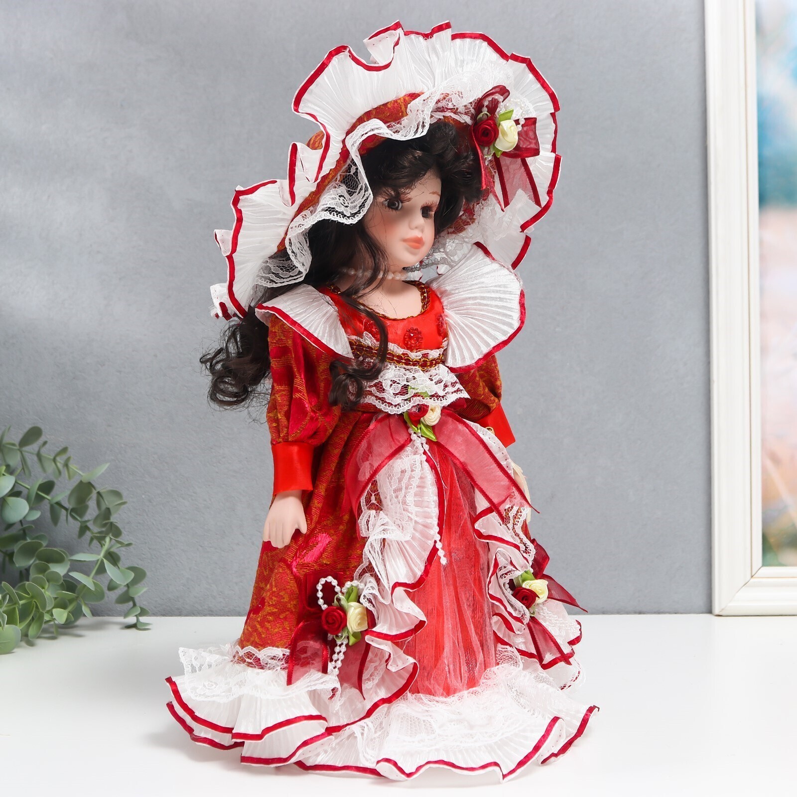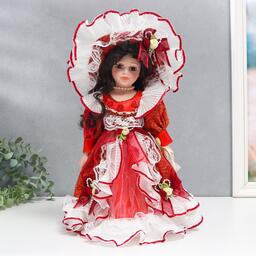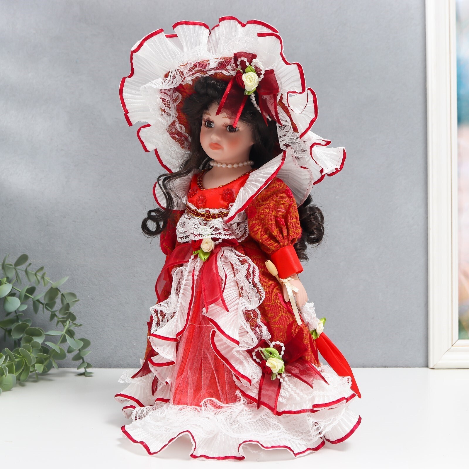Кукла коллекционная керамика "Кармен в красном платье с зонтиком" 30 см