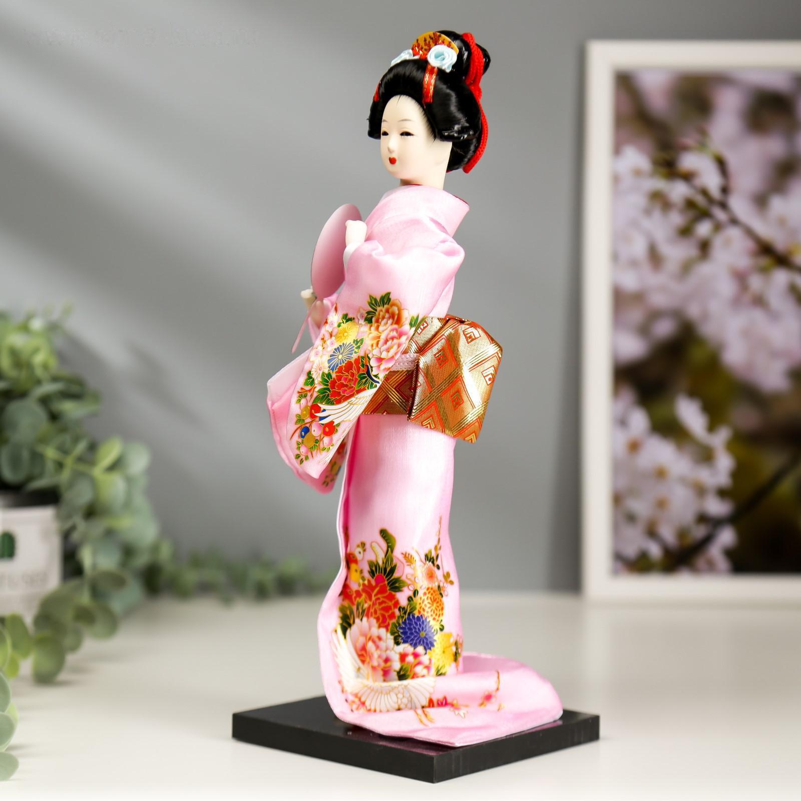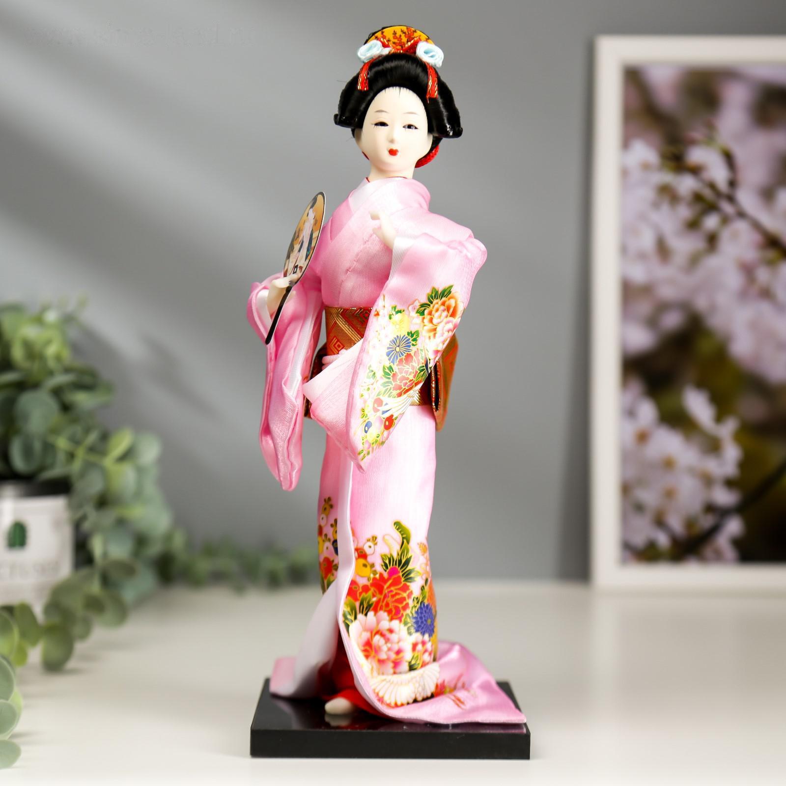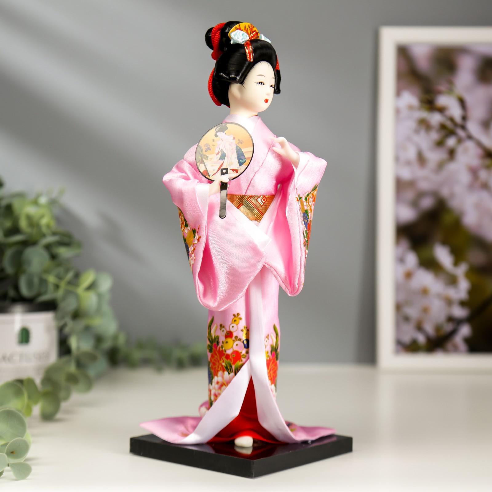 Кукла коллекционная "Японка в розовом кимоно с опахало" 25х9,5х9,5 см