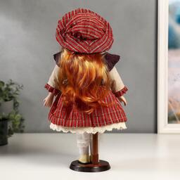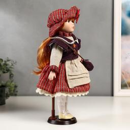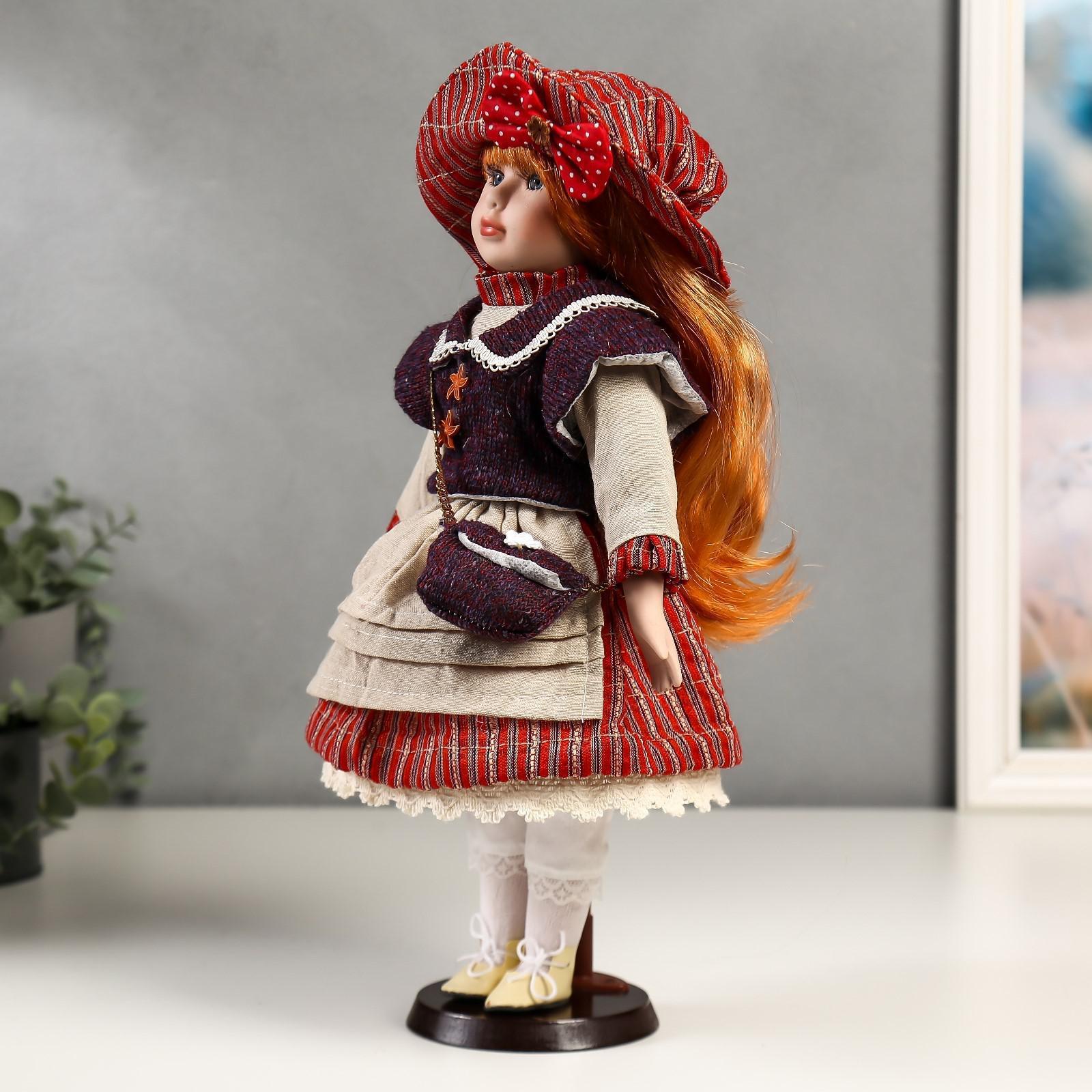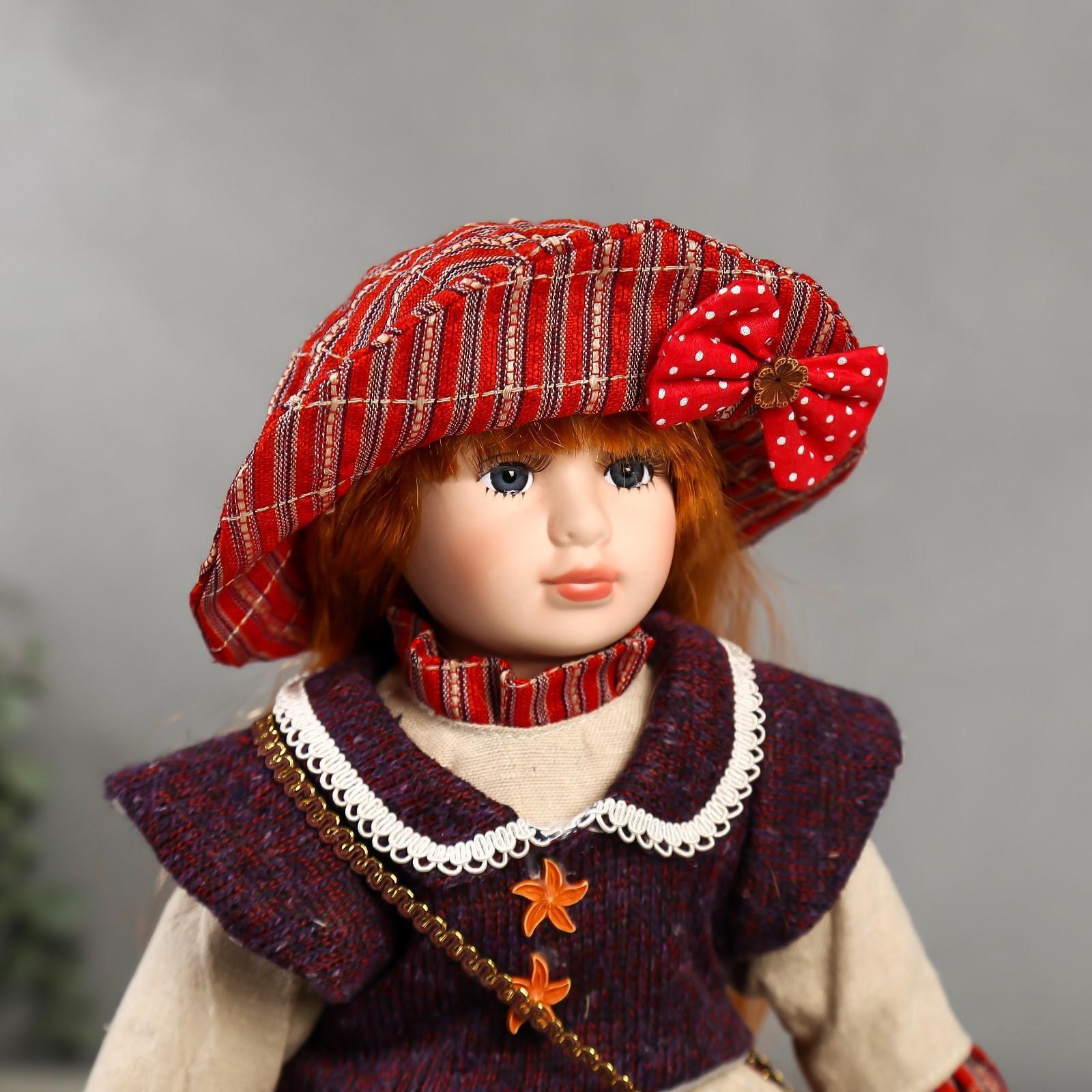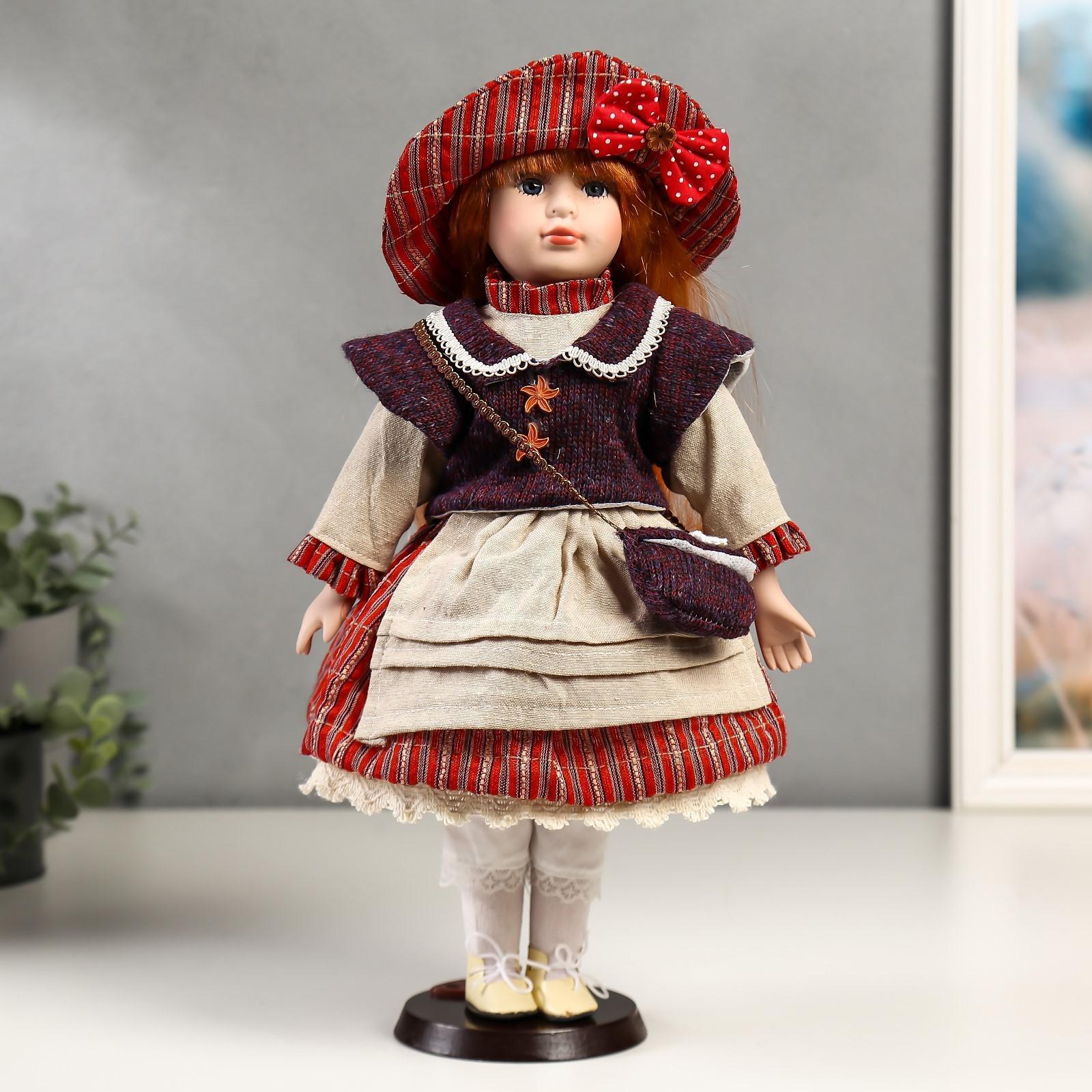 Кукла коллекционная керамика "Ульяна в полосатом платье с передником" 40 см