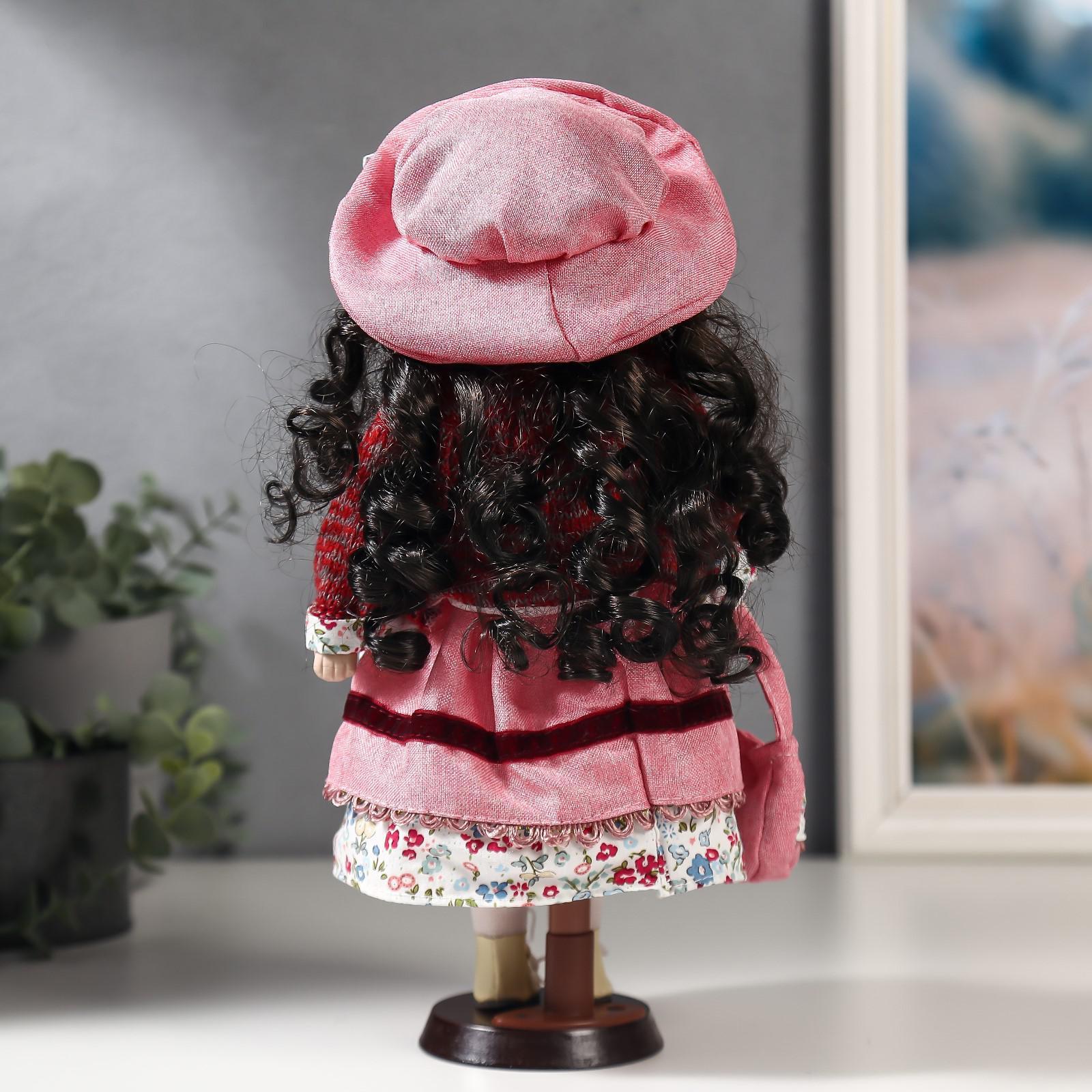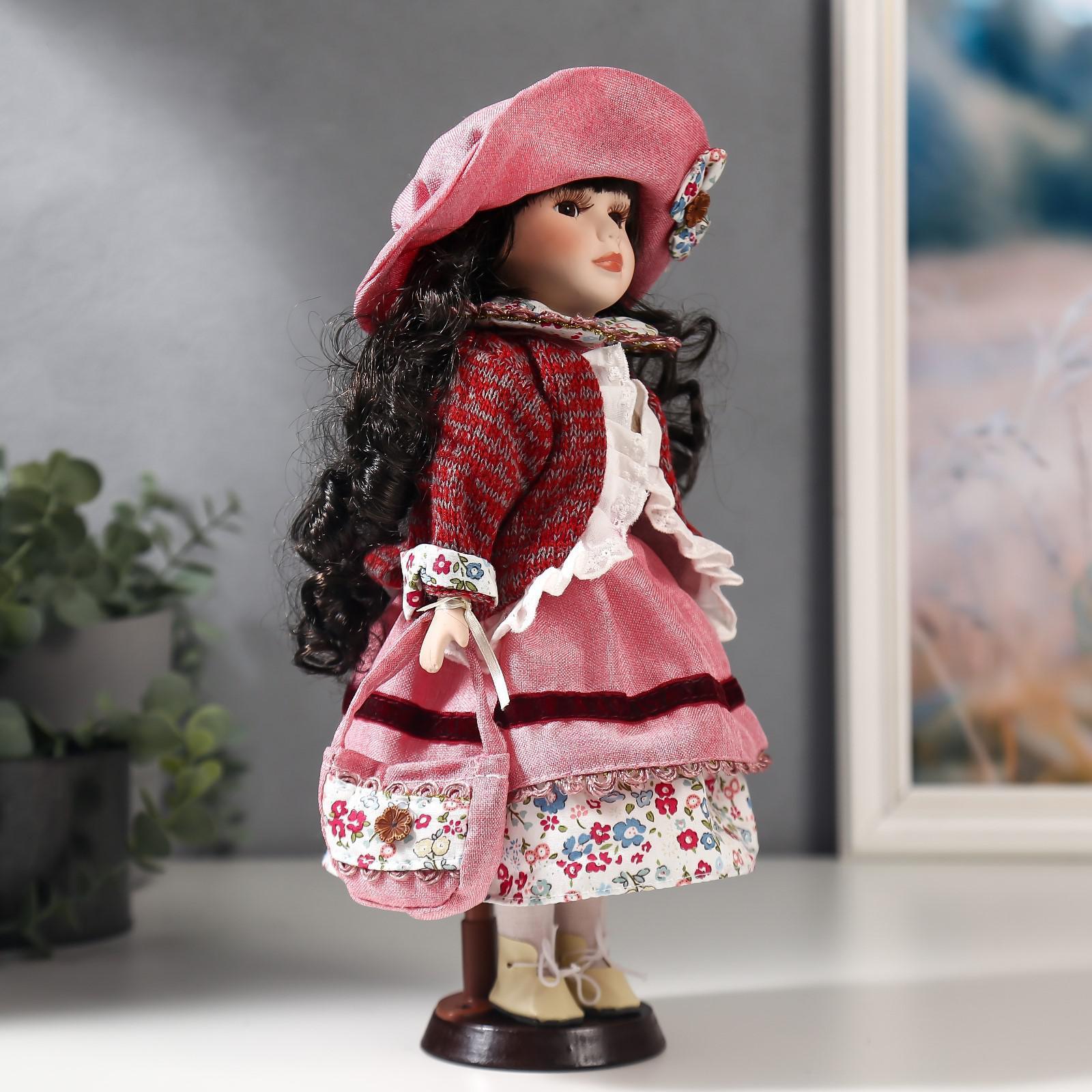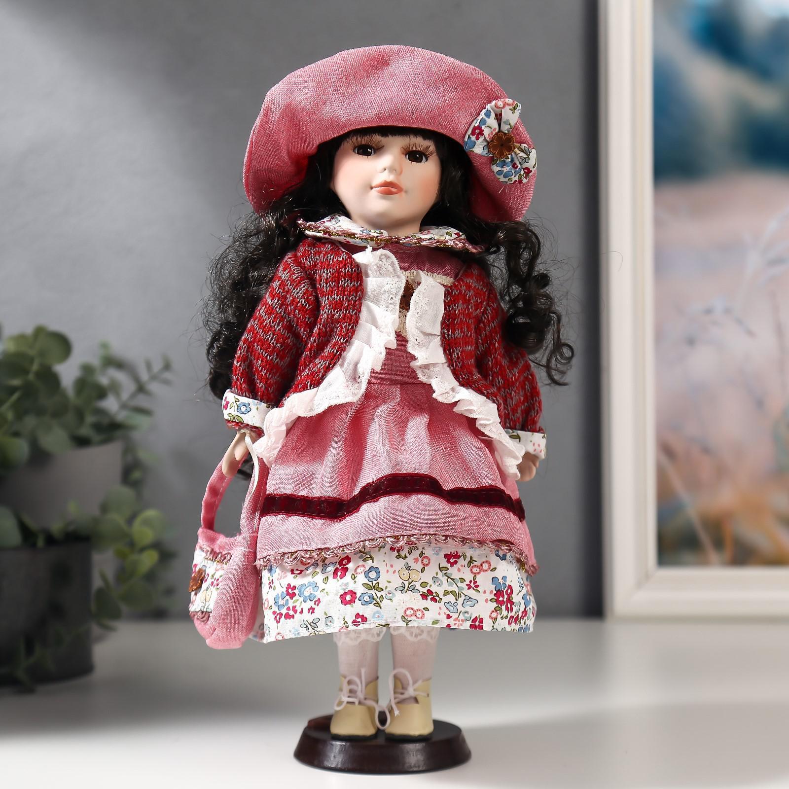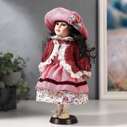 Кукла коллекционная керамика "Даша в коралловом платье и бордовом джемпере" 30 см