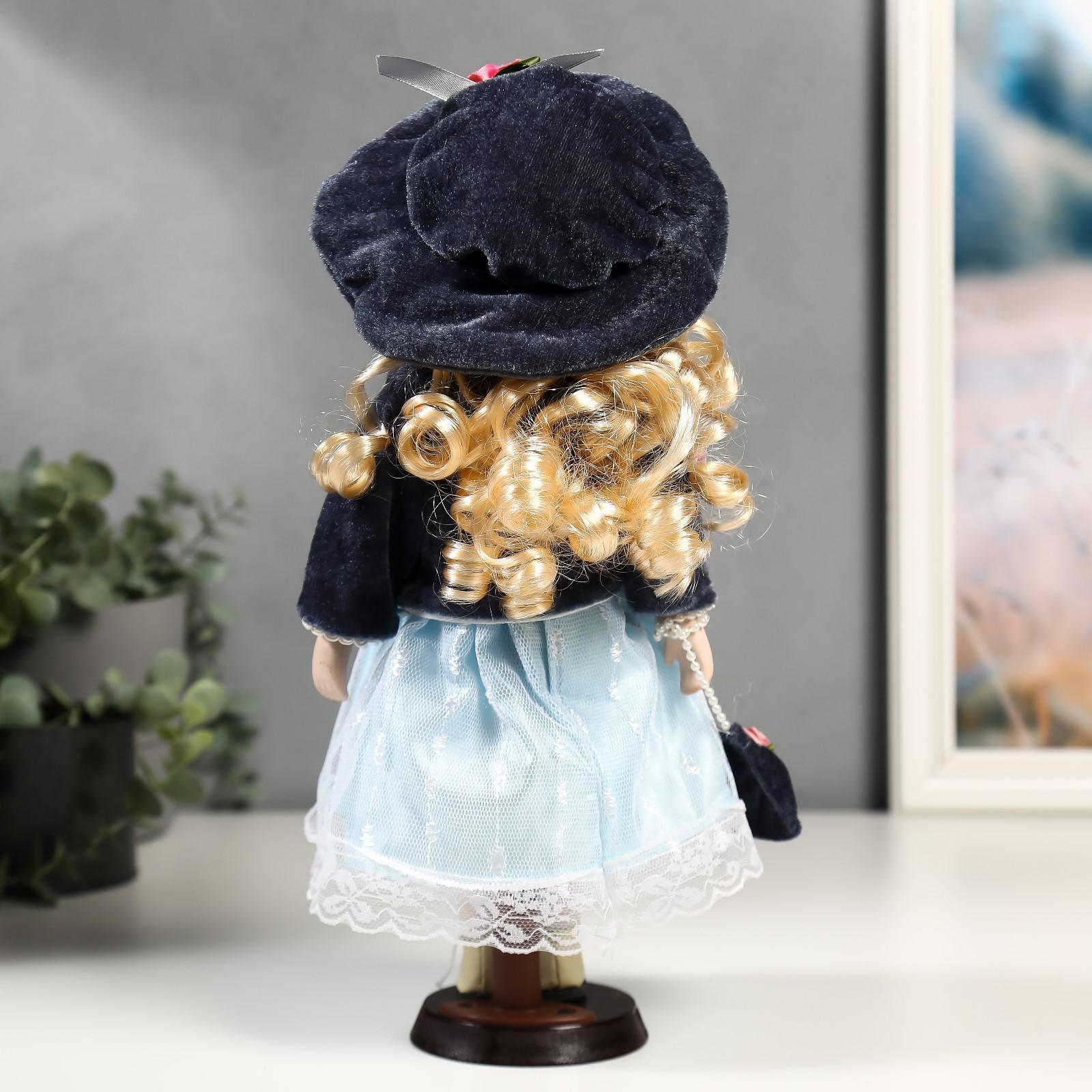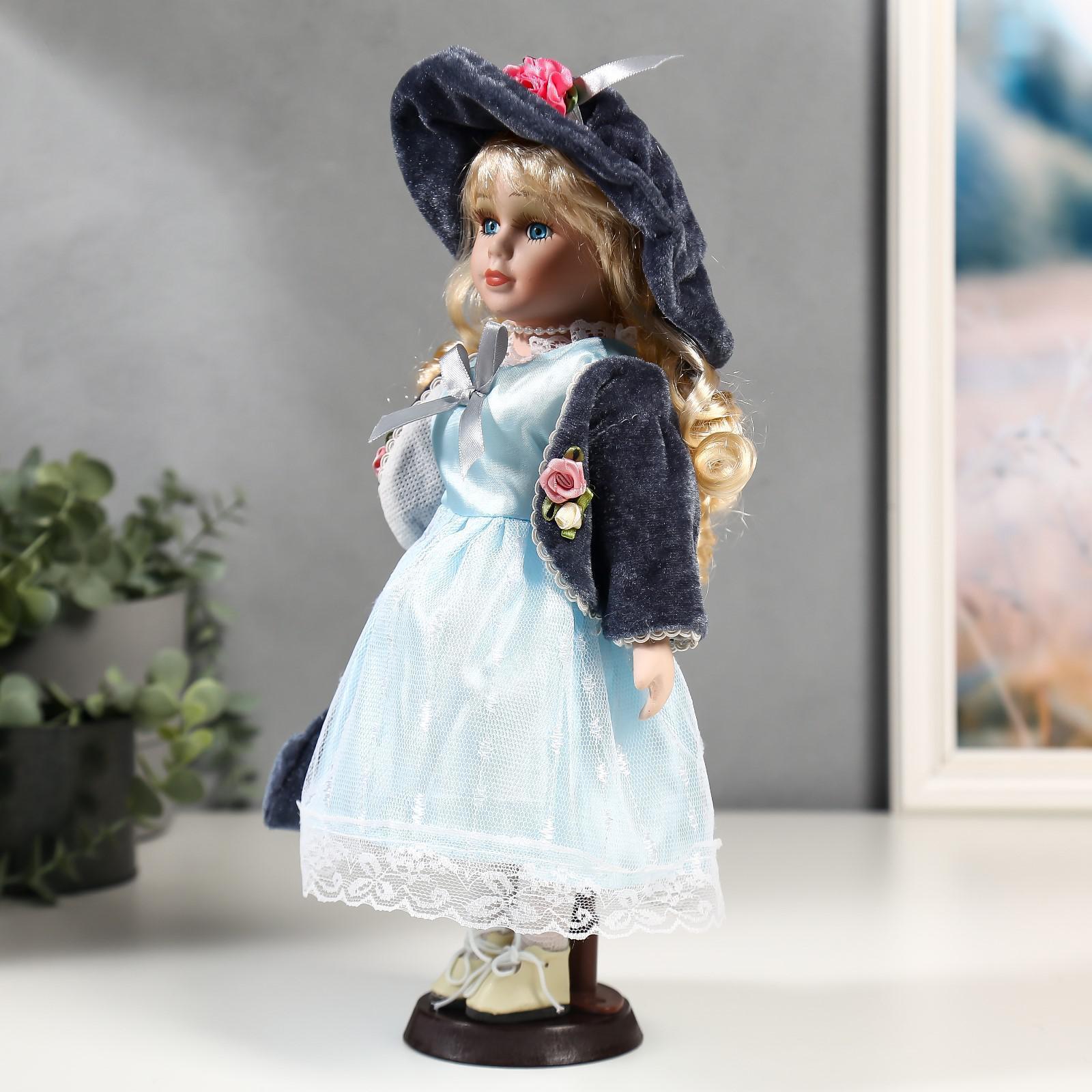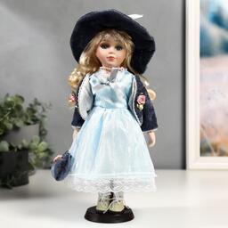 Кукла коллекционная керамика "Ирина в голубом платье и сером пиджаке" 30 см
