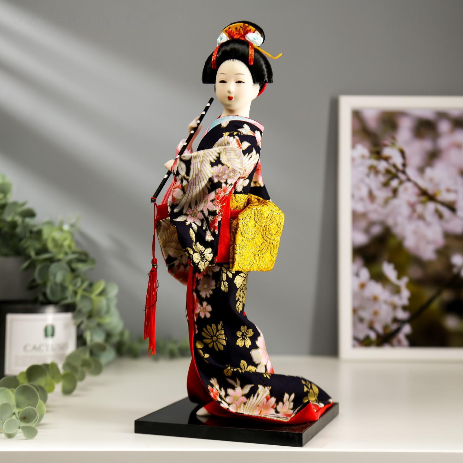 Кукла коллекционная "Японка в цветочном кимоно с флейтой" 30х12,5х12,5 см