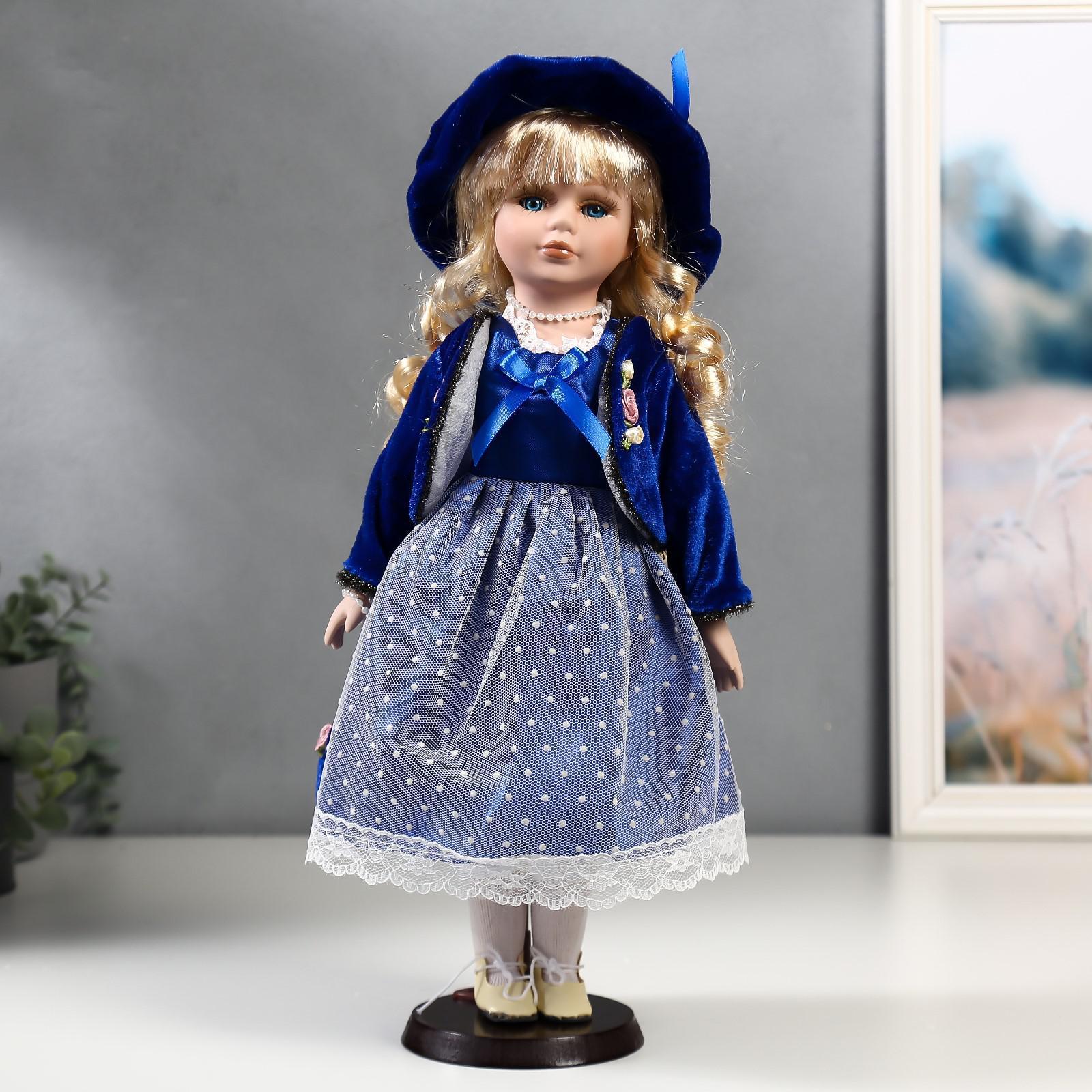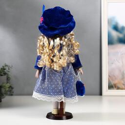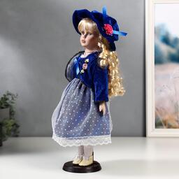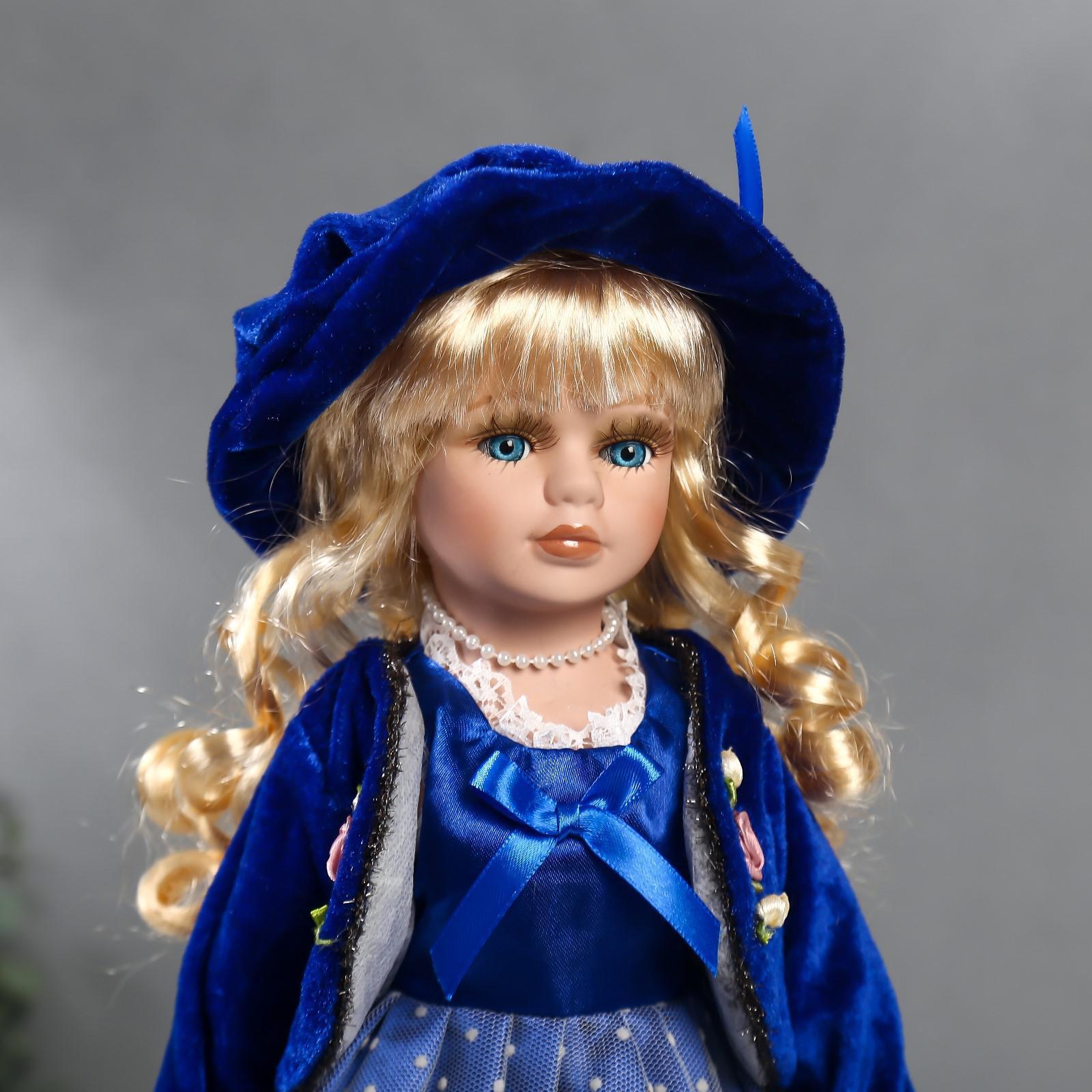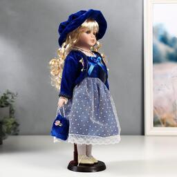 Кукла коллекционная керамика "Женя в синем платье и бархатном пиджаке" 40 см
