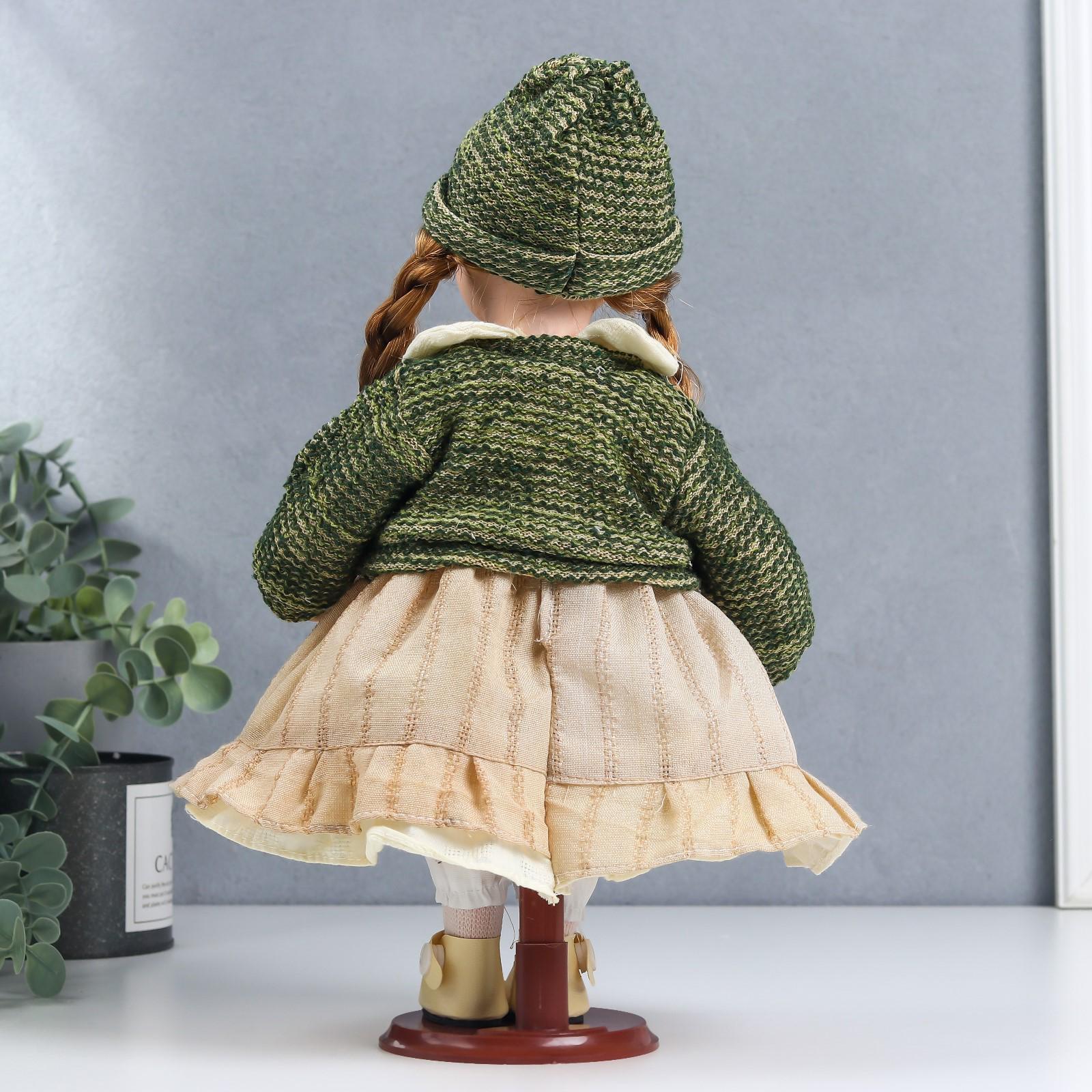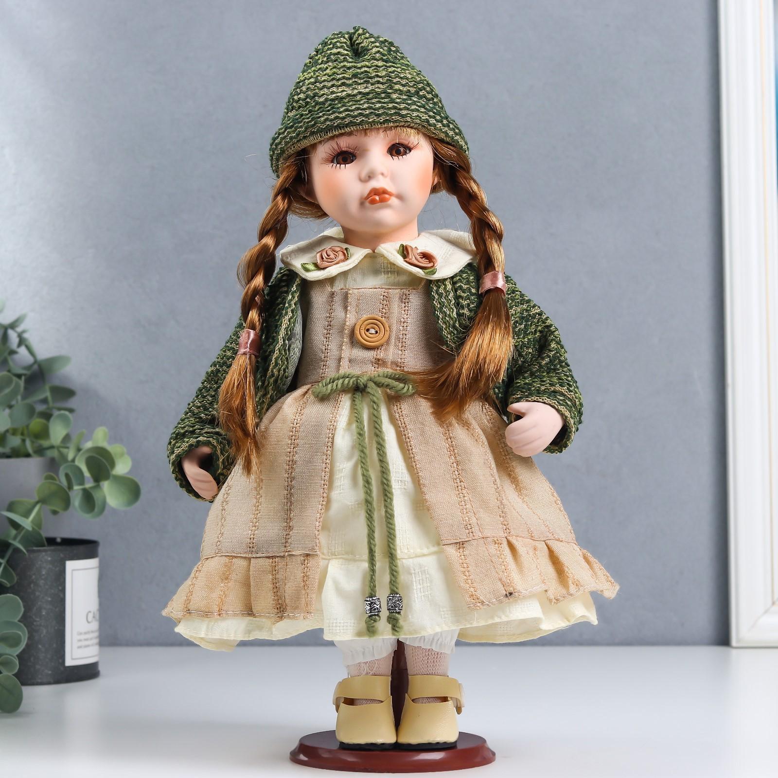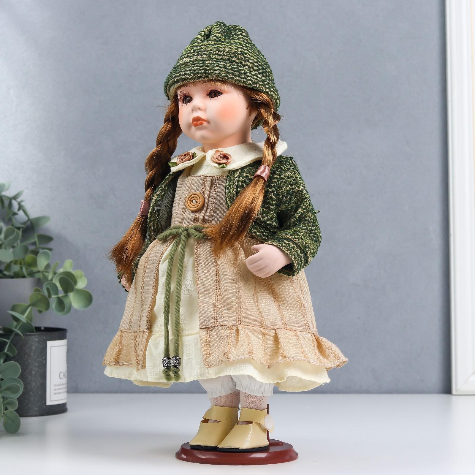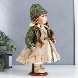 Кукла коллекционная керамика "Василиса в бежевом платье, зелёном жакете" 30 см