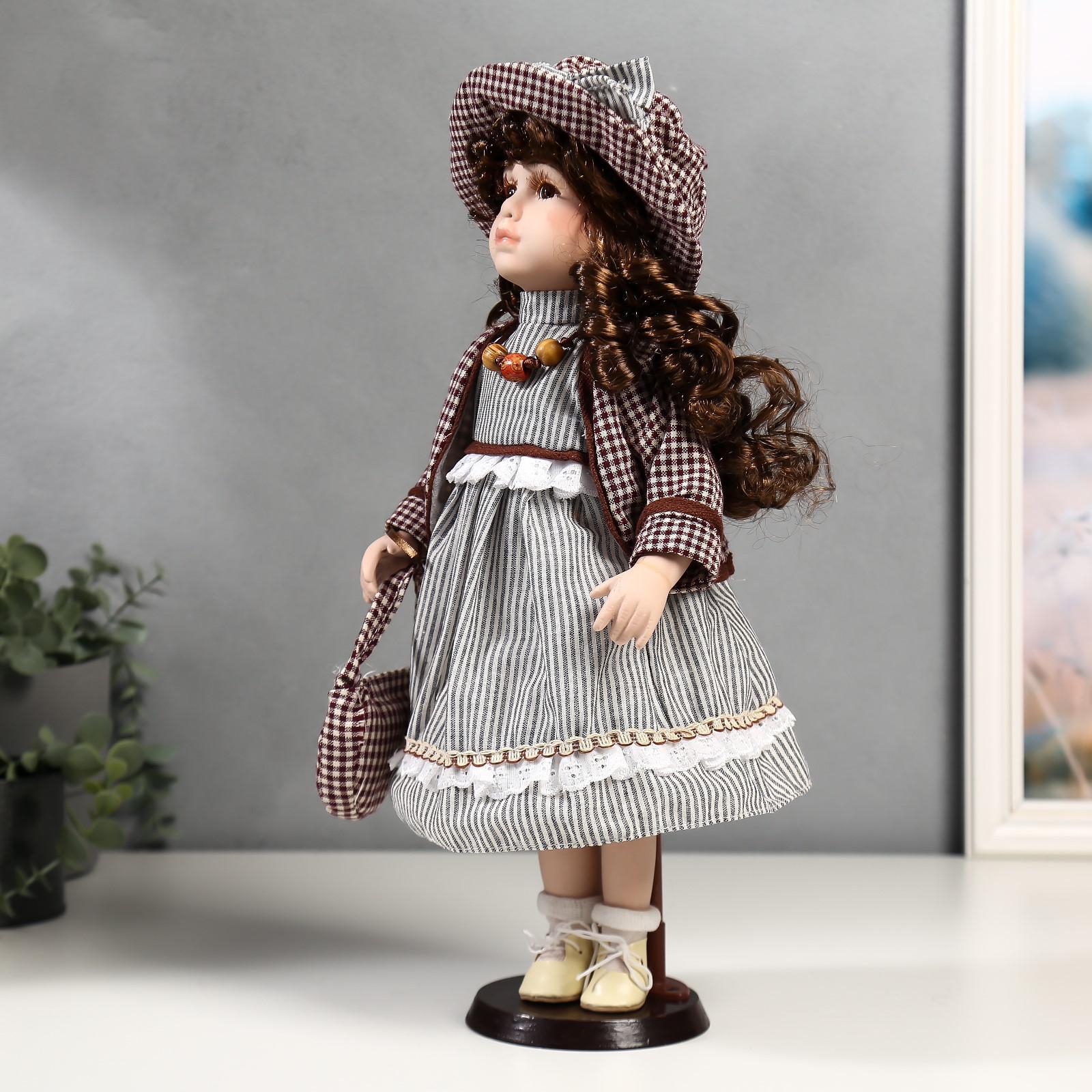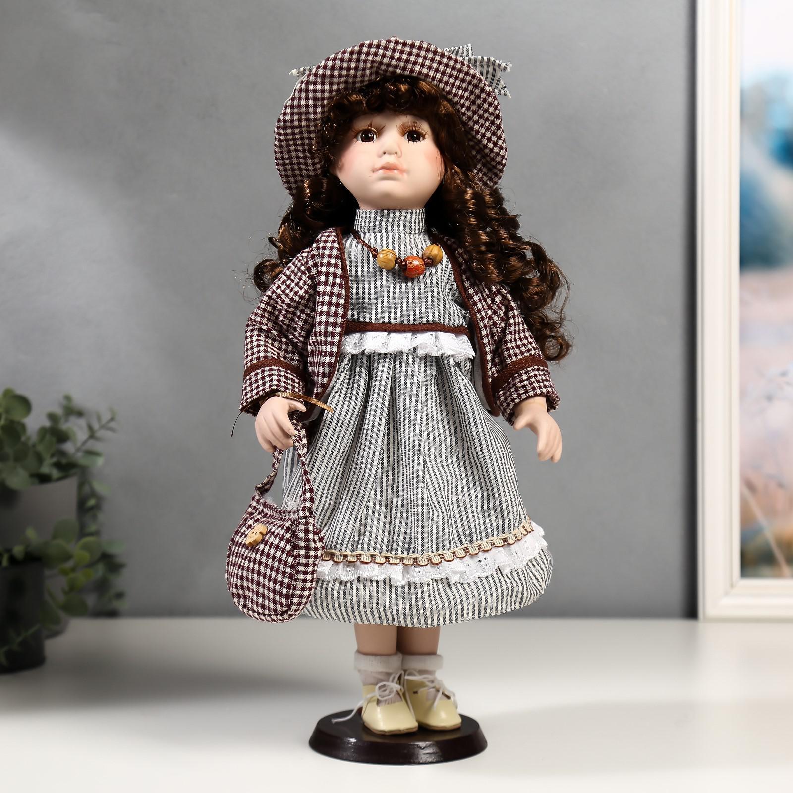 Кукла коллекционная керамика "Тая в полосатом платье и пиджаке в клетку" 40 см 4822724