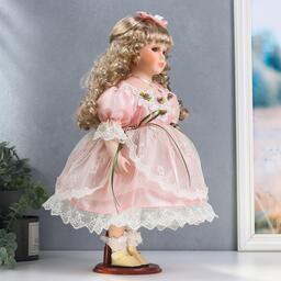Кукла коллекционная керамика "Женя в нежно-розовом платье с кружевом" 40 см