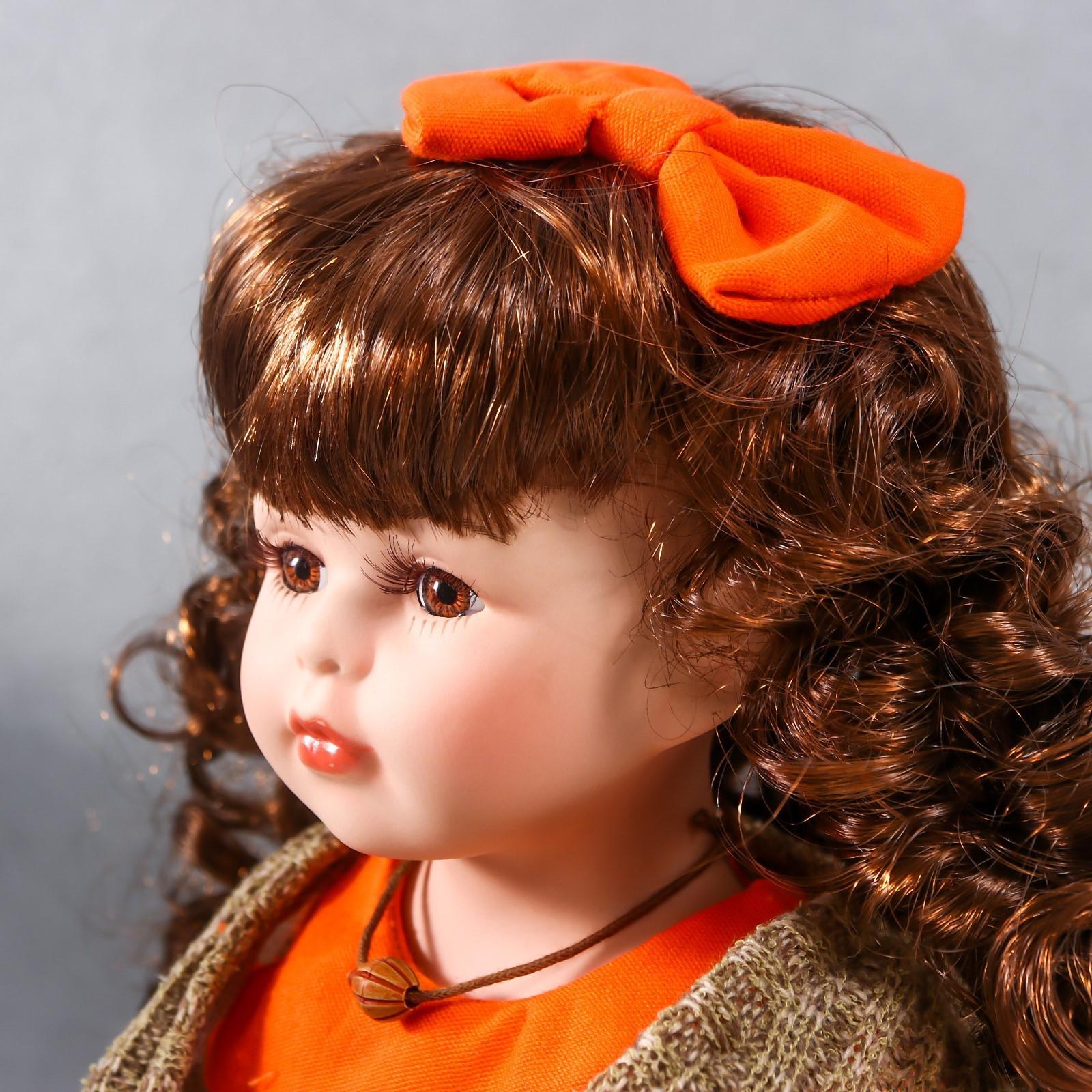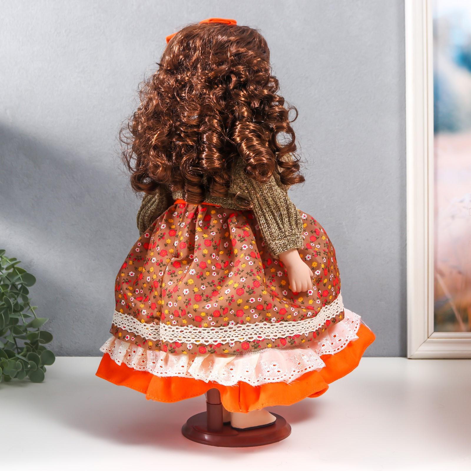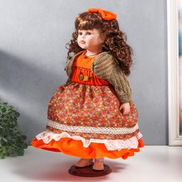 Кукла коллекционная керамика "Вера в платье с мелкими цветами и горчичном джемпере" 40 см