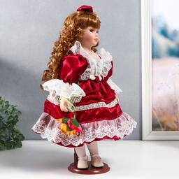 Кукла коллекционная керамика "Наташа в бордовом платье с рюшами, с бантом в волосах" 40 см