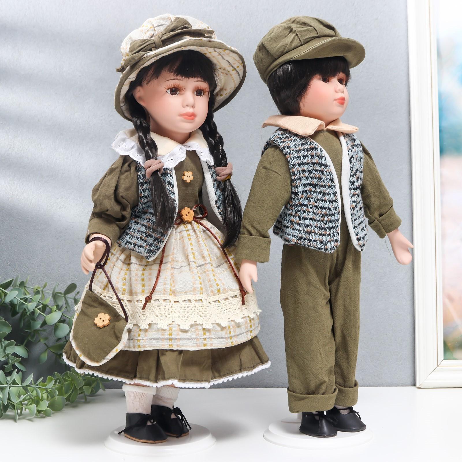 Кукла коллекционная парочка "Маня и Ваня, оливковые наряды" набор 2 шт 40 см