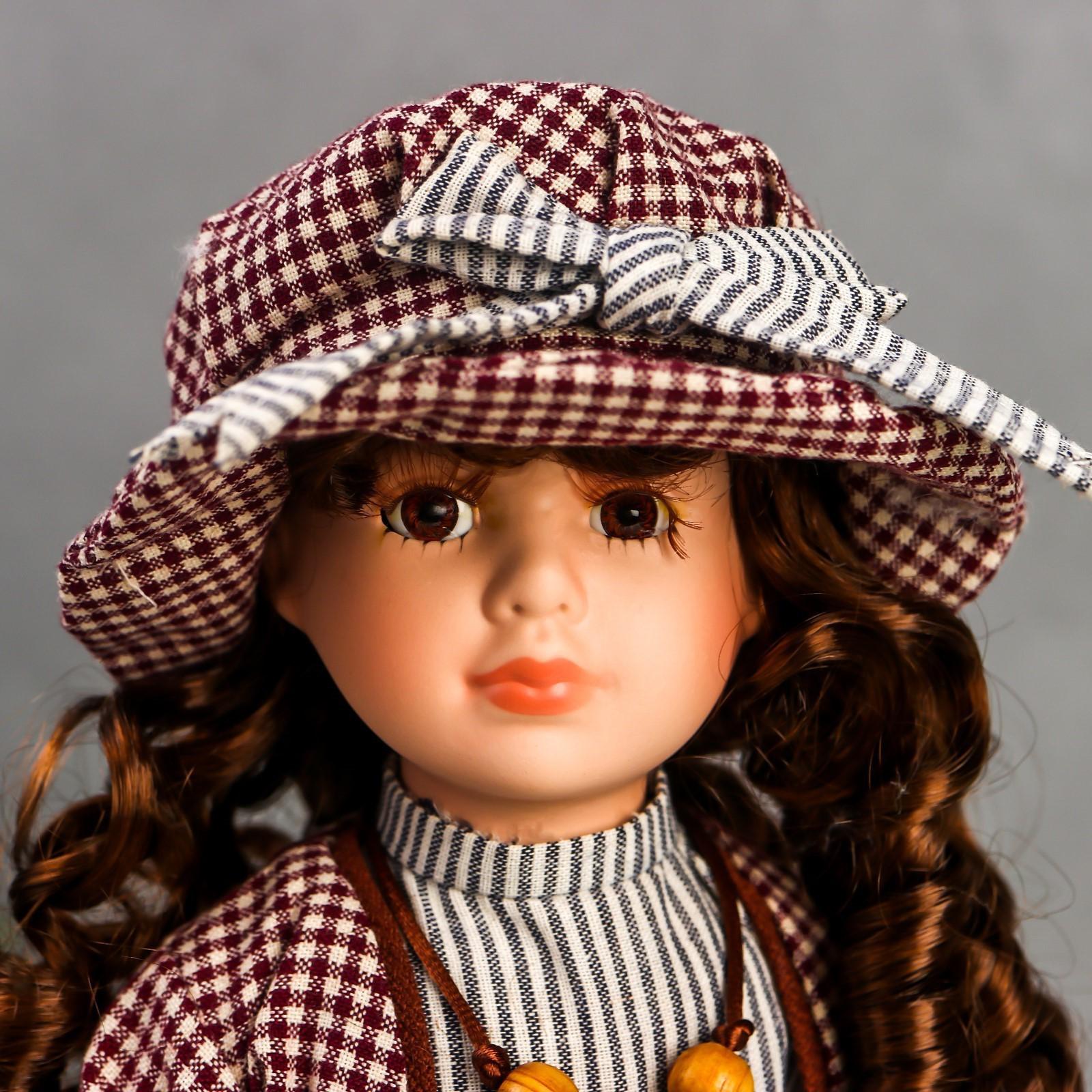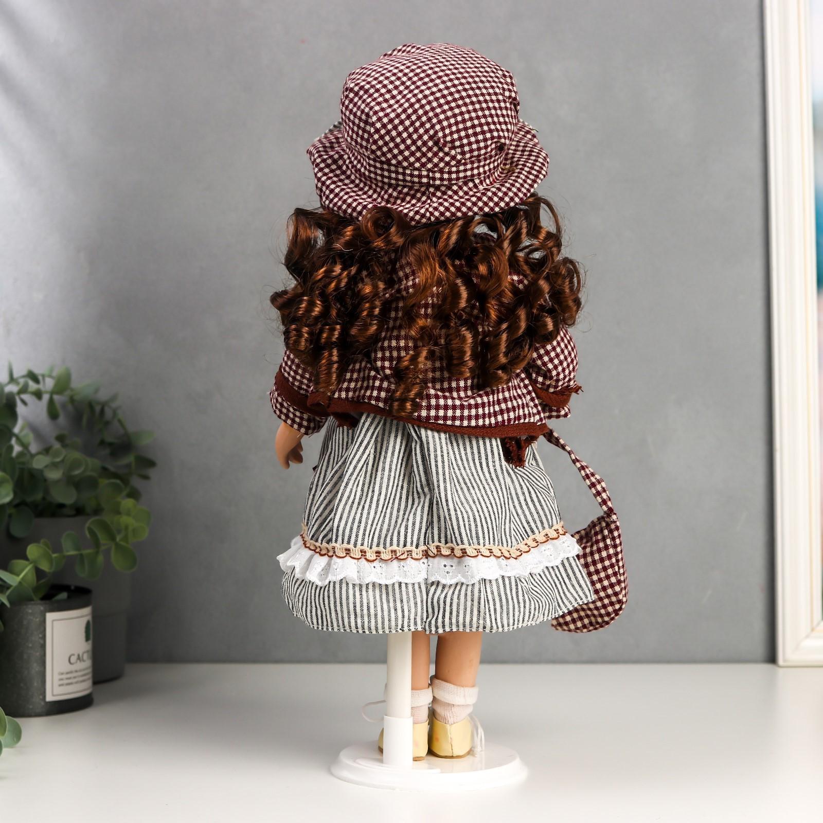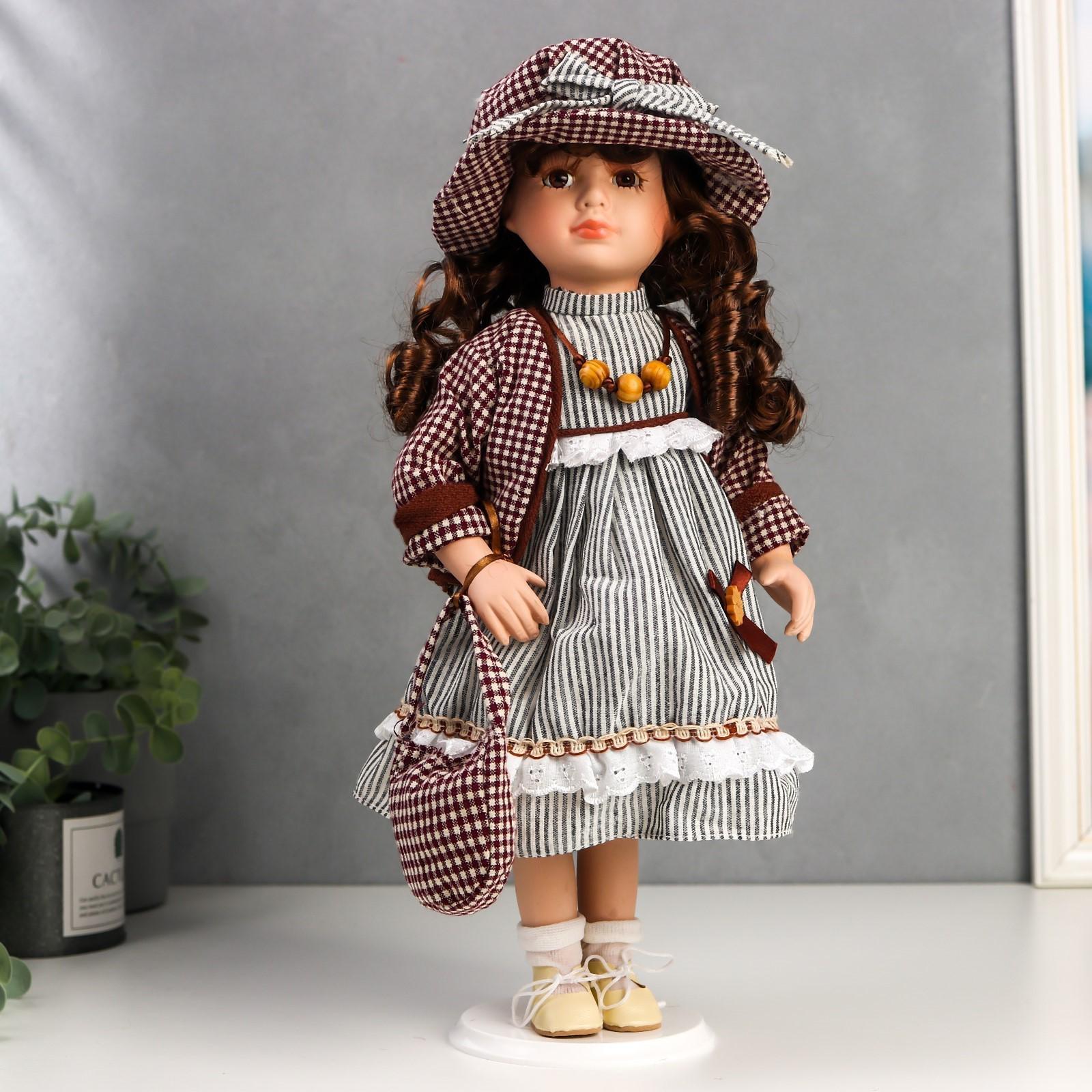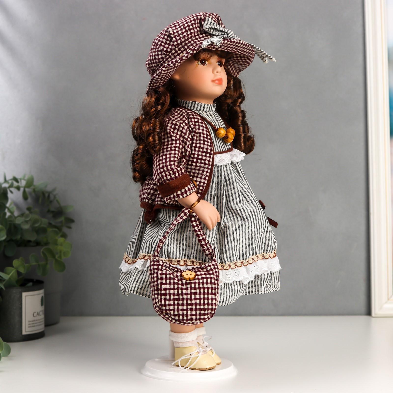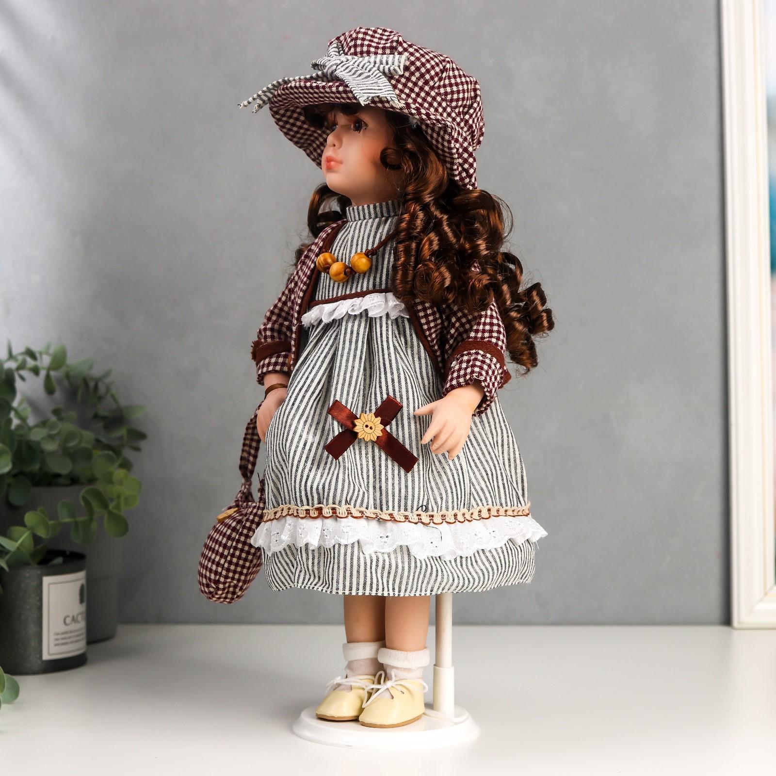 Кукла коллекционная керамика "Кристина в платье с серыми полосками" 40 см