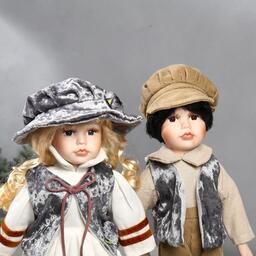 Кукла коллекционная парочка набор 2 шт "Юля и Юра в плюшевых жилетках" 40 см