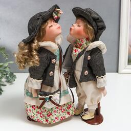 Кукла коллекционная парочка поцелуй набор 2 шт "Галя и Сева в серых курточках" 30 см