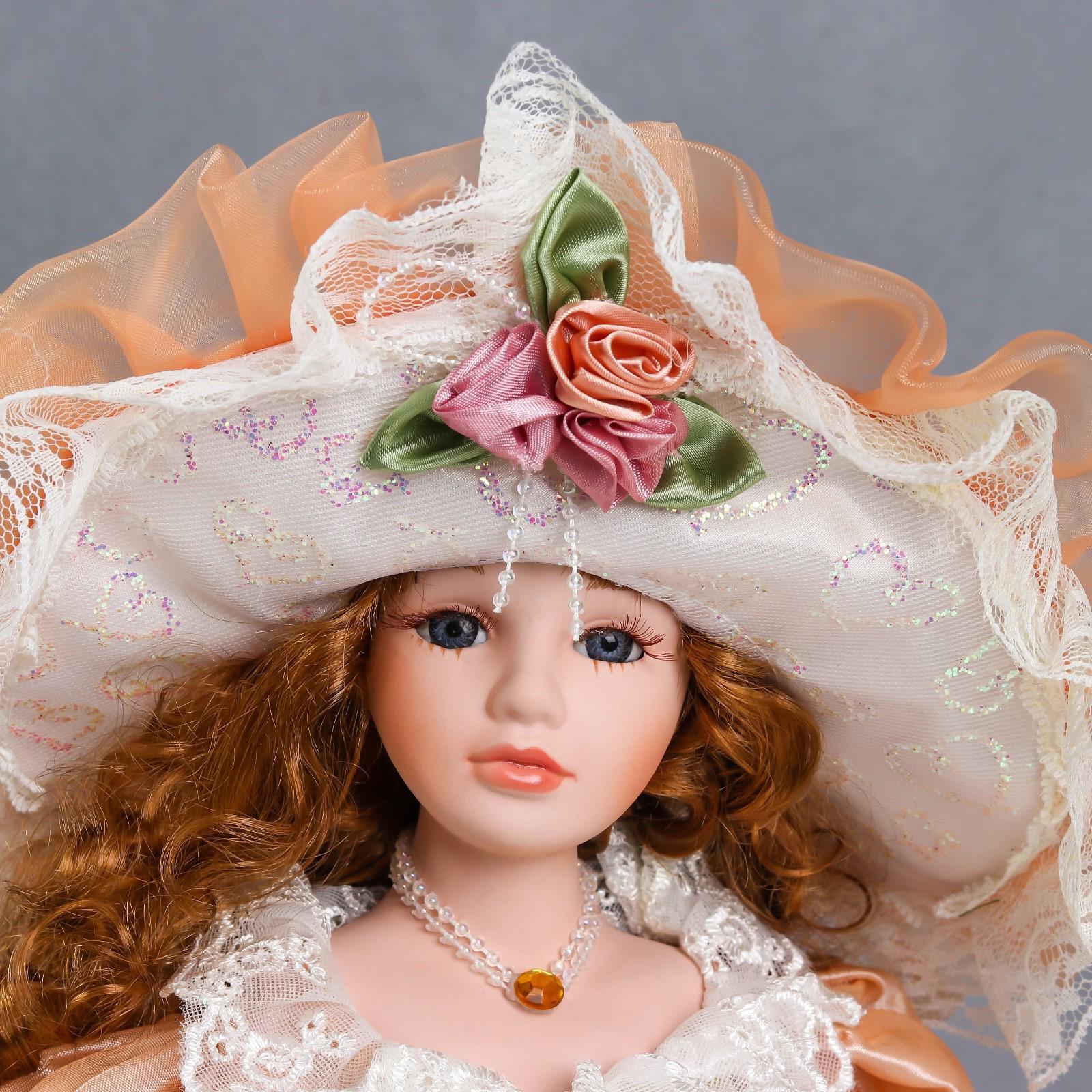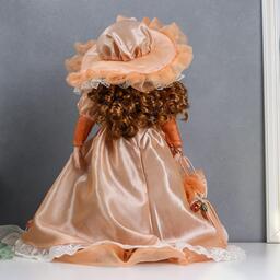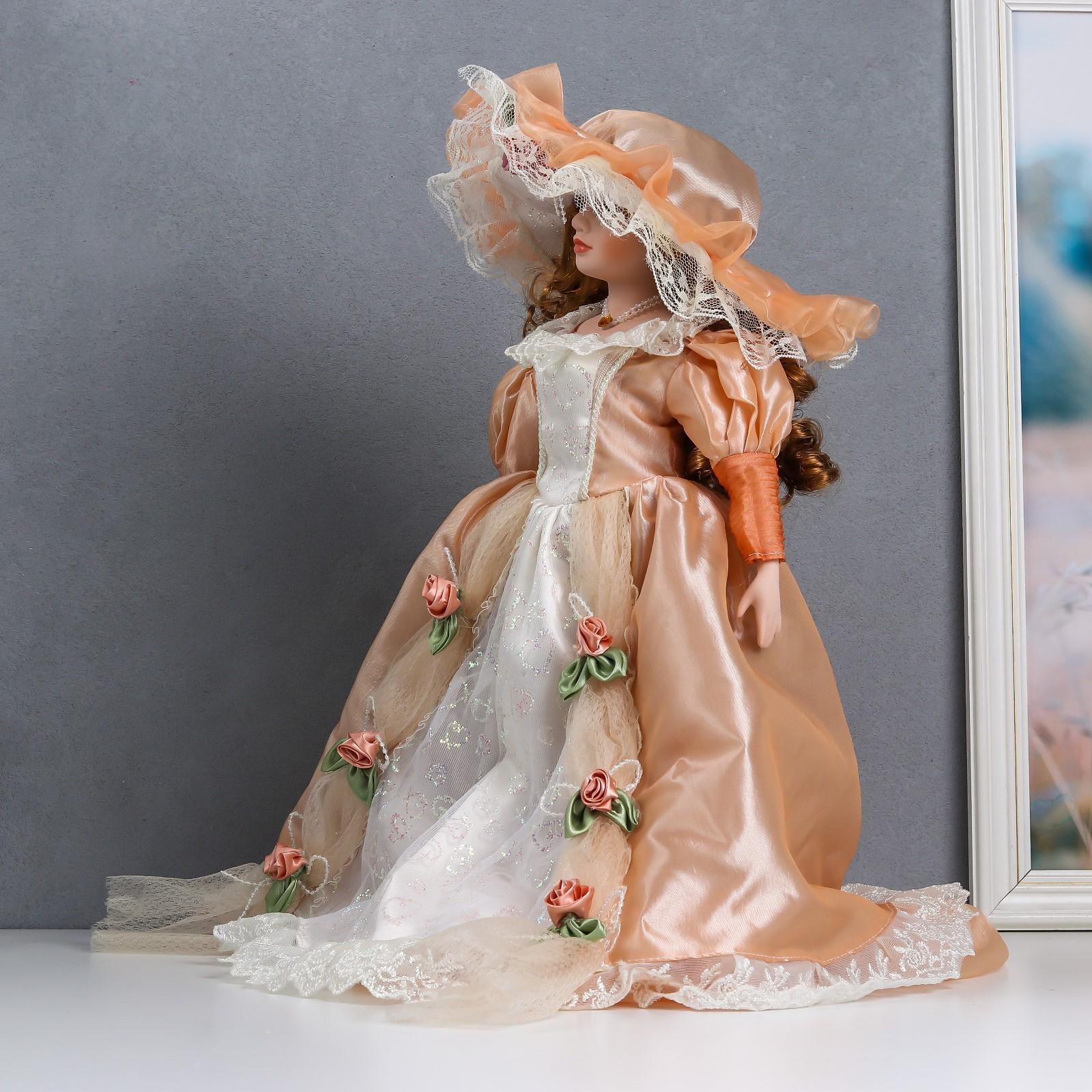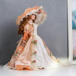 Кукла коллекционная керамика "Леди Виктория в нежно-персиковом платье, с зонтом" 45 см