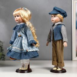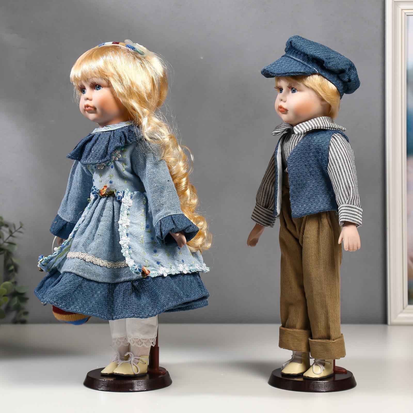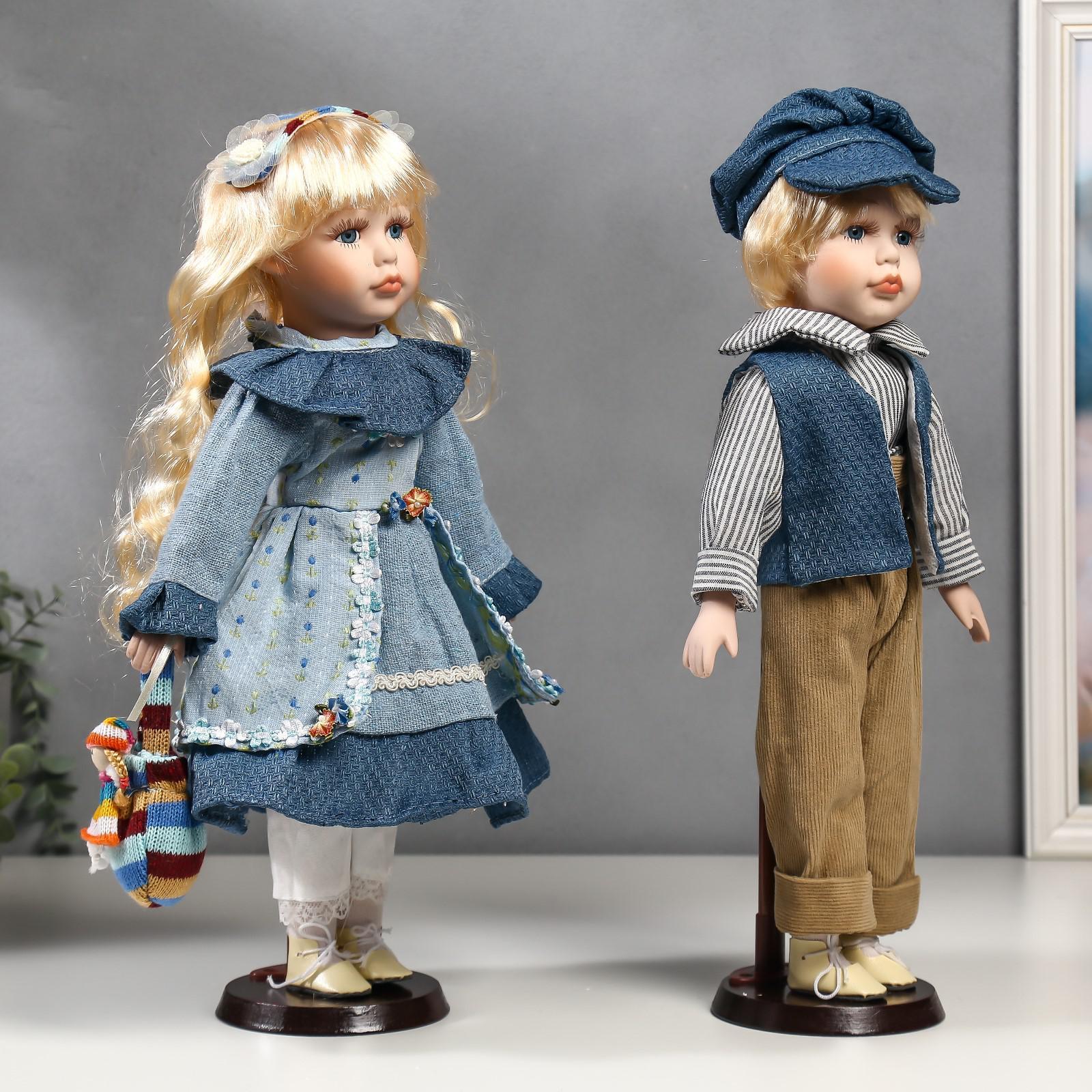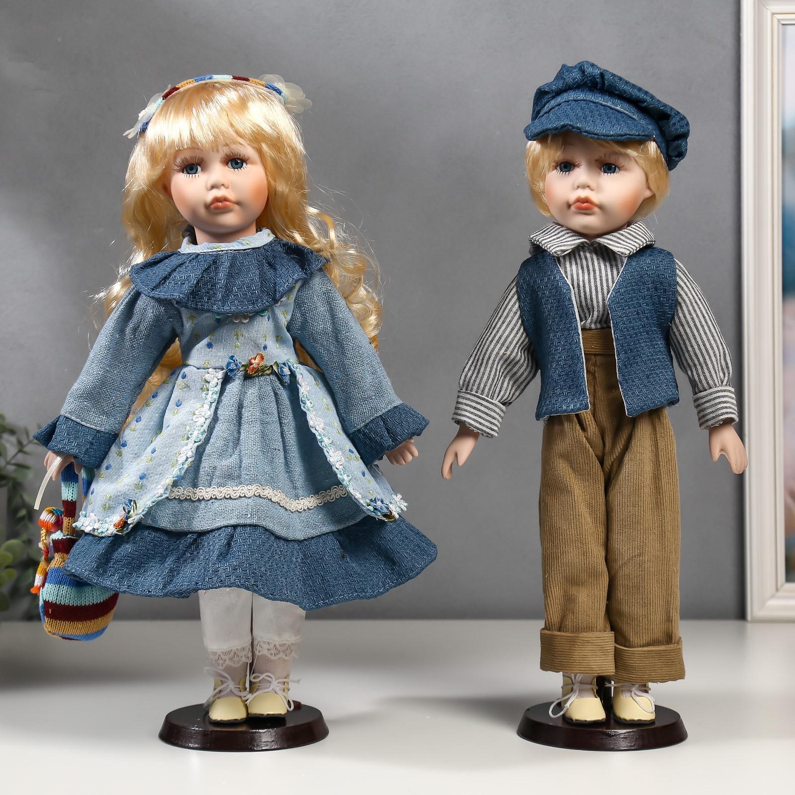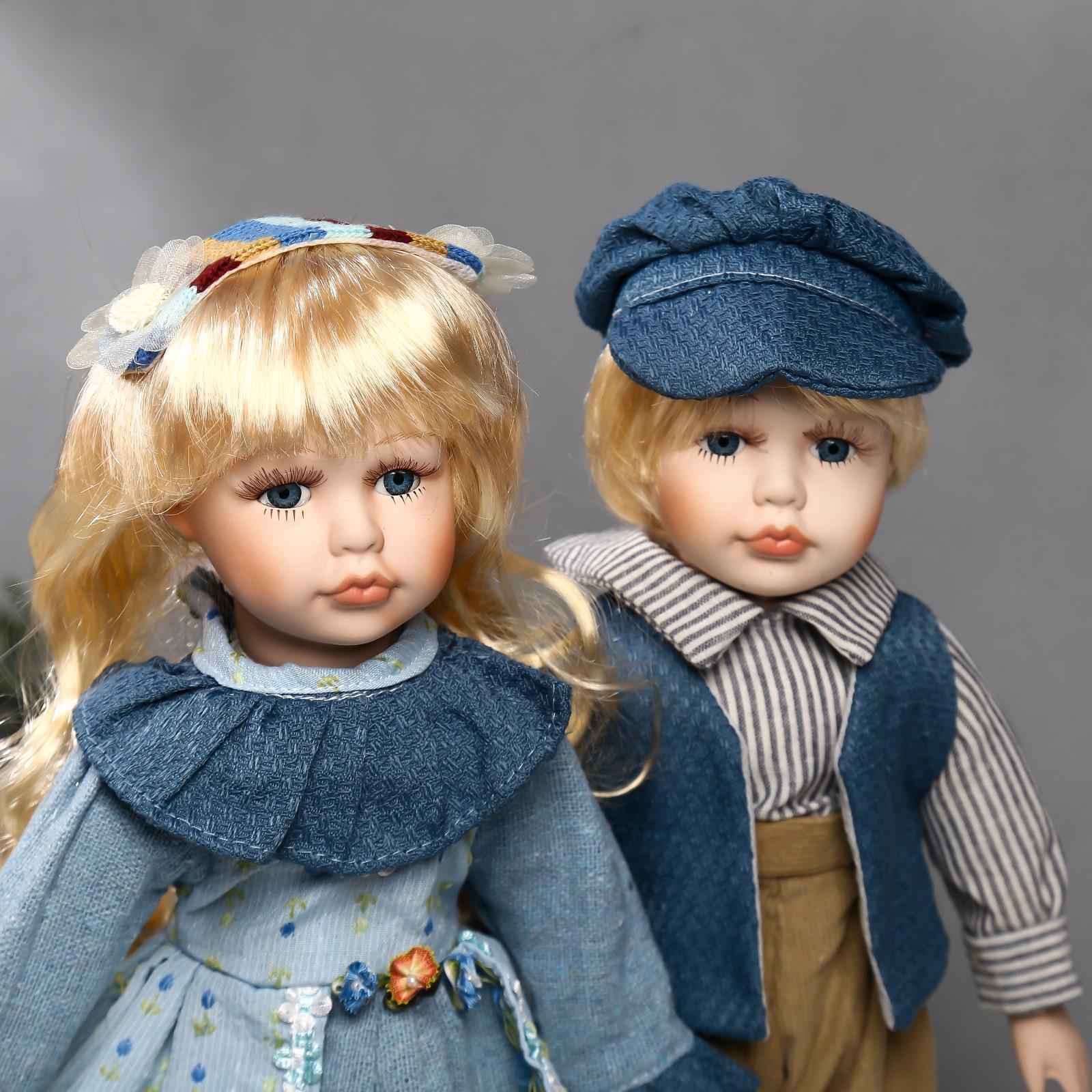 Кукла коллекционная парочка набор 2 шт "Вера и Сережа в голубых нарядах" 40 см