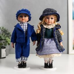 Кукла коллекционная парочка набор 2 шт "Света и Слава в голубых нарядах с джинсой" 30 см