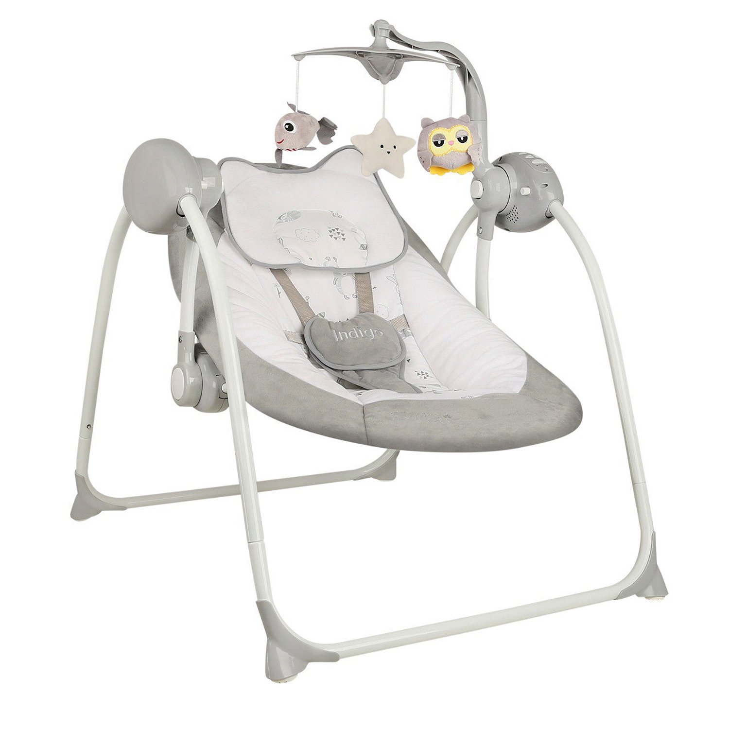 Электрокачели Indigo Star (0-9 кг) с адаптером п/у 12 мелодий 5 скоростей москитка серый 4627183285459