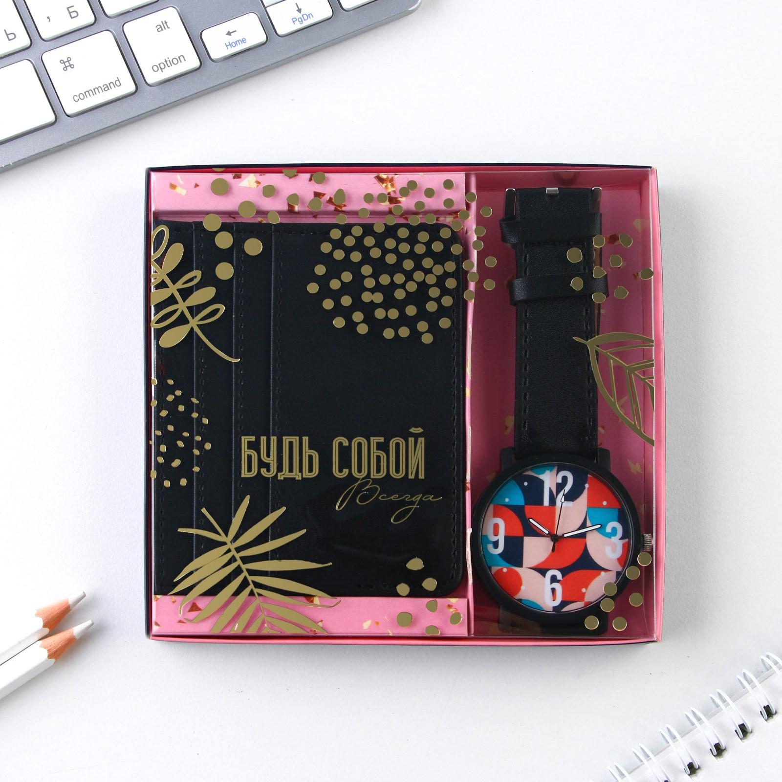 Набор: часы наручные и картхолдер «Всему свое время» 5459613