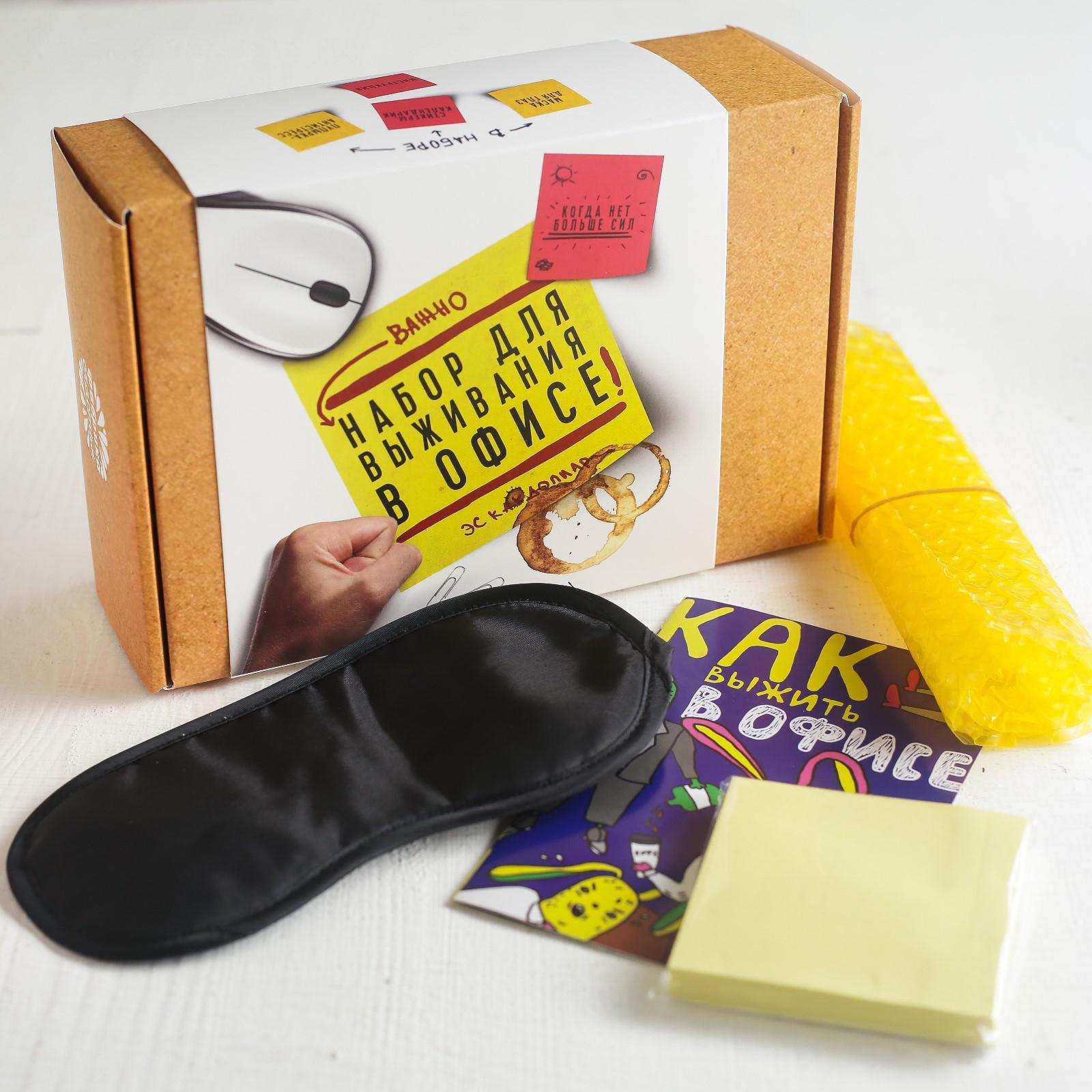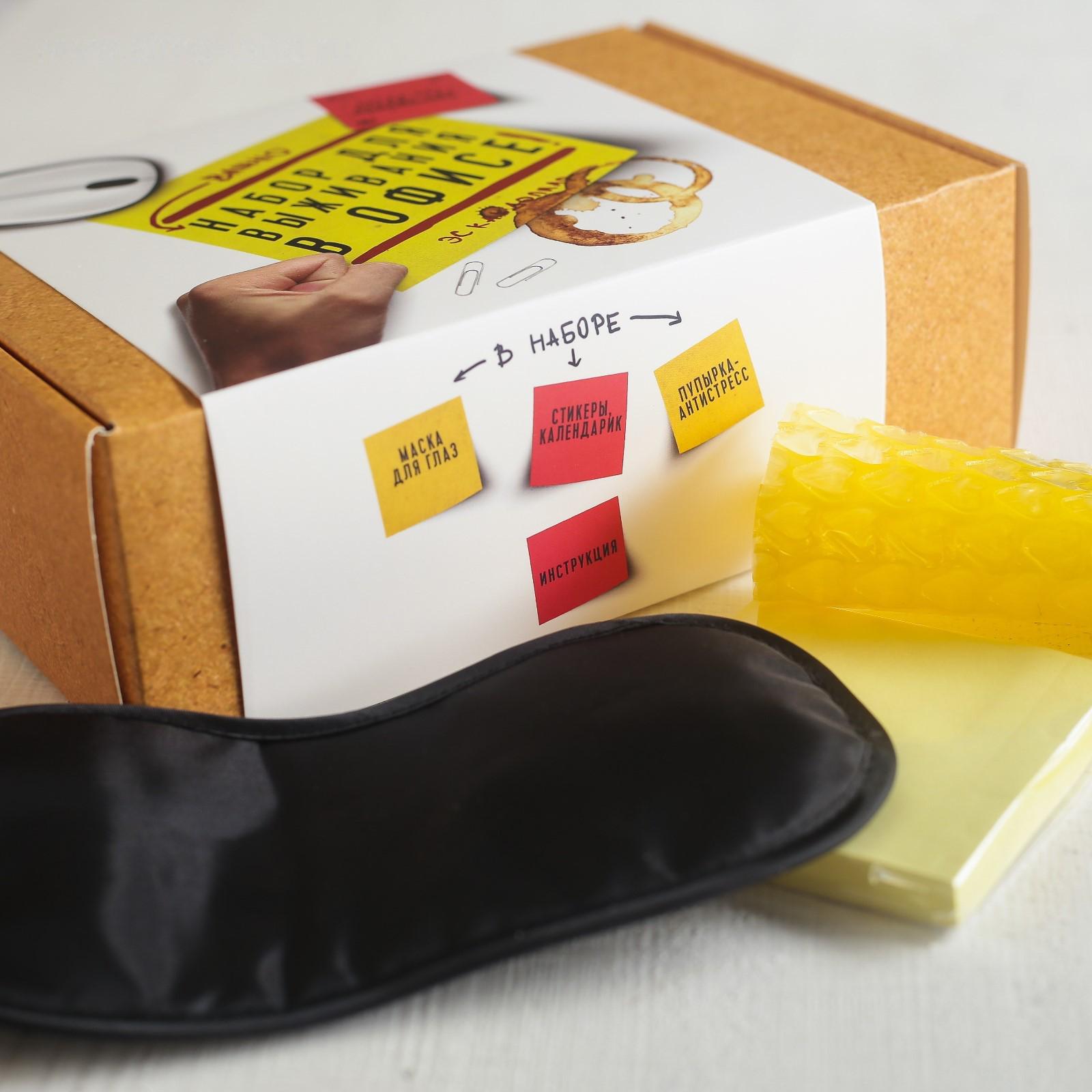 Набор для выживания "В офисе", маска для сна, стикеры, пупырка - антистресс