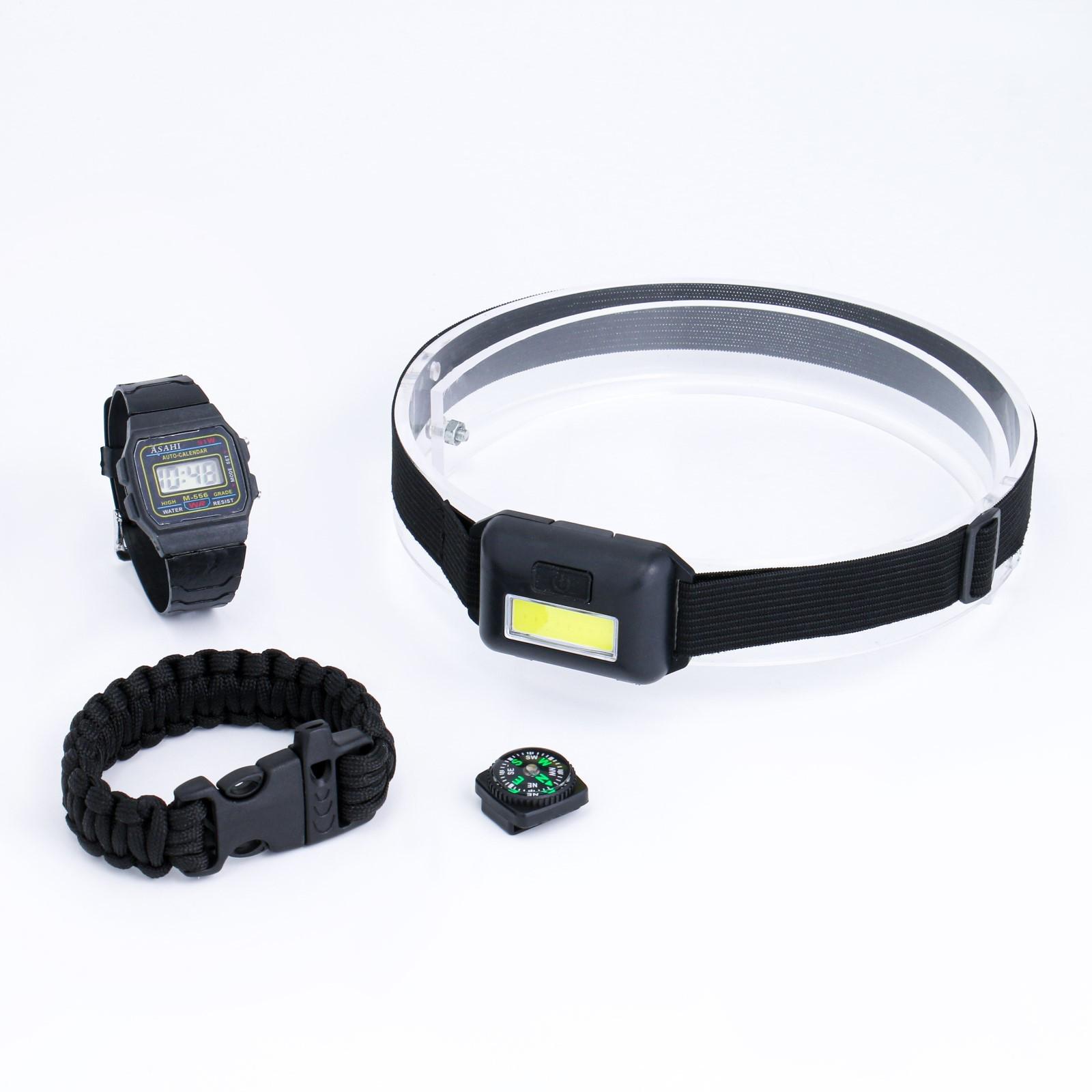 • Составляющие набора Браслет, Компас, Фонарик, Часы