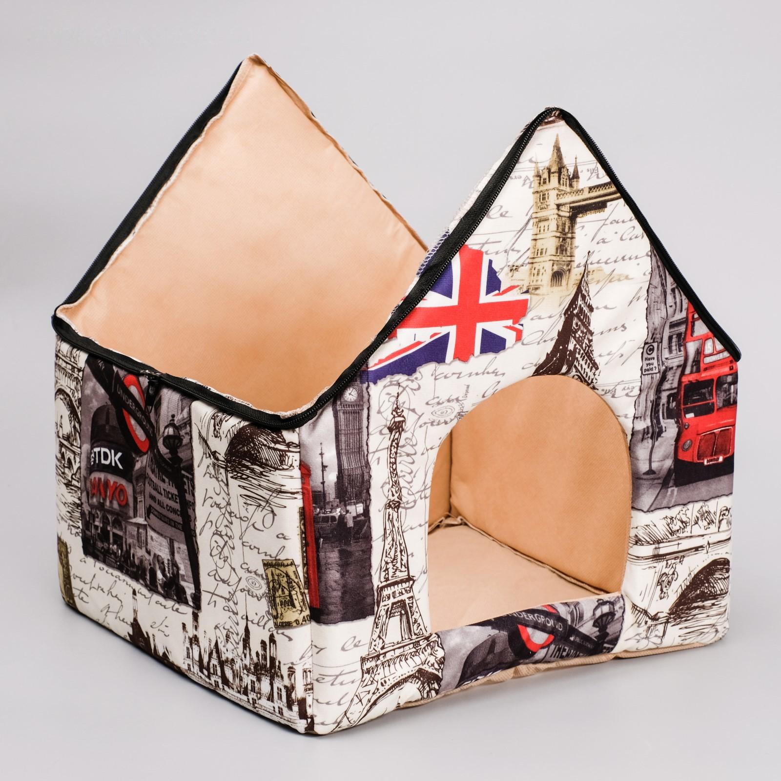 Дом с крышей из искусственной кожи, 37 х35 х 42 см, мебельная ткань, микс 3864980