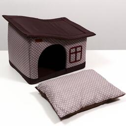 Дом для животных предназначен для комфортногого отдыха и сна вашего питомца. Домик обладает гибкой конструкцией, форму домик держит благодаря поролону на боковых частях. Он выполнен из качественных материалов, которые обеспечивают хорошую вентиляцию и защиту от холода, а внутри дома находится подушка-лежанка. Наполнитель из синтепона делает домик еще более мягким и удобным. За изделием легко ухаживать: можно использовать пылесос или специальный ролик для удаления шерсти. Также можно стирать в машине при температуре 30 градусов в ручном или деликатном режиме, а затем естественным образом расправить и подсушить. Его можно взять с собой в путешествие. Собрать и сложить в багаж, на дачу или на природу в разложенном виде. Ваше животное будет чувствовать себя в нем защищенно и безопасно.