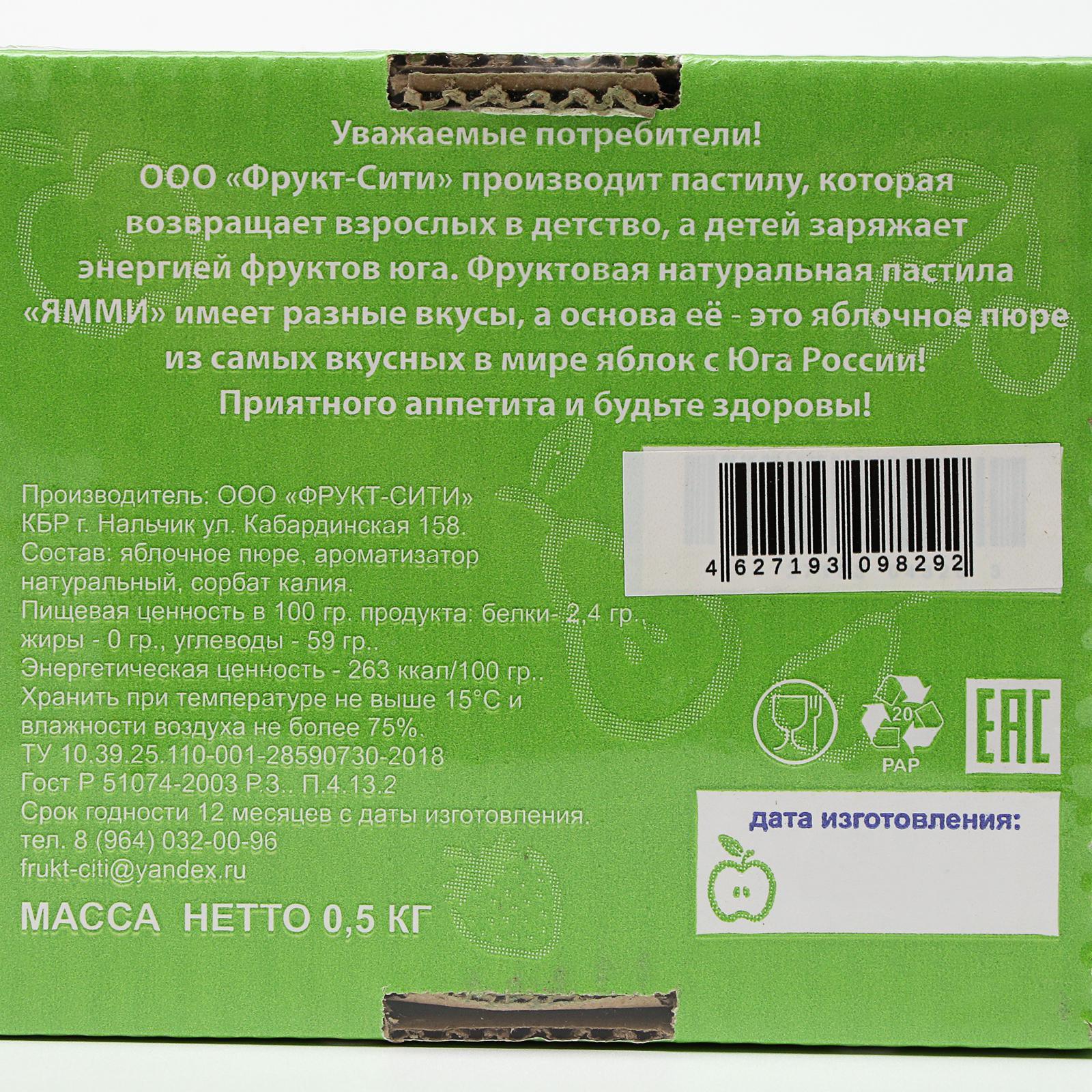 Пастила фруктовая без сахара "Ямми" Ассорти 0,5 кг 6384879