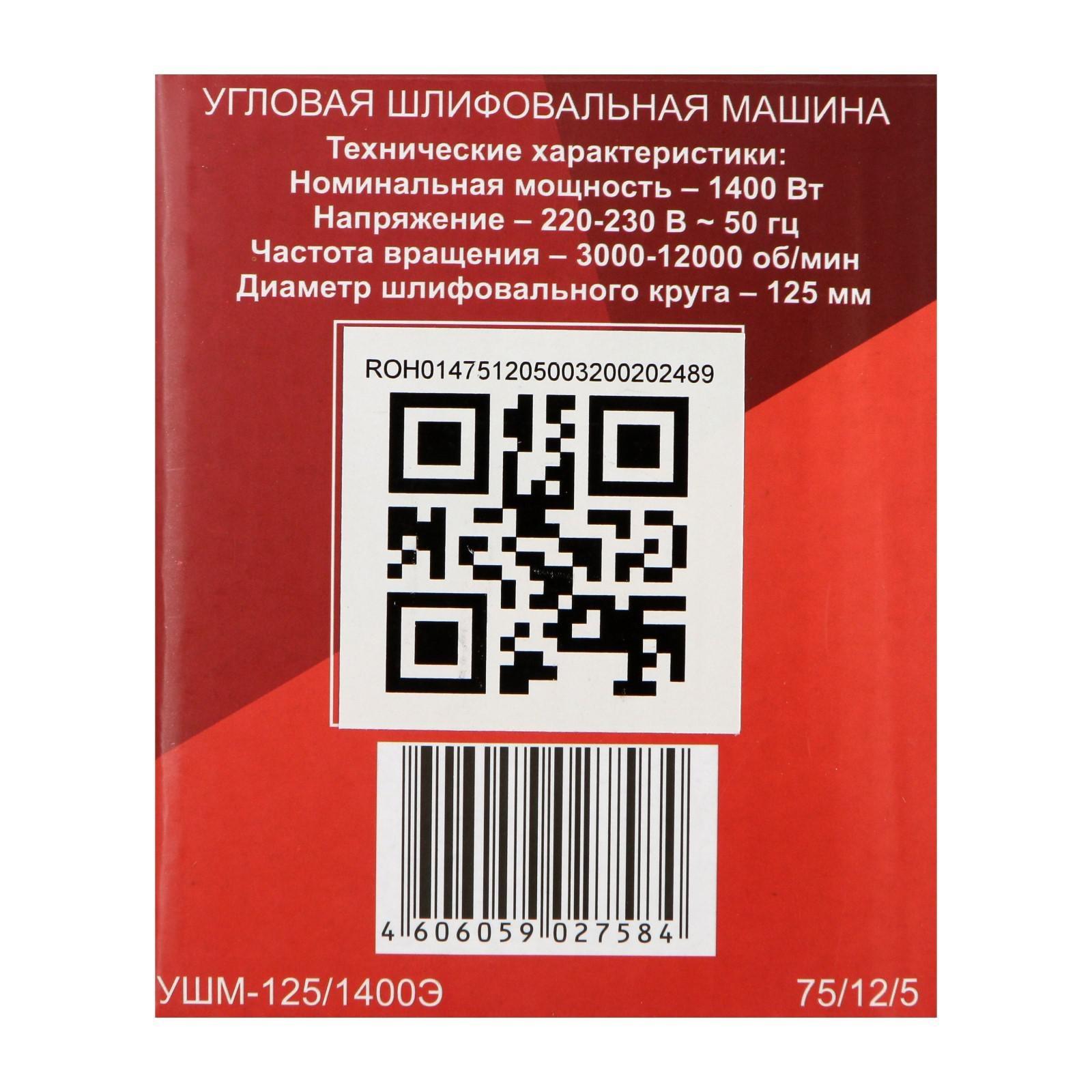 Угловая шлифмашина "Ресанта" УШМ-125/1400Э, 1400 Вт, 125х22.2 мм, 3000-12000 об/мин