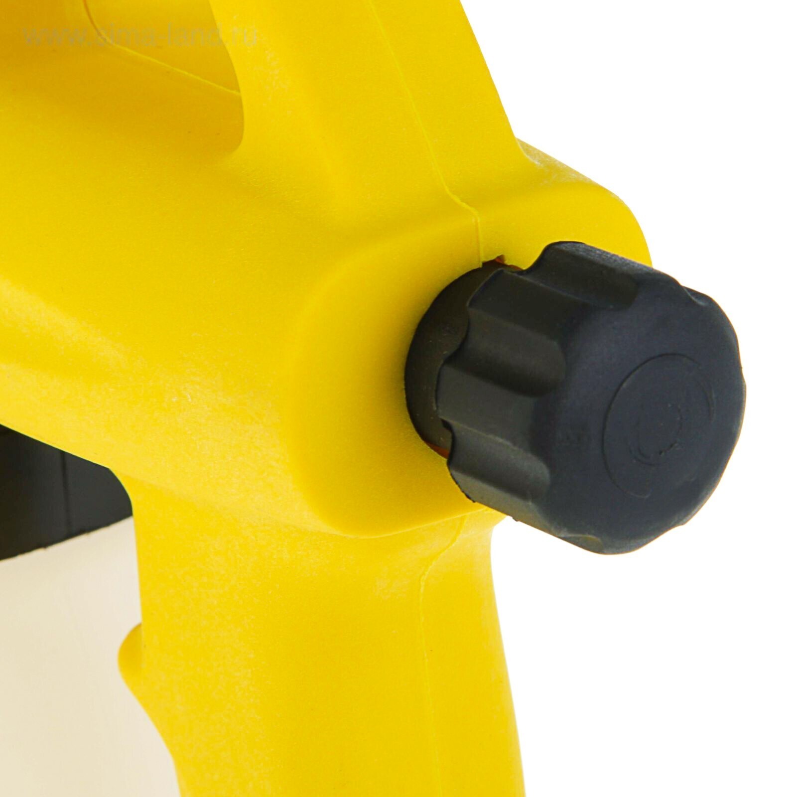 Благодаря удобному расположению спускового крючка управлять устройством можно одной рукой. Ёмкость для краски съёмная и прозрачная, что позволяет контролировать количество оставшегося материала, не останавливая рабочий процесс.