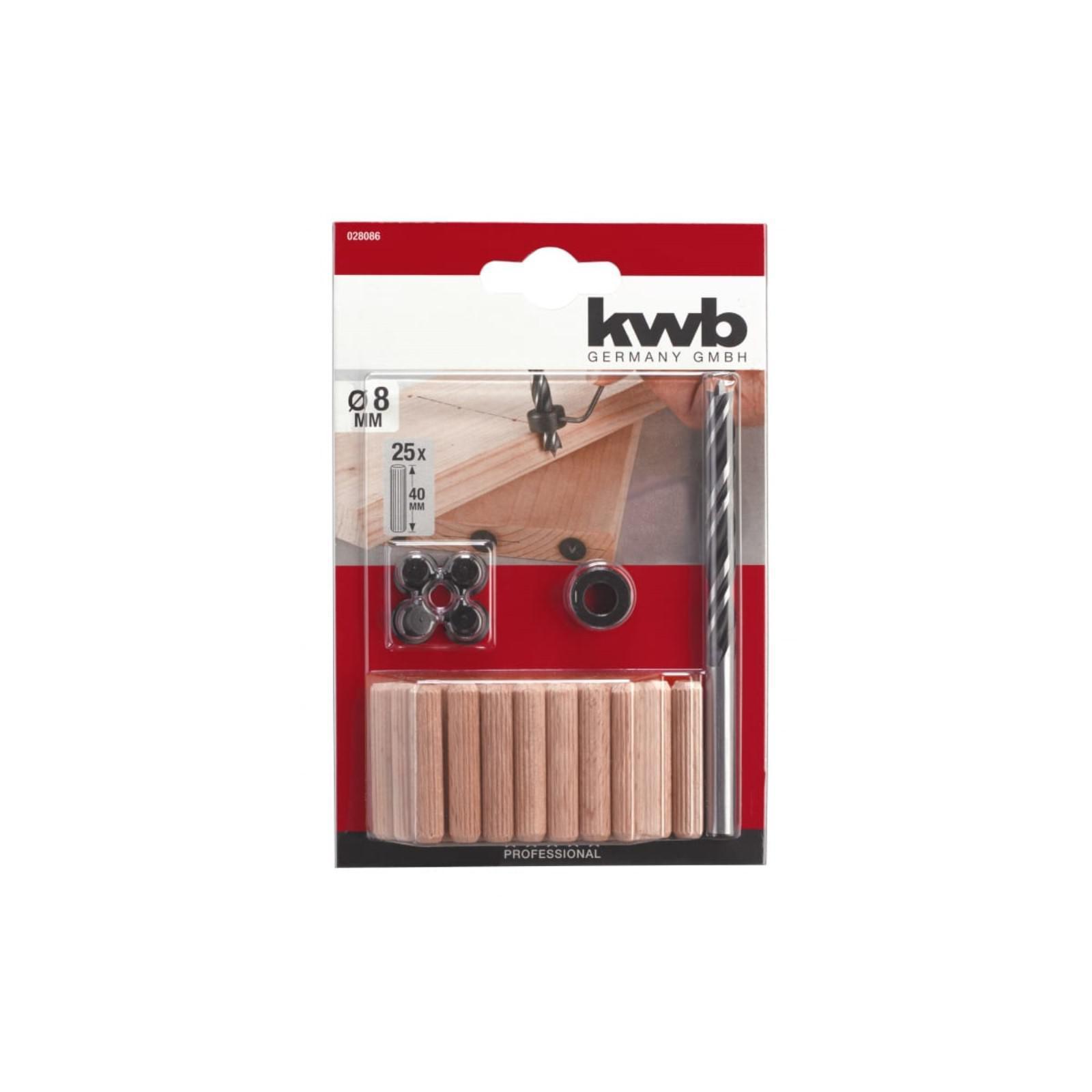 Набор шкантов KWB, 8х40 мм, сверло по дереву, маркеры, ограничитель, 25 шт.