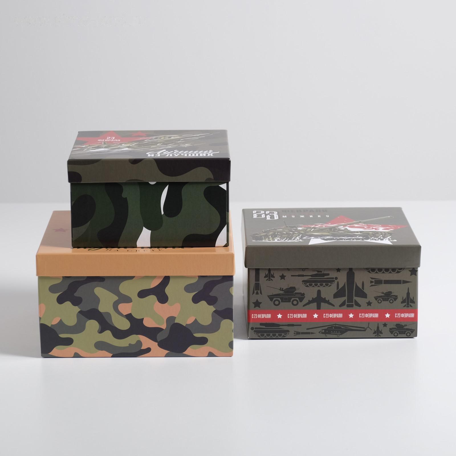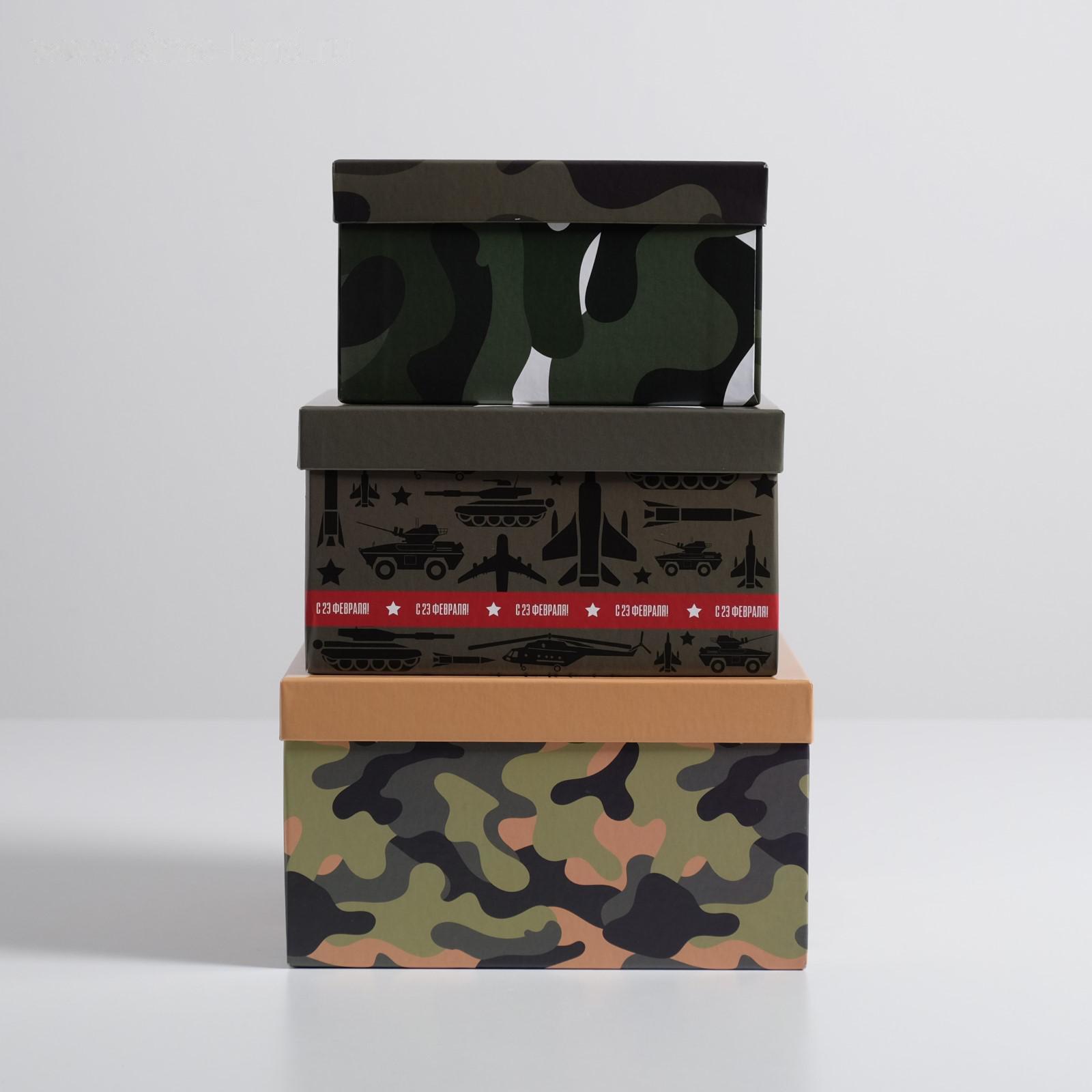 Набор подарочных коробок 3 в 1 «23 февраля», 18 × 18 × 10‒22 × 22 × 12 см