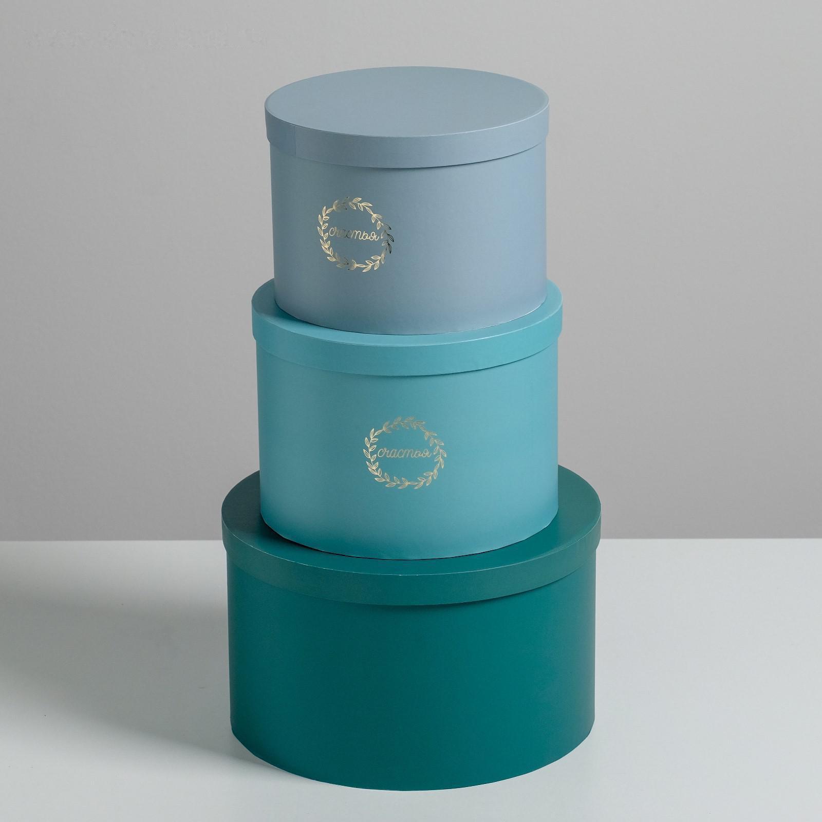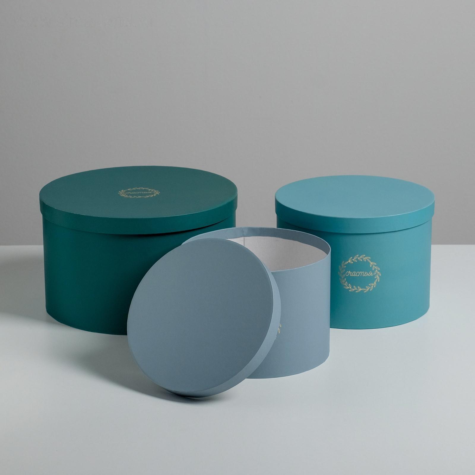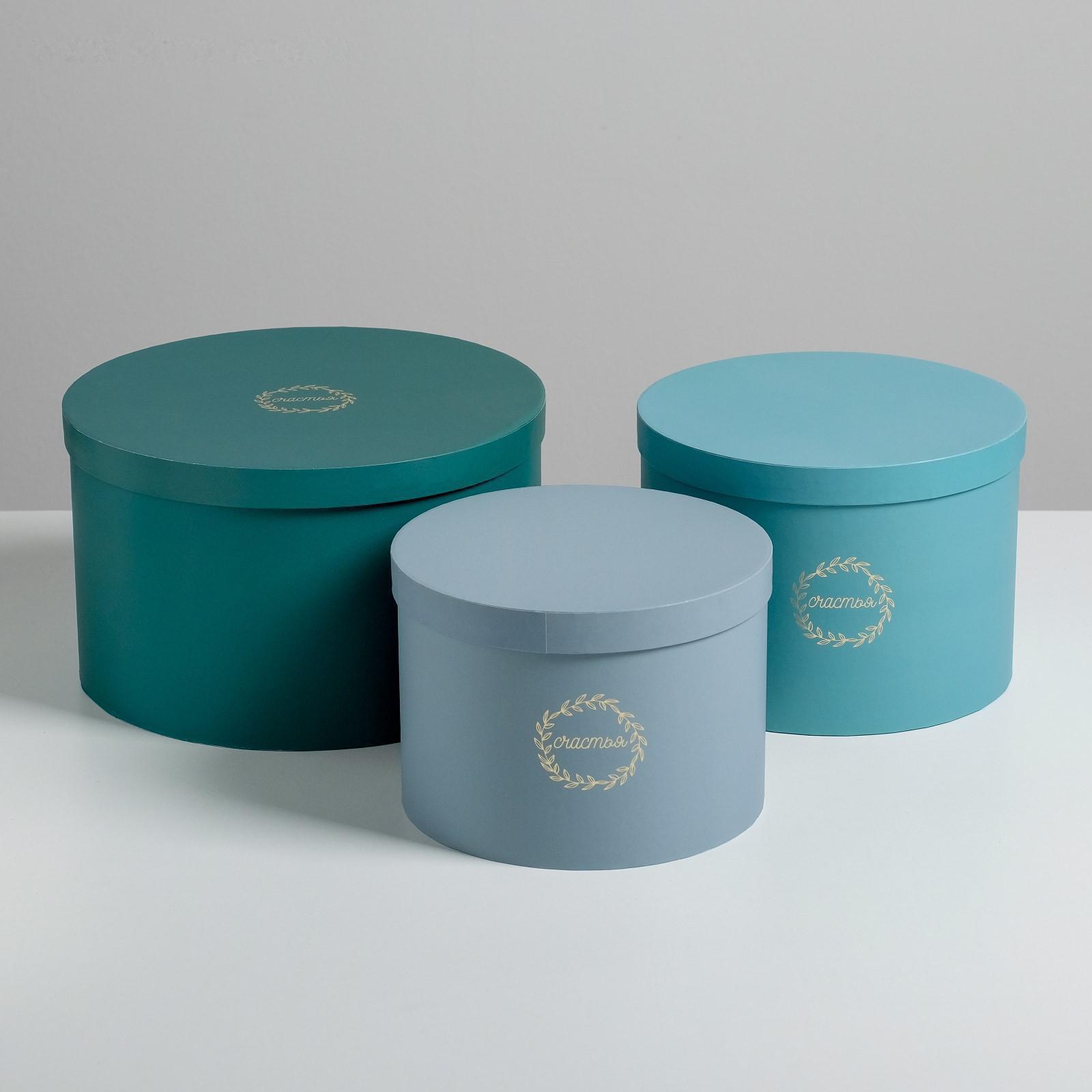 Набор шляпных коробок для цветов 3 в 1 «Бирюза», 18 × 13 см - 25 × 15 см