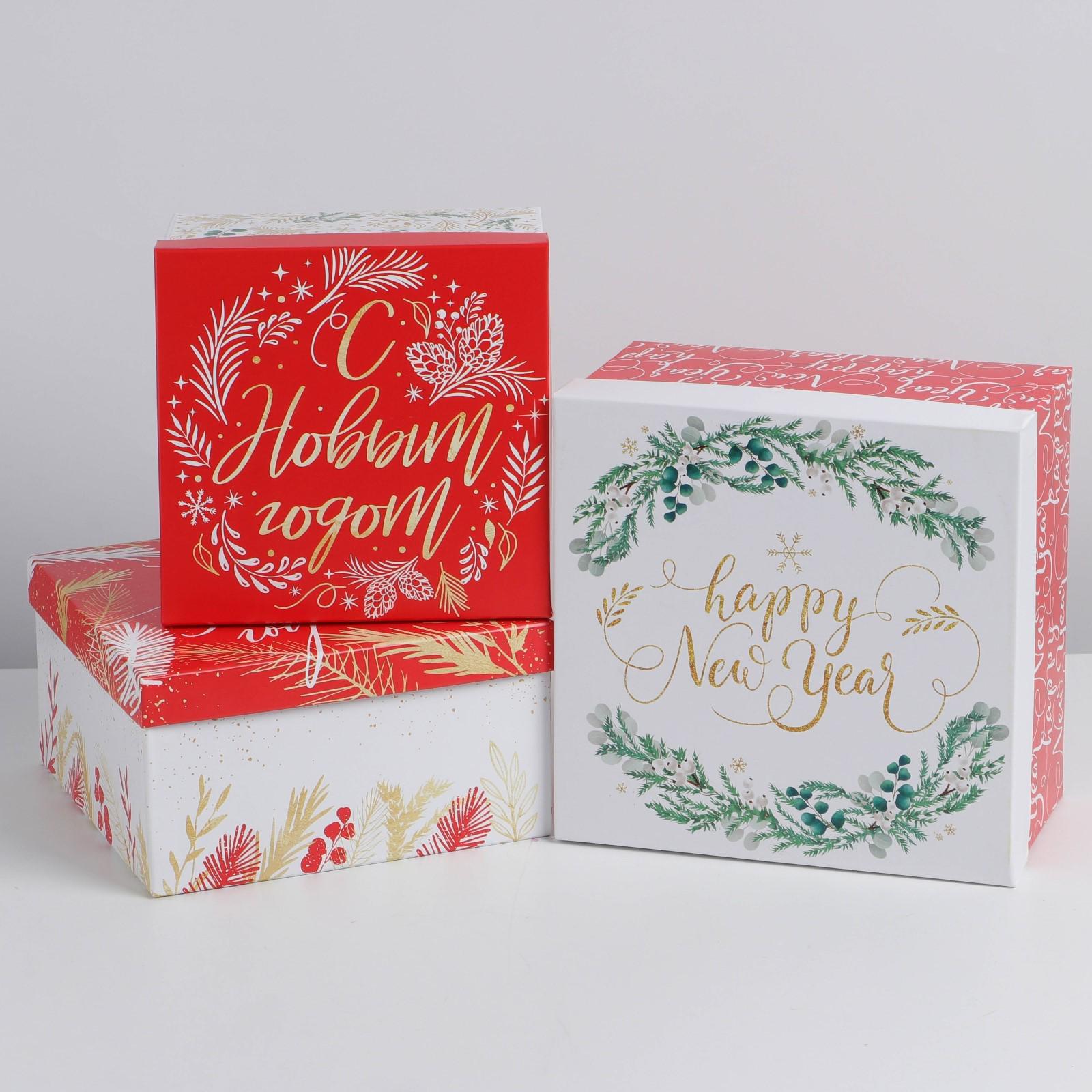Набор подарочных коробок 3 в 1 «Happy New Year», 18 × 18 × 10‒22 × 22 × 12 см