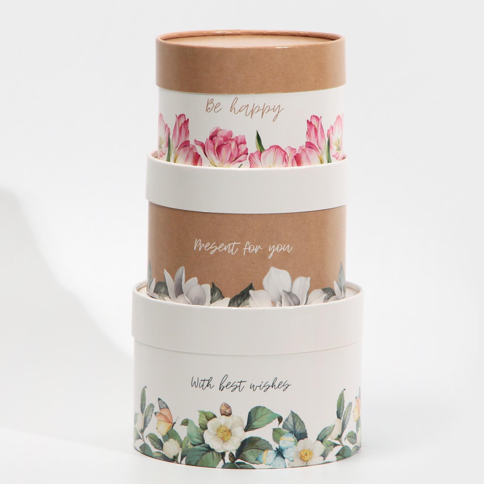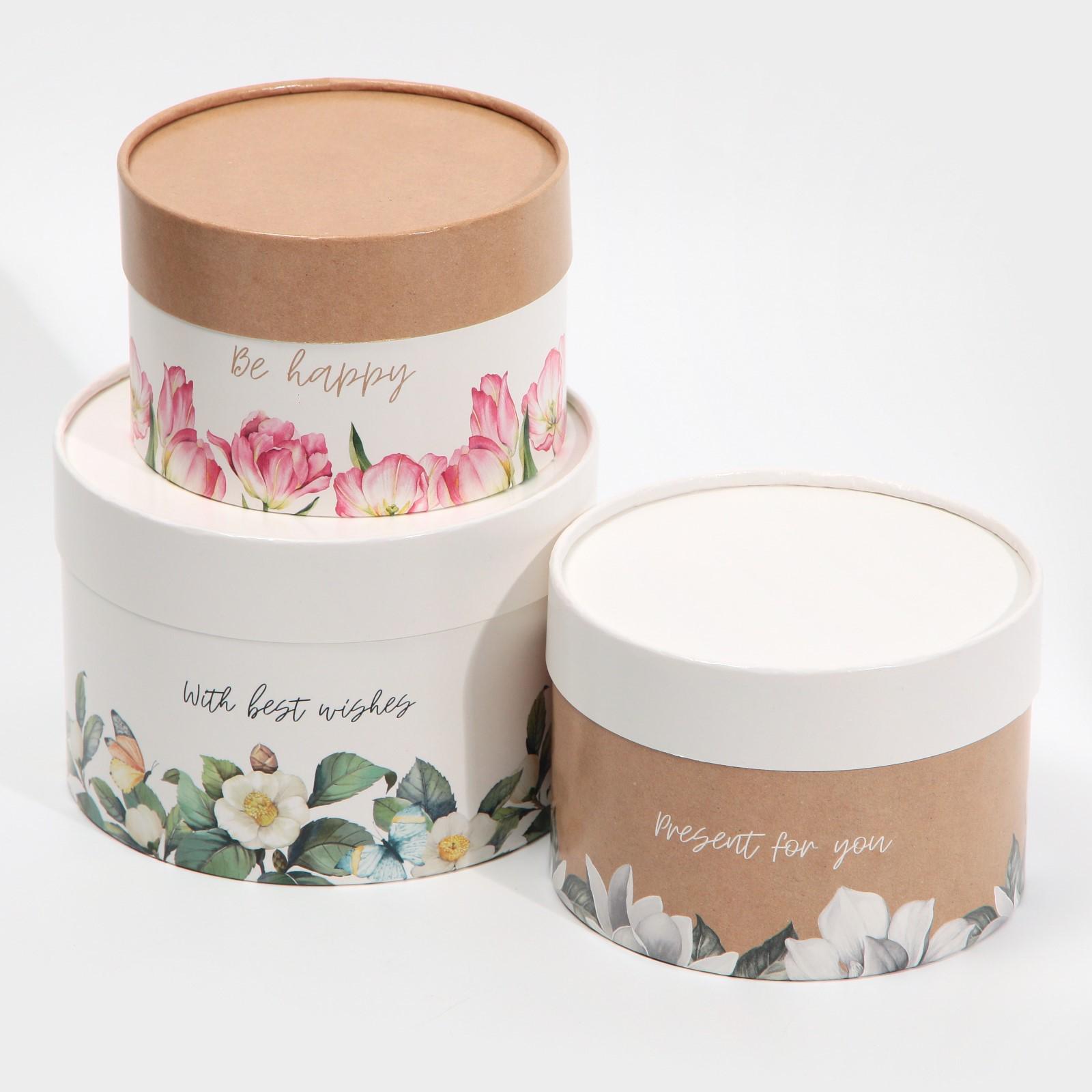 Набор шляпных коробок 3 в 1 «Цветочный», 16 х 10, 14 х 9, 13 х 8,5 см