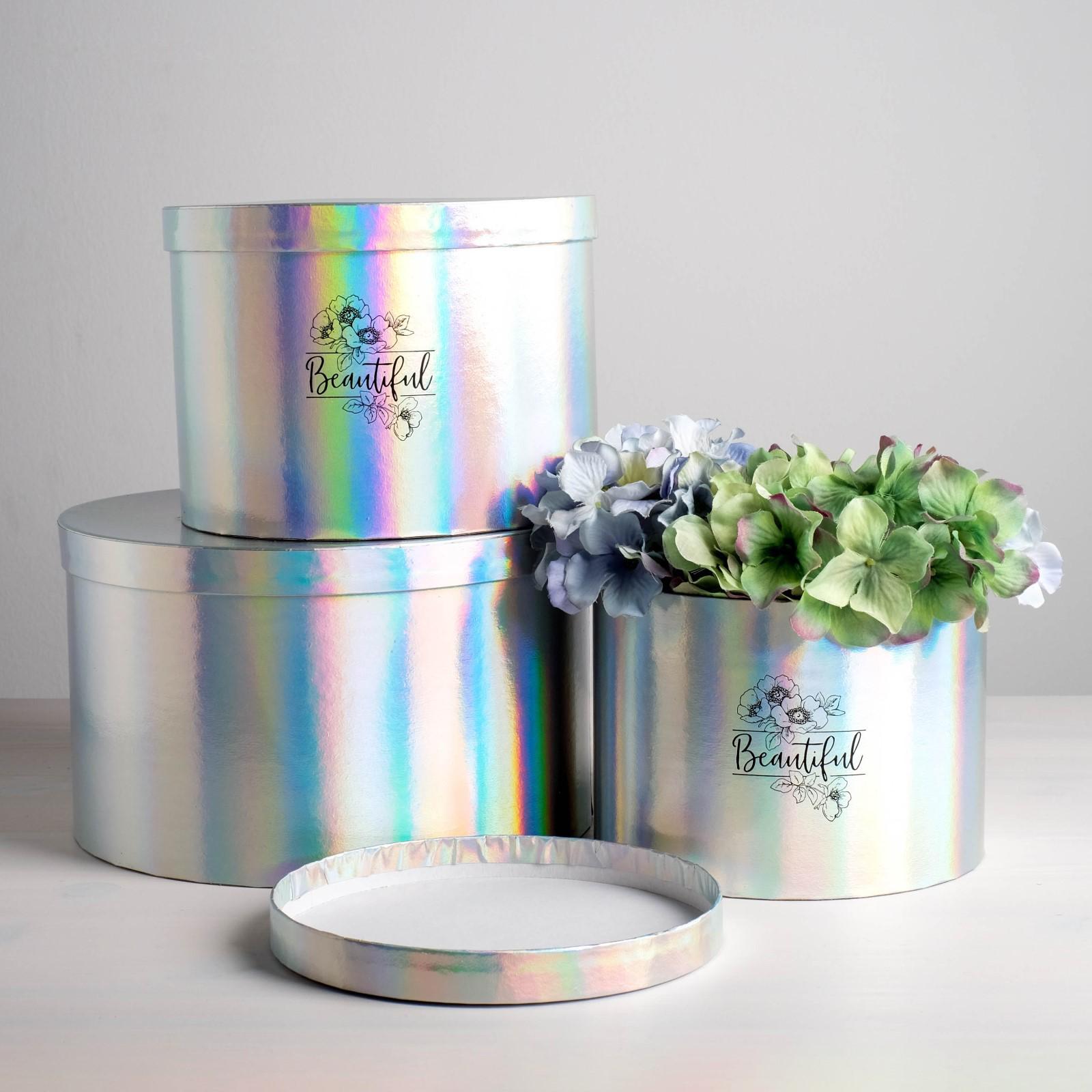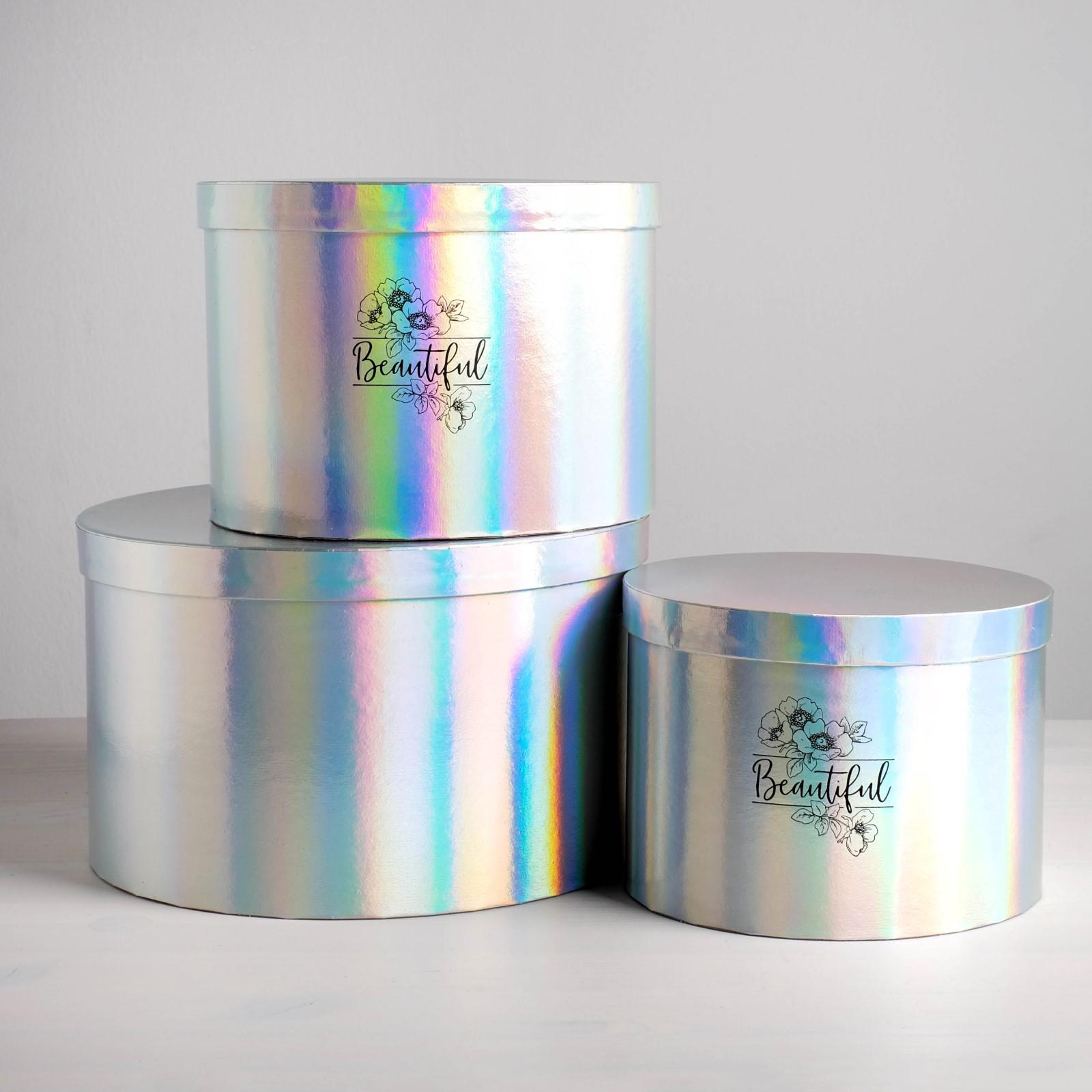 Набор шляпных коробок для цветов 3 в 1 с голографией «Ты прекрасна», 18 × 13 см - 25 × 15 см 4795759