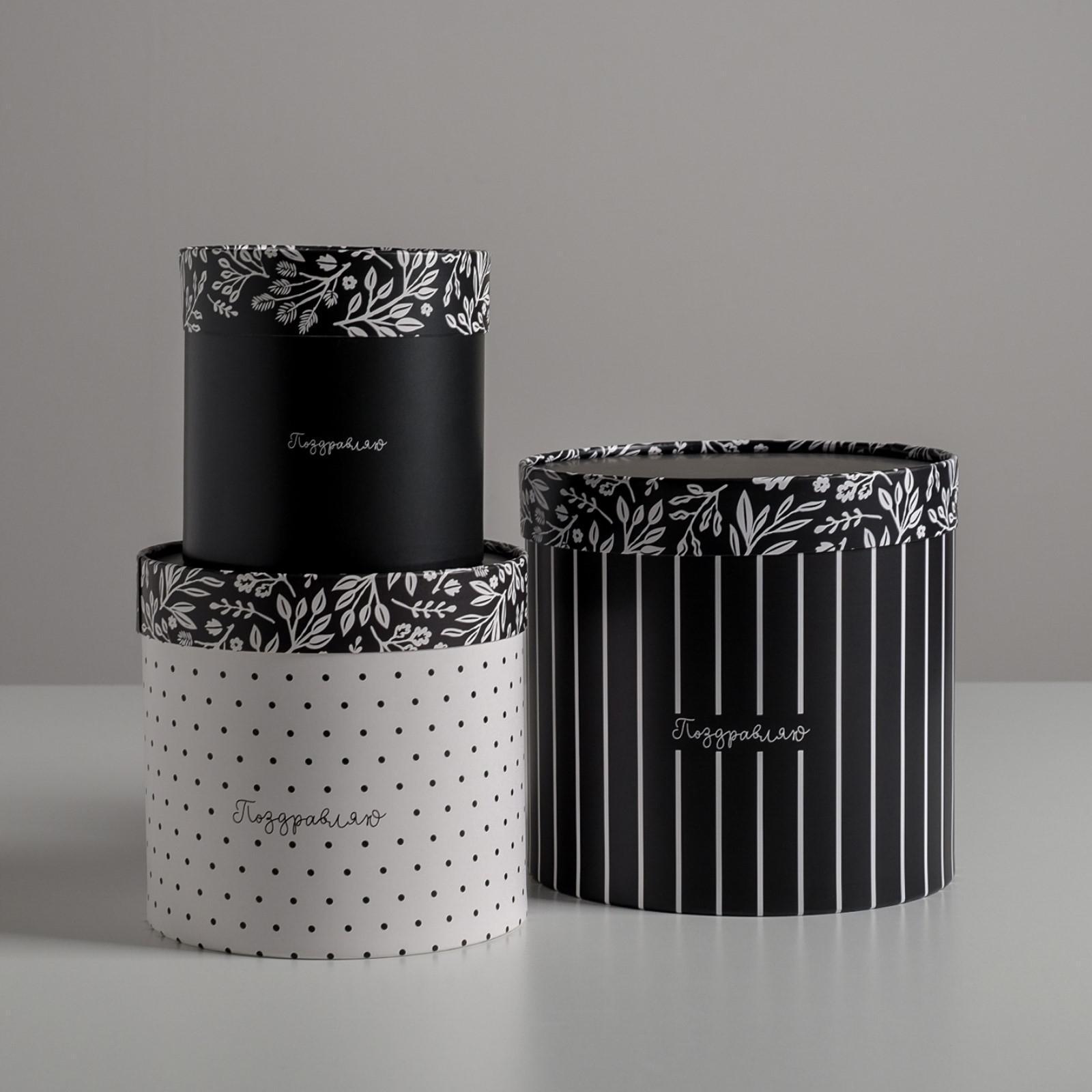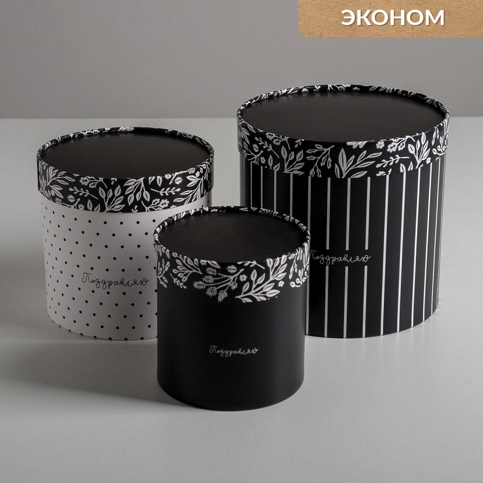 Набор коробок из тонкого картона 3 в 1 «Черно-белый», 12 х 12 - 18 х 18 см 5074569