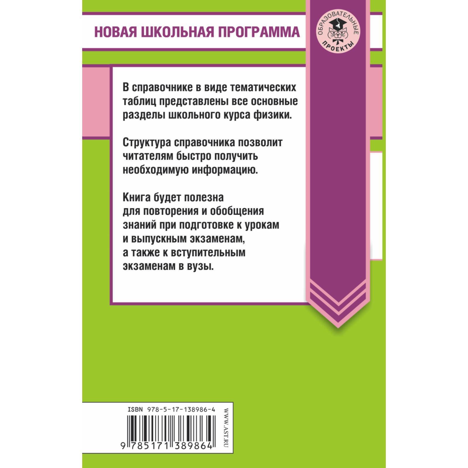 В справочнике в виде тематических таблиц представлены все разделы физики, изучаемые в средней школе.