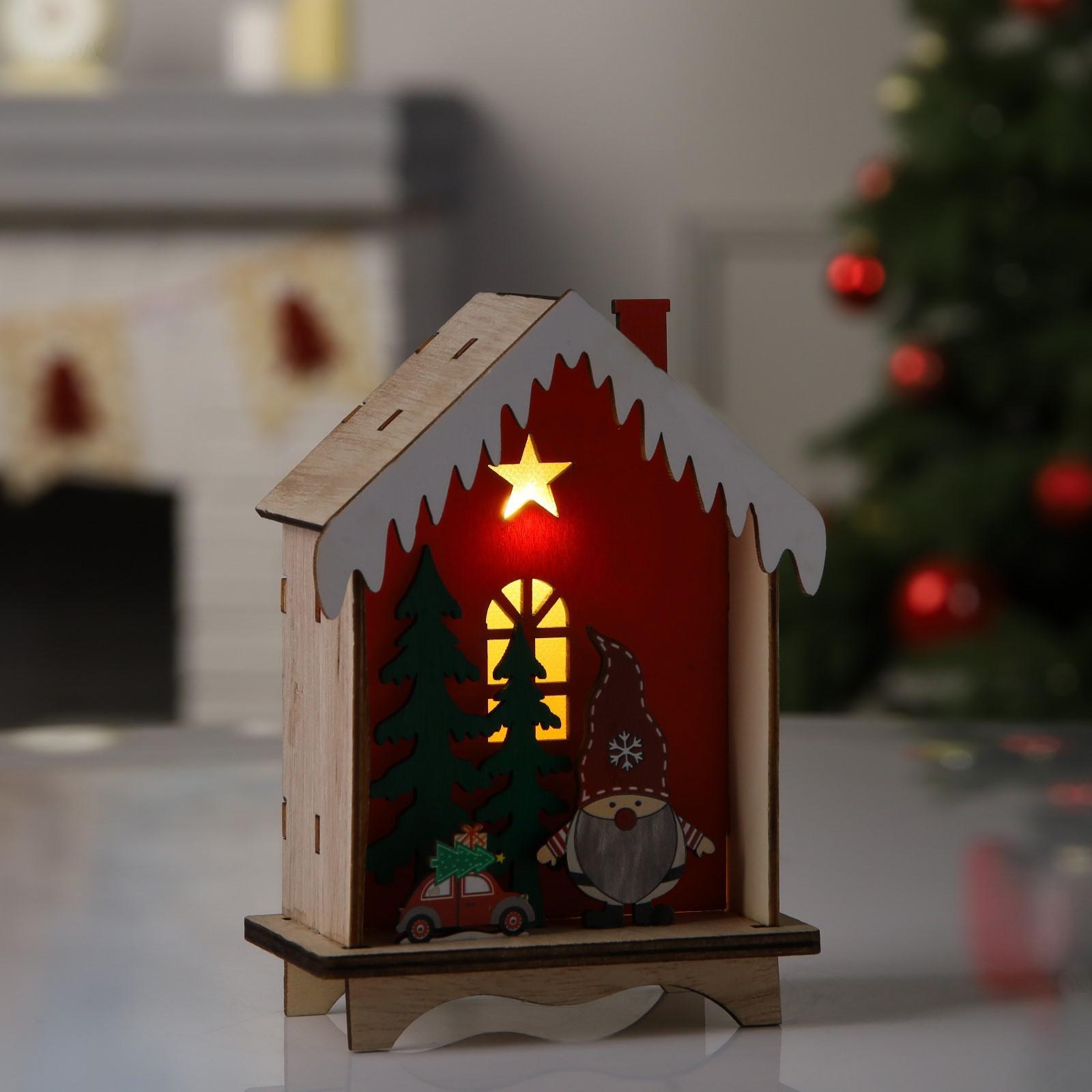Светодиодная фигура «Домик с зелёными ёлками» 10.6 × 15 × 5.5 см, дерево, батарейки LR1130х3, свечение тёплое белое