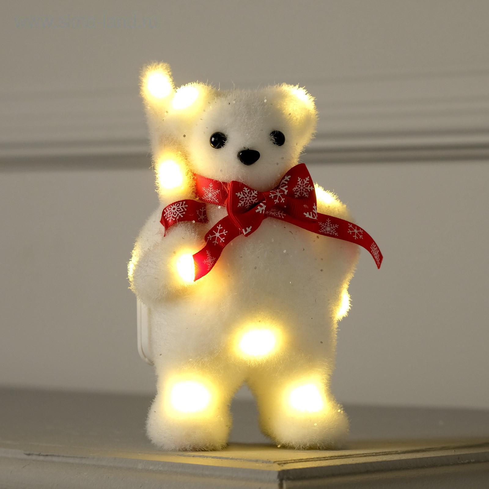 Светодиодная фигура «Медведь с посохом» 9 × 15 × 6 см, флок, батарейки CR2032х2, свечение тёплое белое