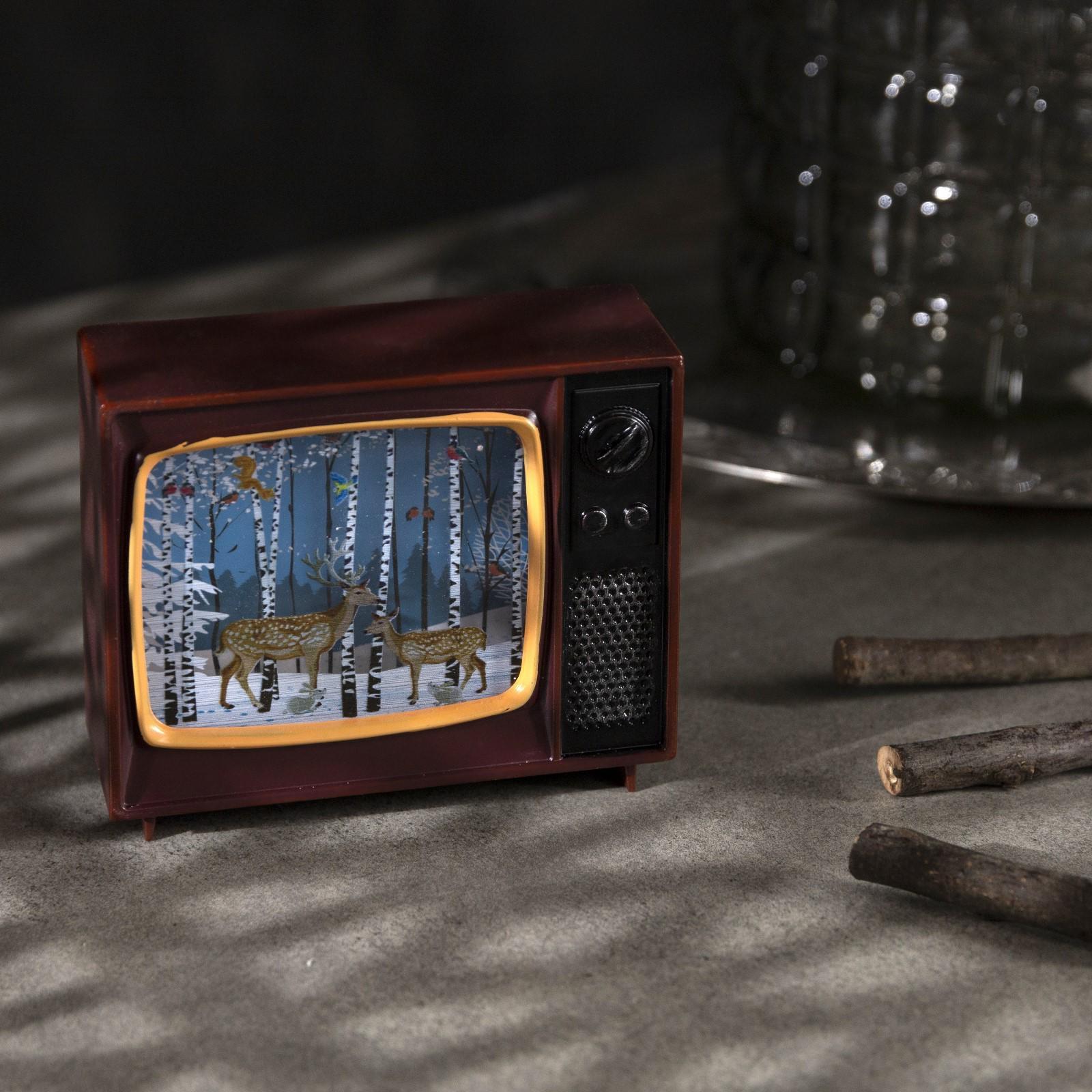 Светодиодная фигура «Телевизор с оленями» 10 × 8 × 4 см, пластик, батарейки CR2032х2, свечение мульти (RGB)