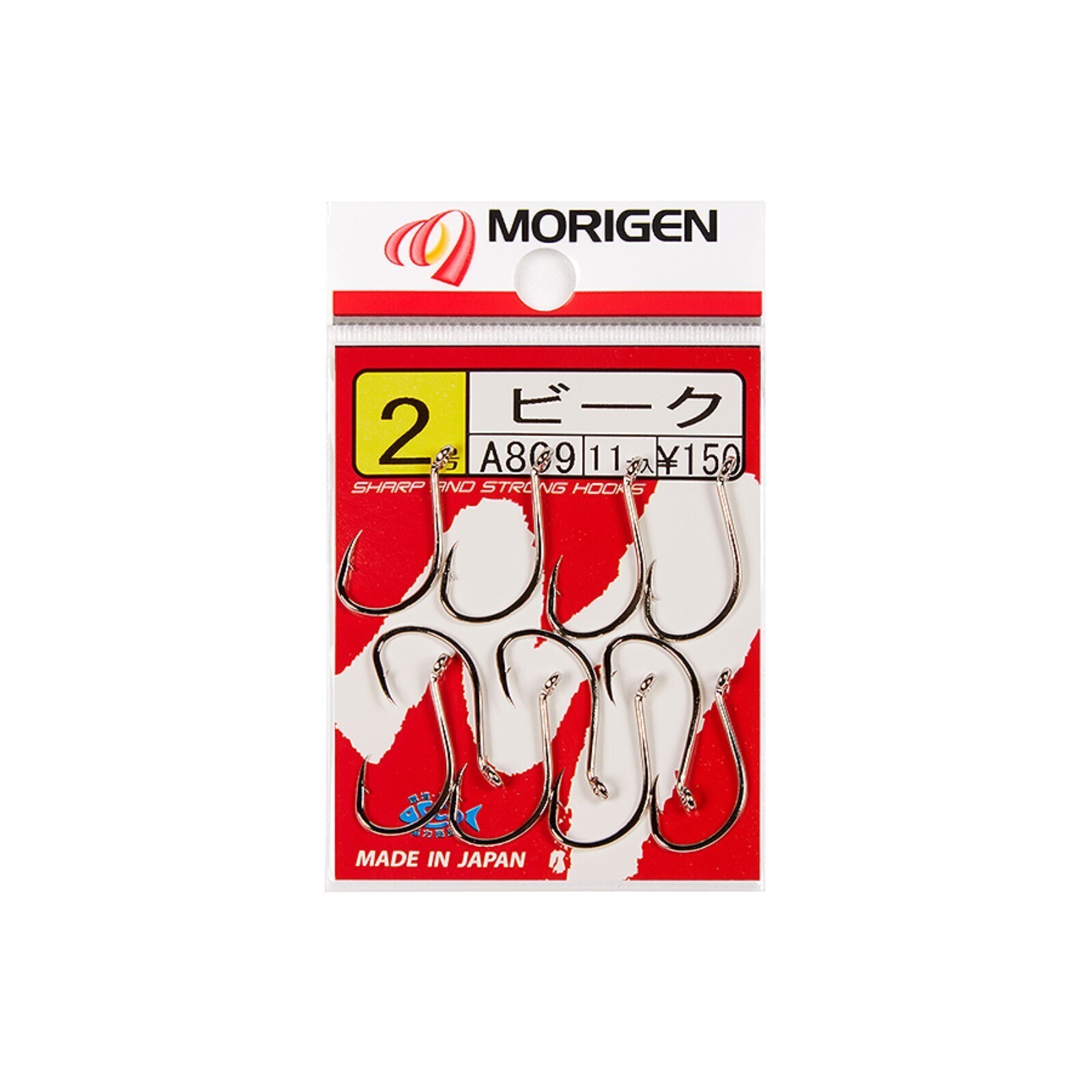 Универсальные кованные крючки с ушком Morigen A-809, каталожное наименование Beak. Широкая линейка размеров позволяет их использовать в различных видах ловли, от карася на поплавочную снасть до трофейных сомов. Отличная острота жала, удобное кольцо на цевье, антикоррозийное покрытие.