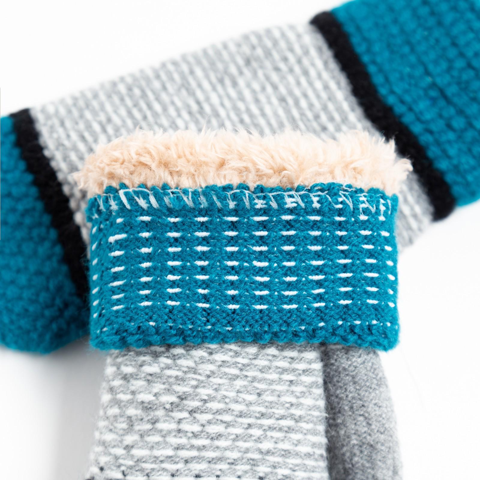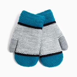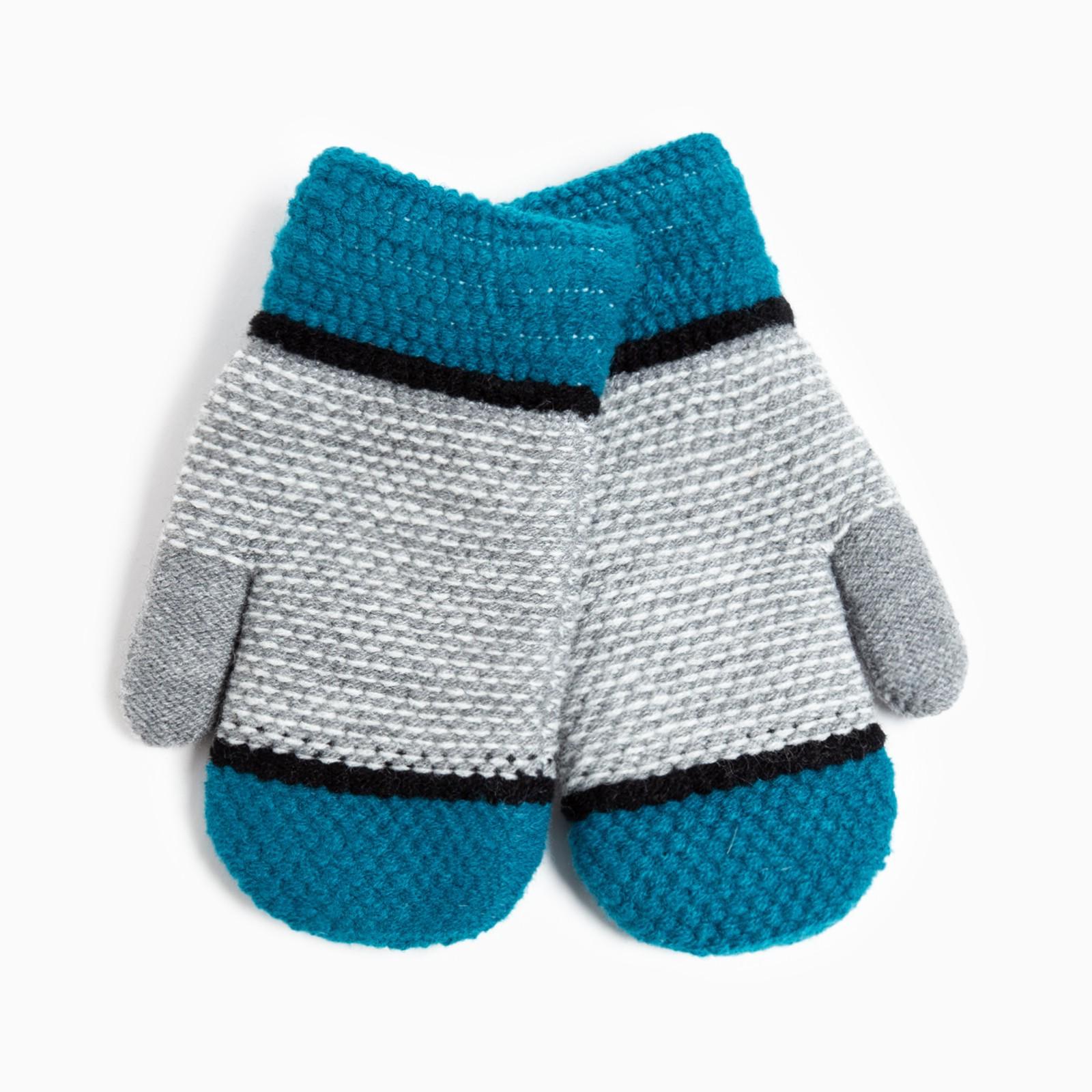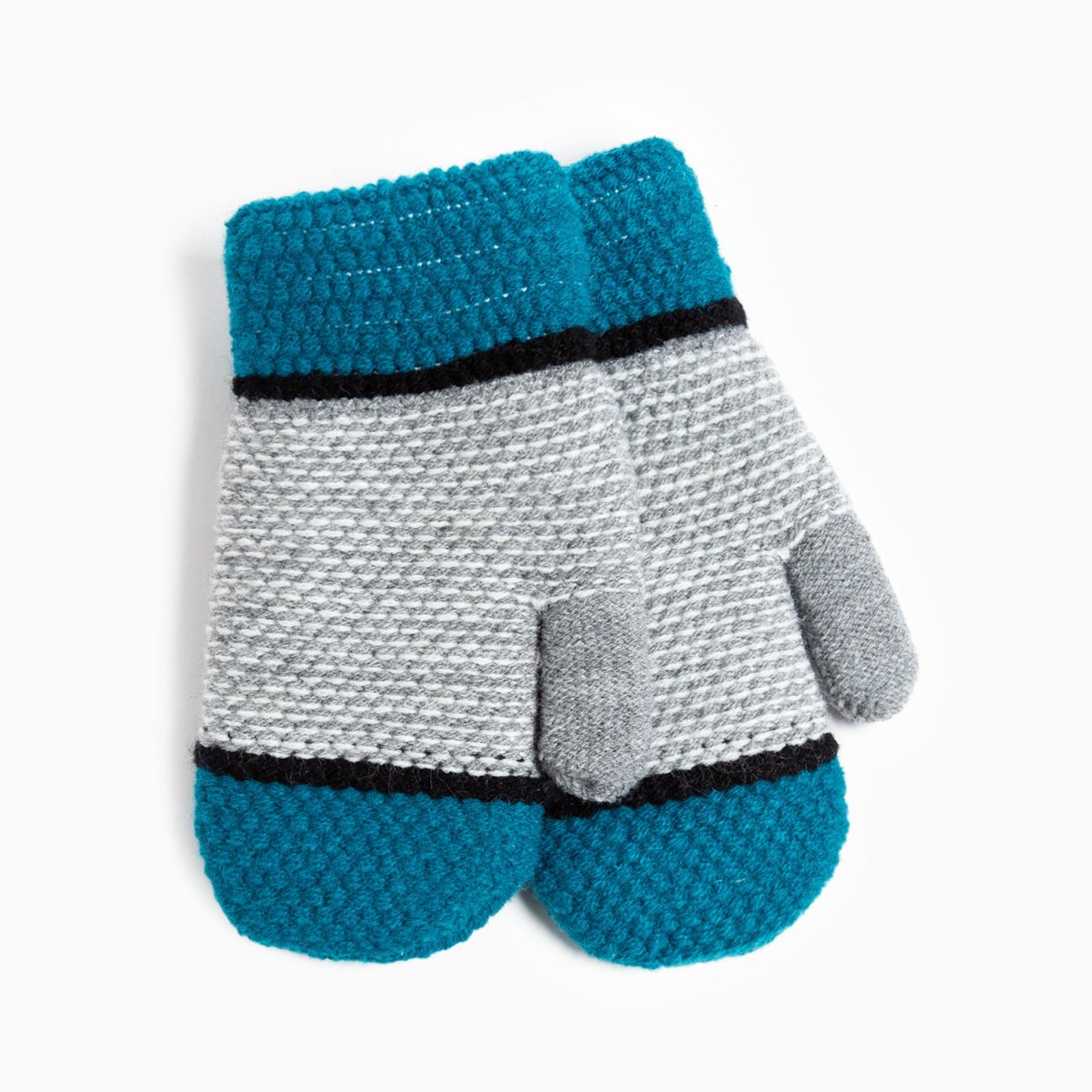 Варежки детские, цвет серый/бирюзовый, размер 16 (8-10 лет)