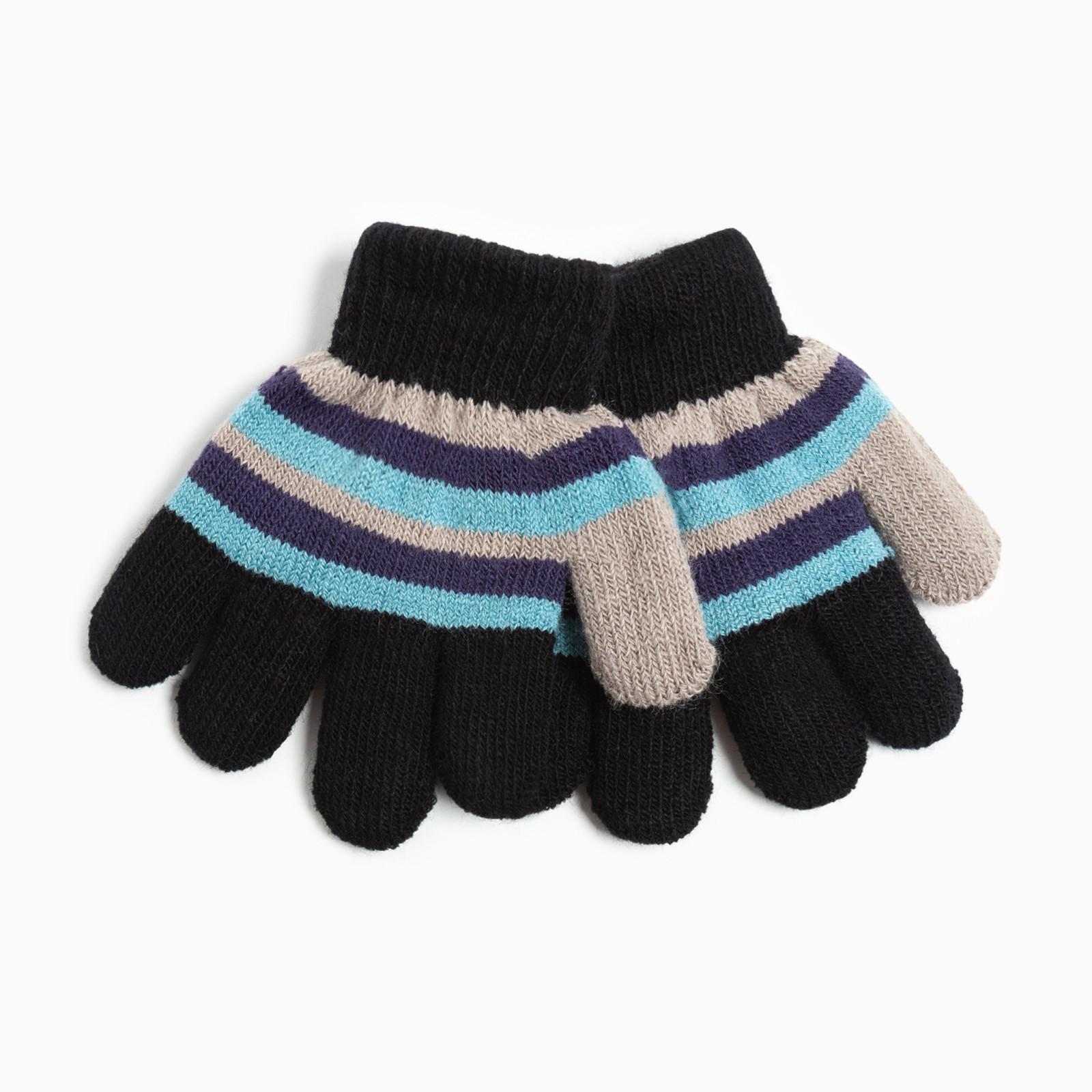 Перчатки детские, цвет чёрный/бежевый, размер 14 (4-6 лет)