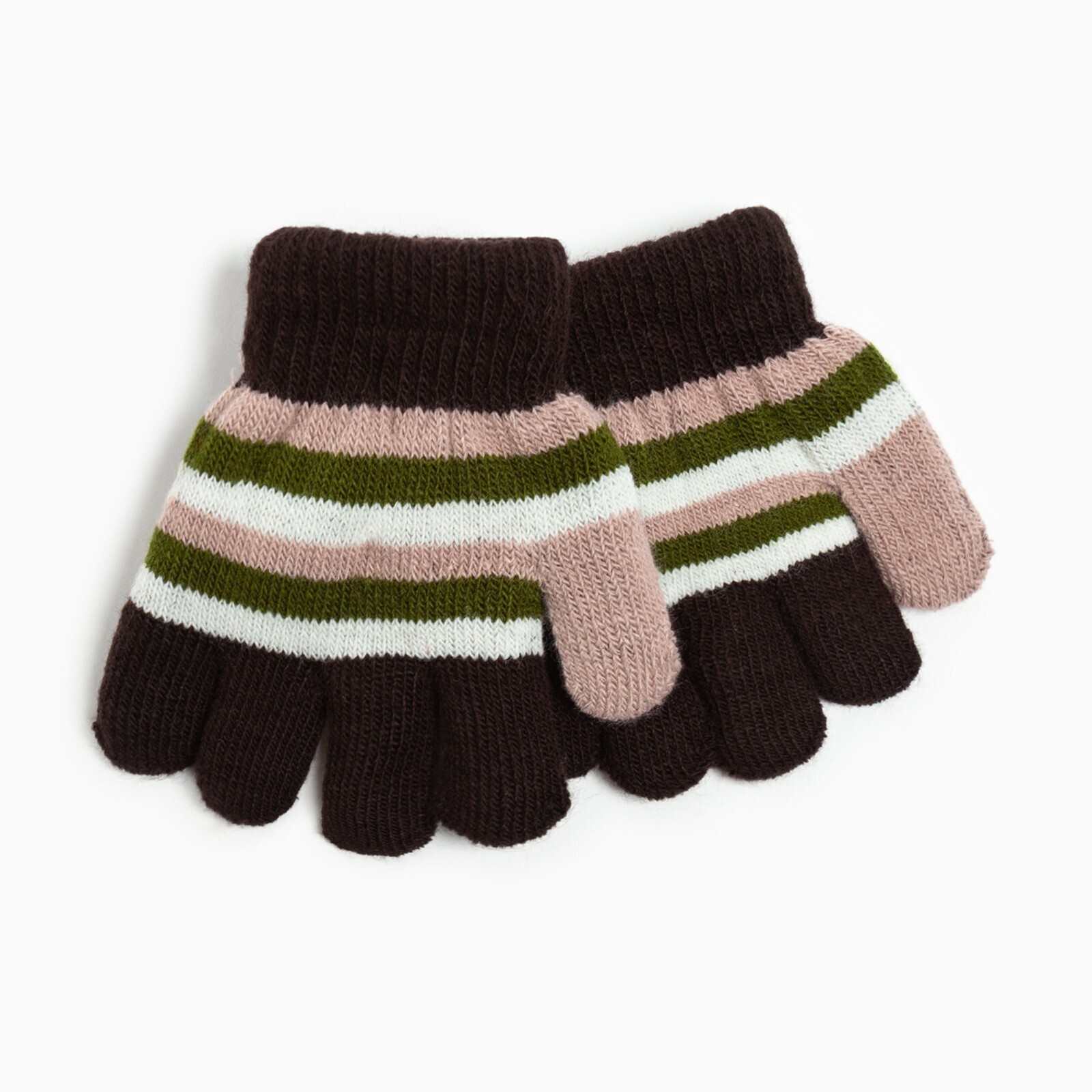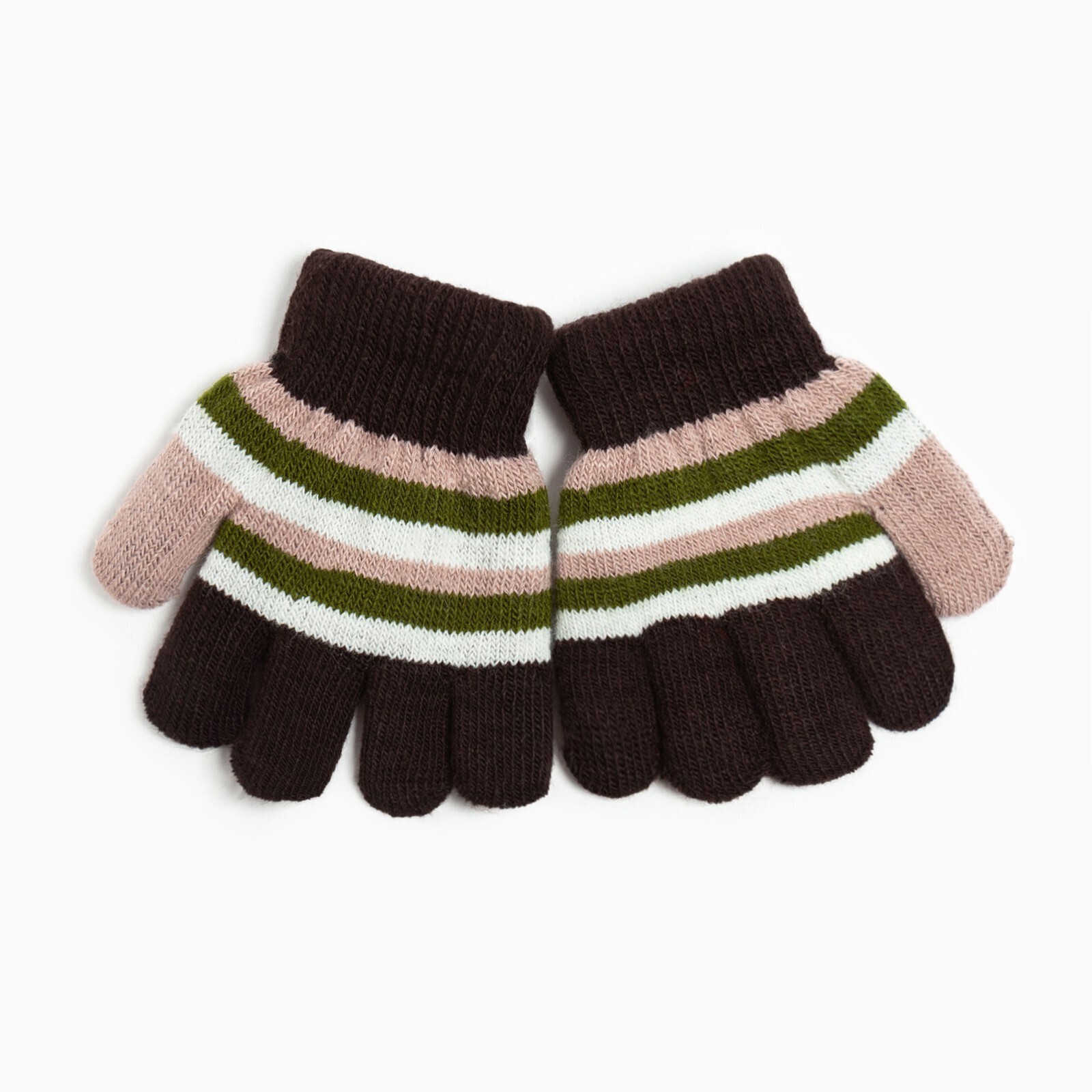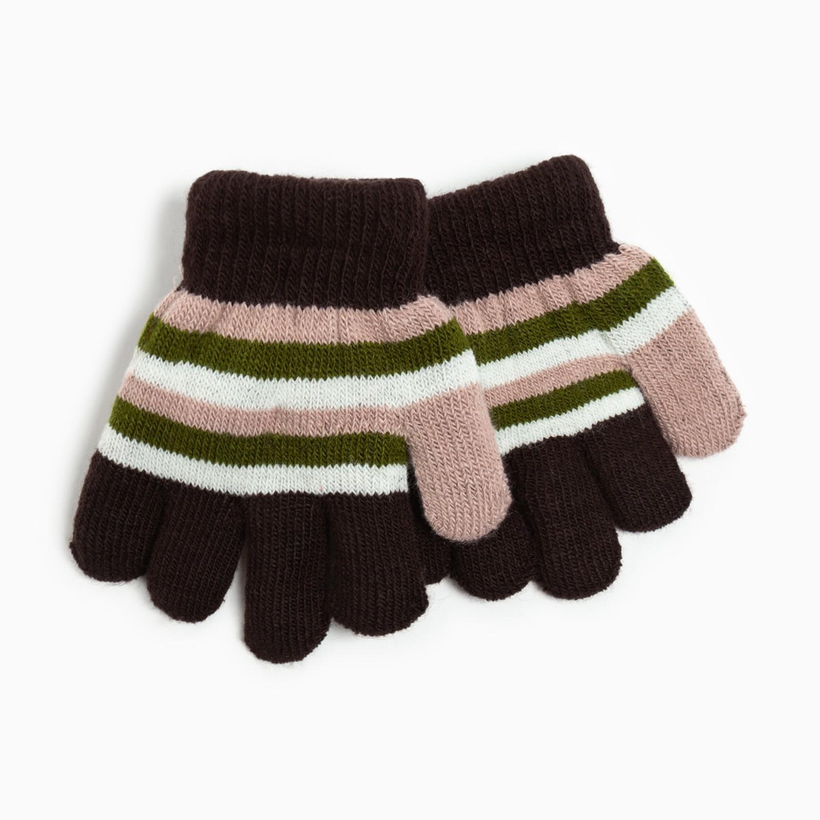 Перчатки детские, цвет коричневый/розовый, размер 14 (4-6 лет)