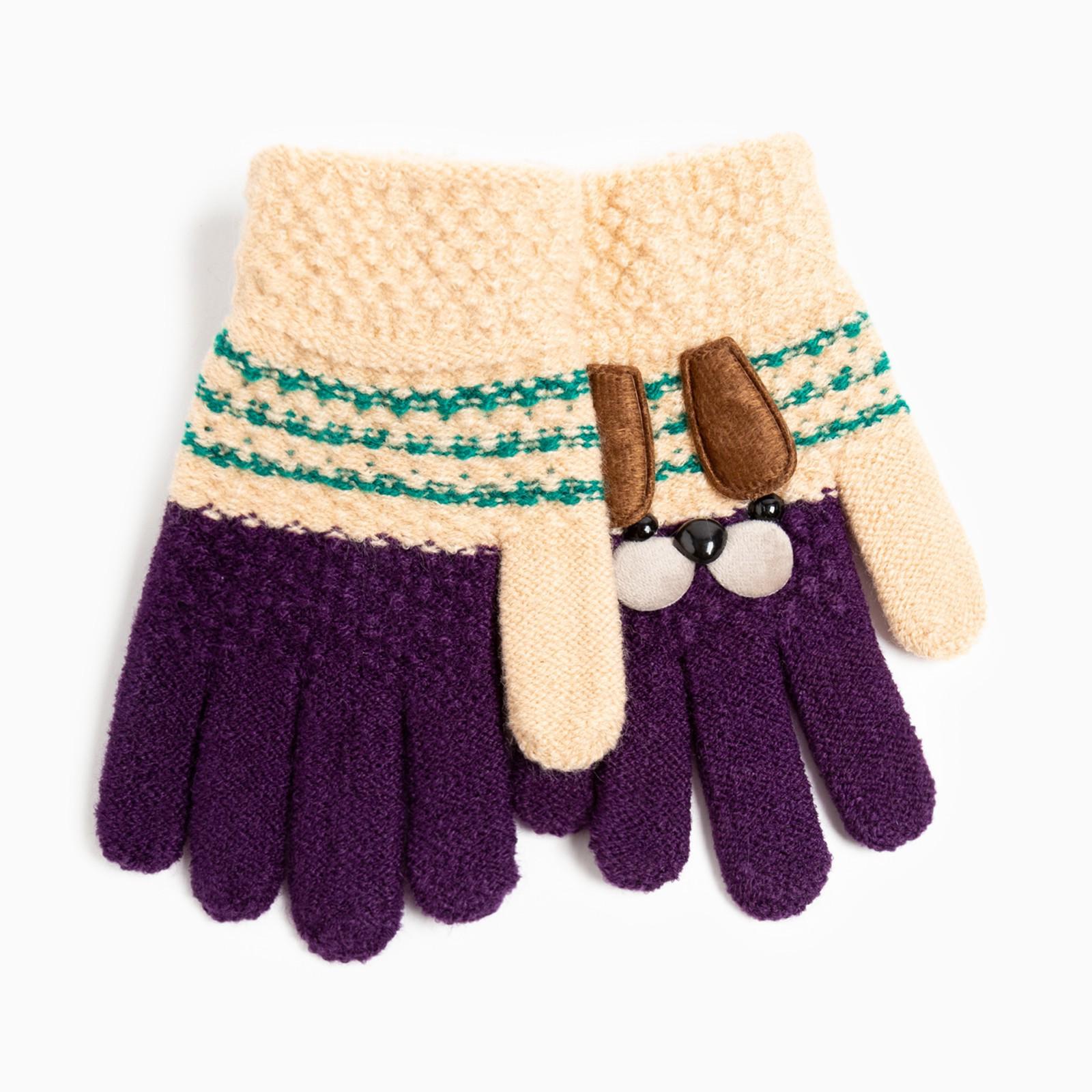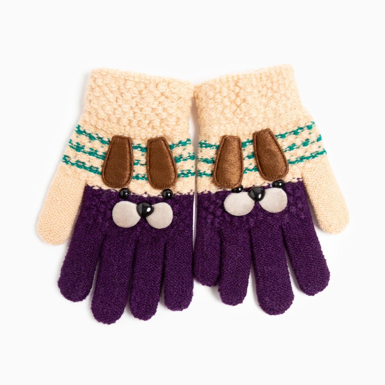 Перчатки детские, цвет молочный/фиолетовый, размер 15 (6-7 лет)
