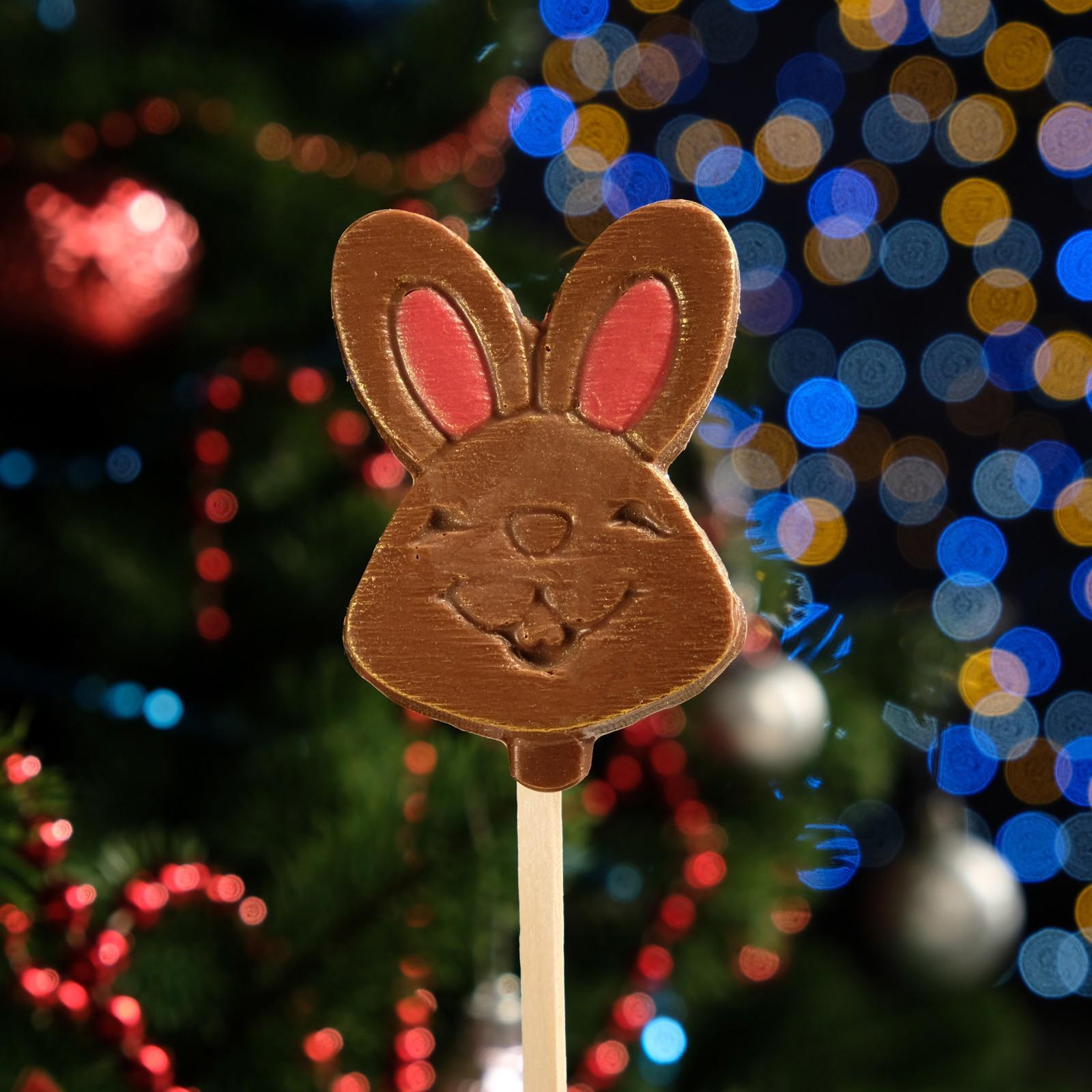 Фигура из молочного шоколада "Счастливый зайчик", на палочке, 35 гр