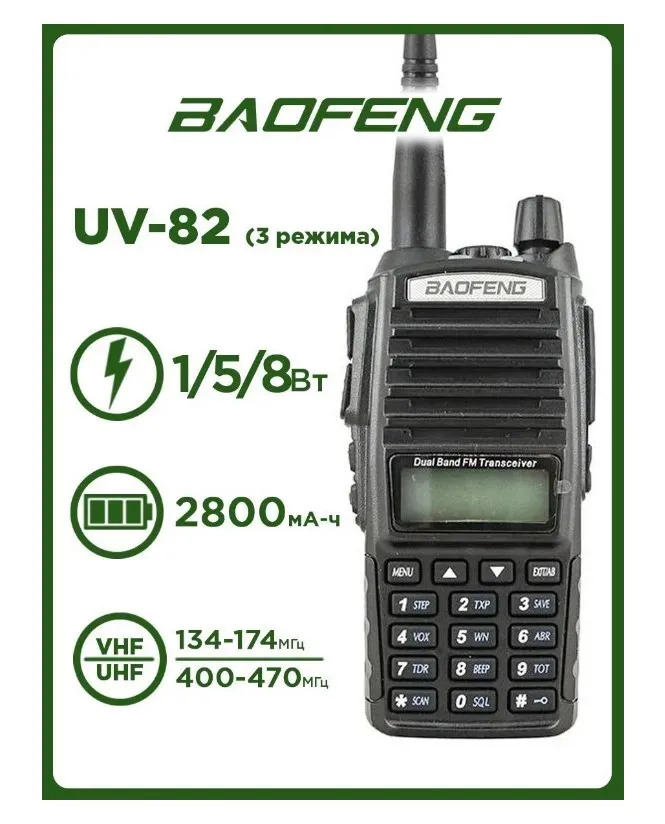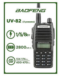 Портативная рация Baofeng UV-82 (8W) 3 режима, черная (радиус до 10 км)