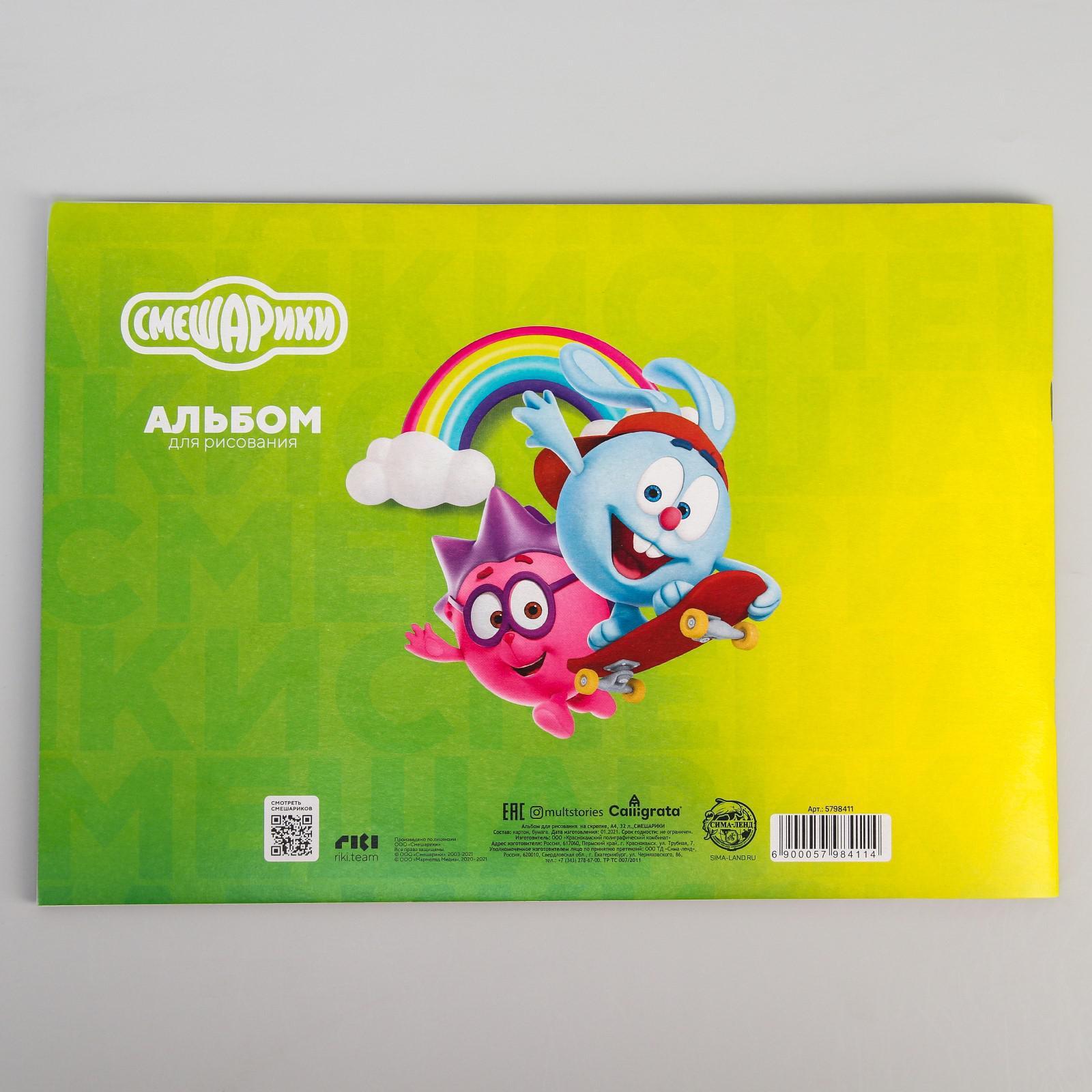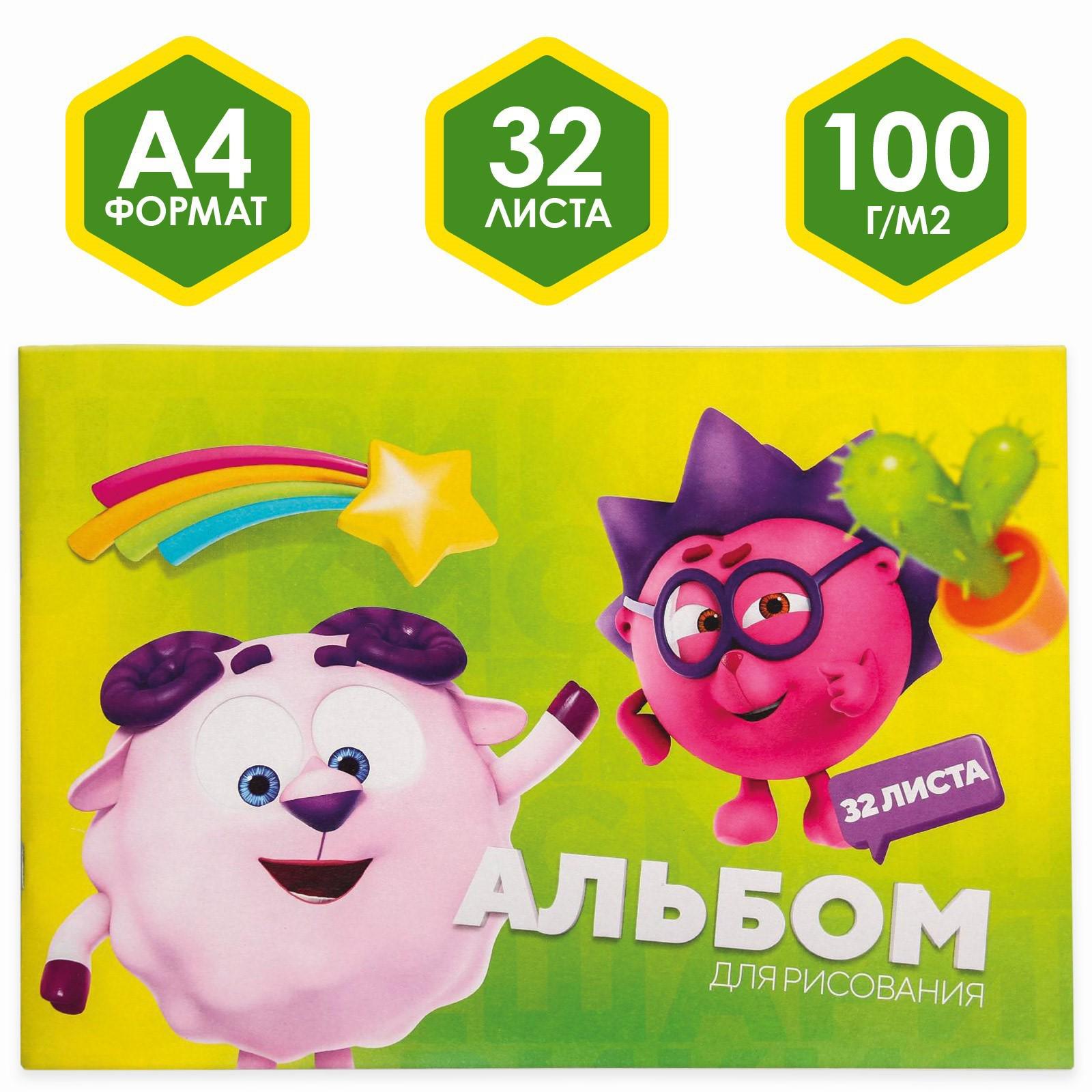 Альбом для рисования А4 32 листа на скрепке СМЕШАРИКИ