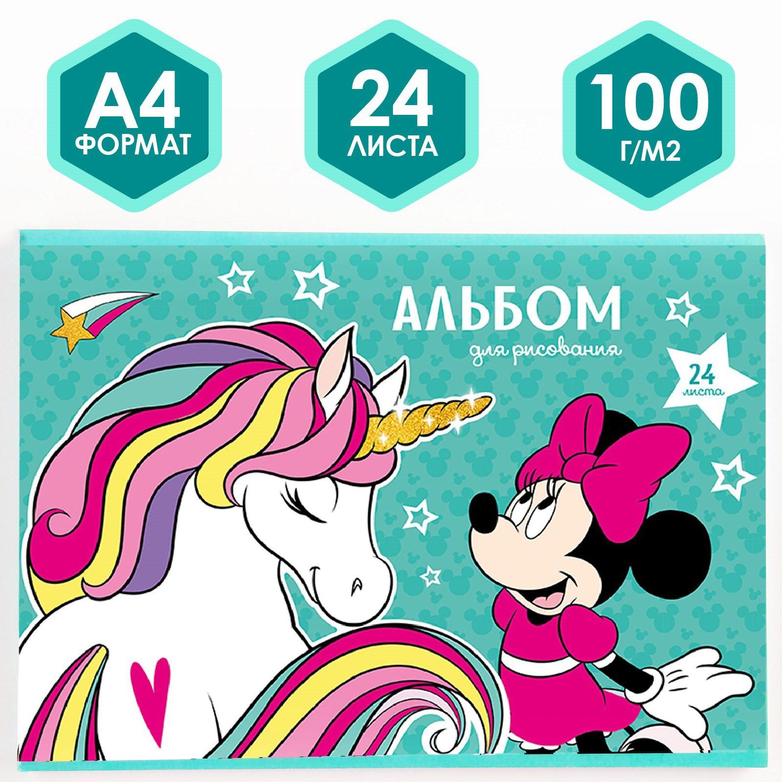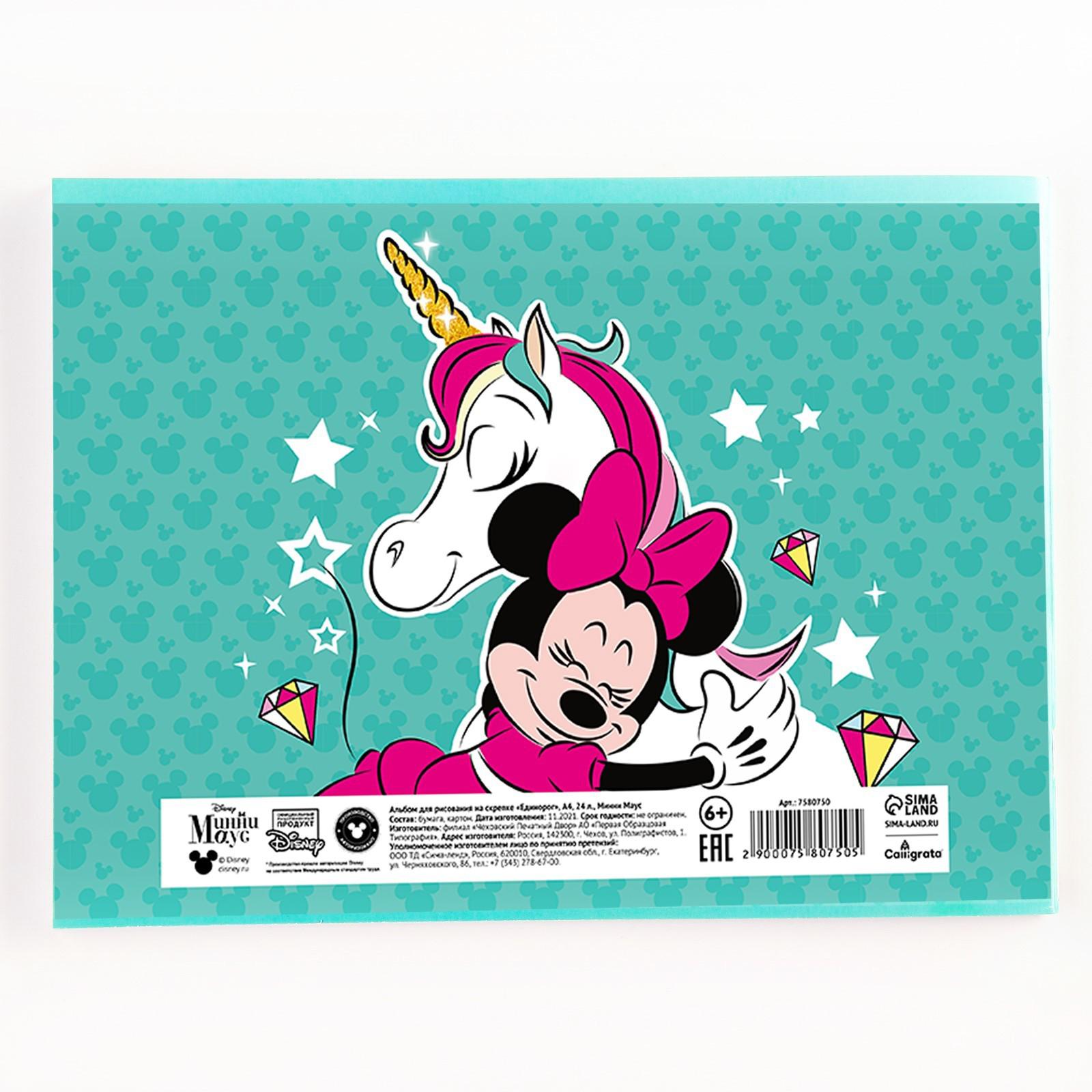Альбом для рисования на скрепке, А4, 24 листа, "Единорог", Минни Маус