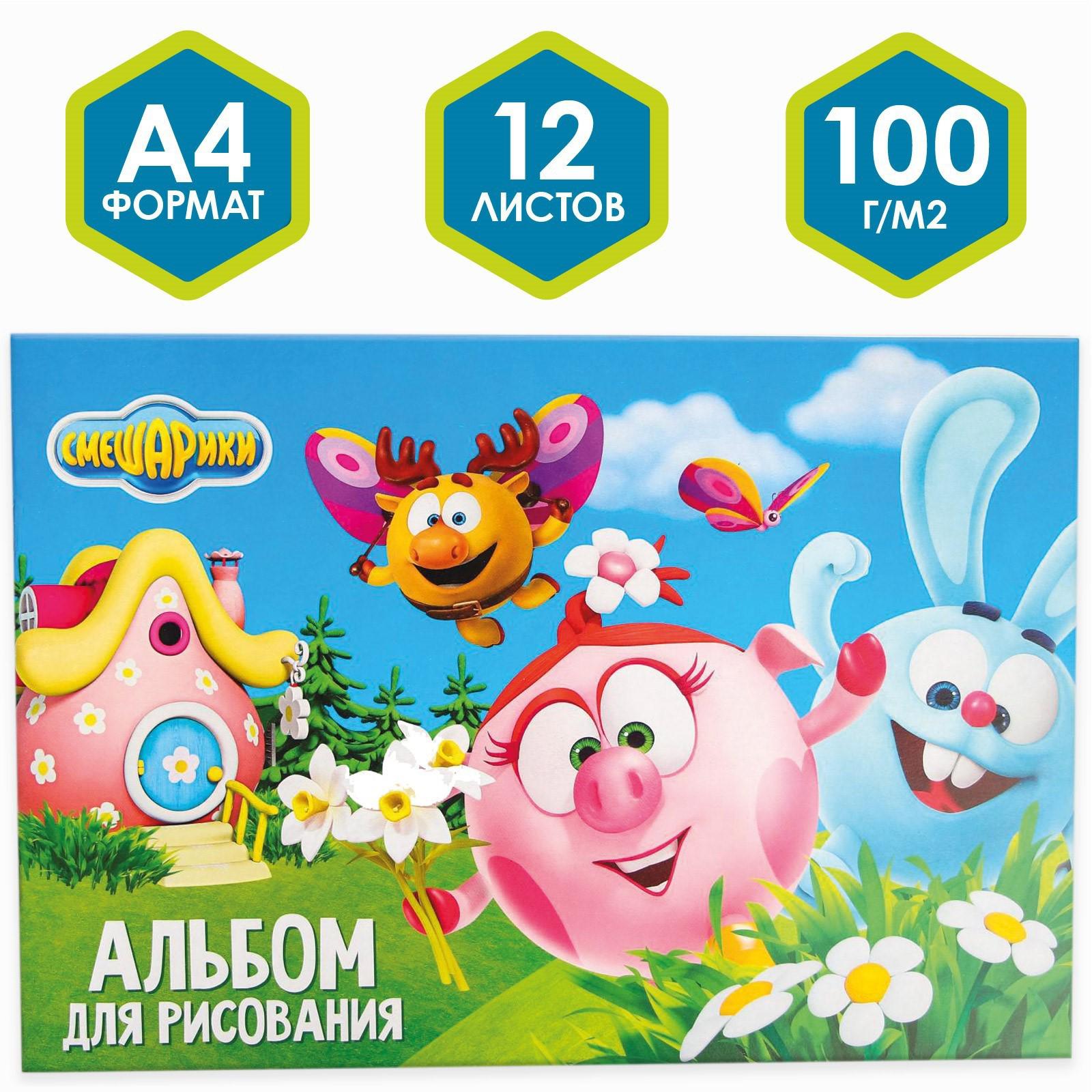 Альбом для рисования А4 12 листов на скрепке СМЕШАРИКИ "Друзья"